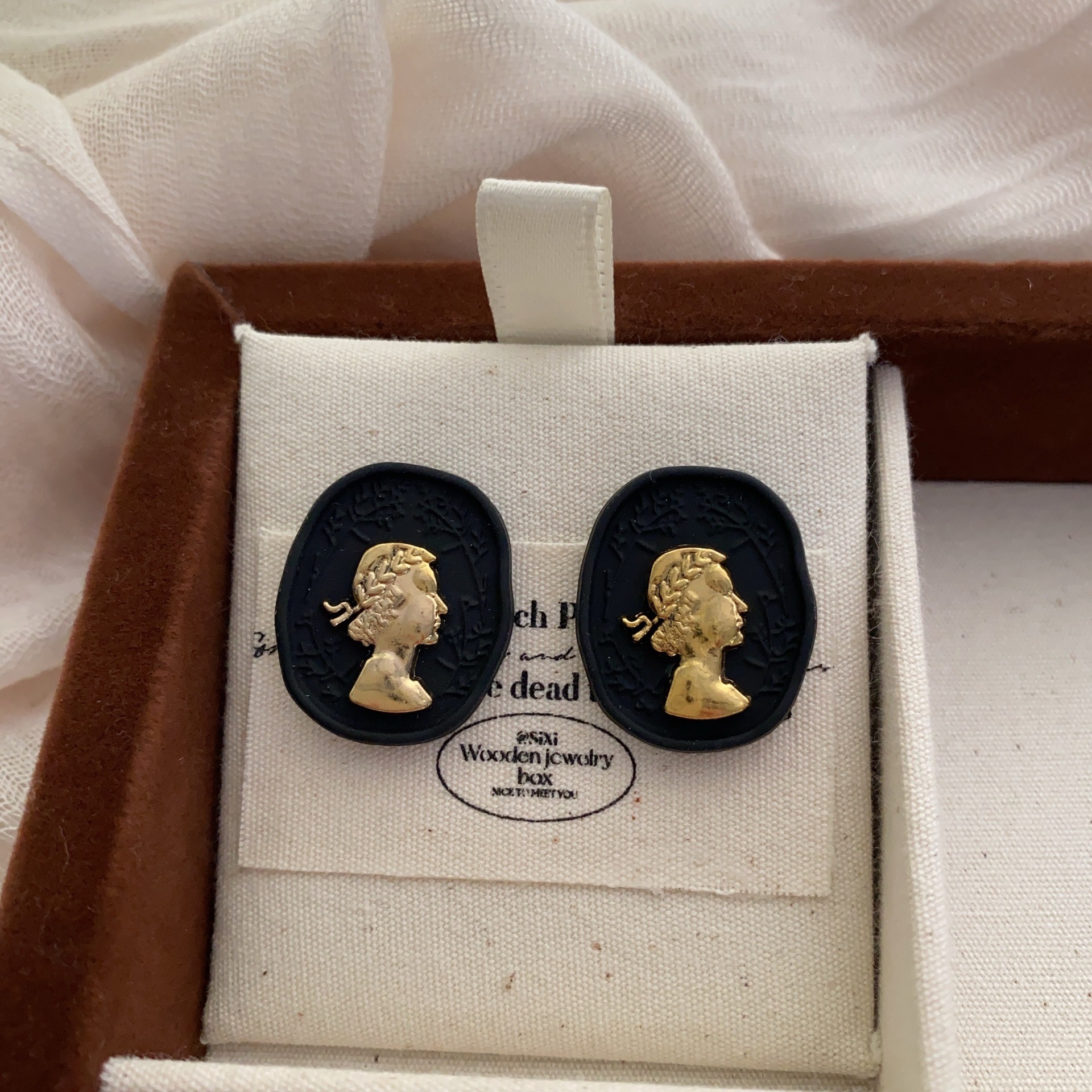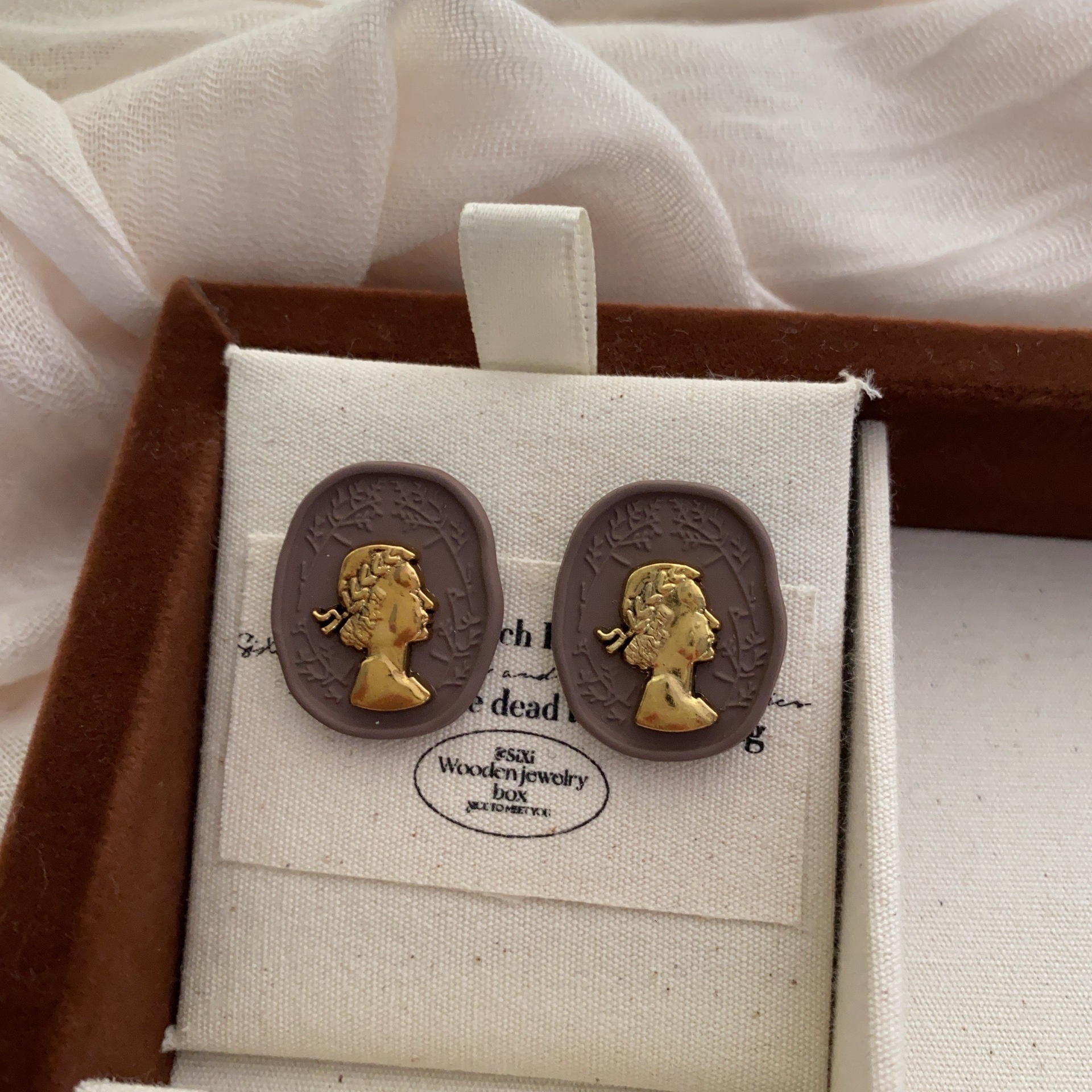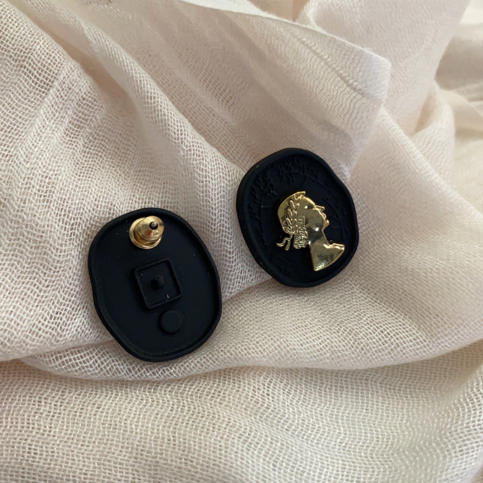复古椭圆形金色小众设计韩版耳钉小众设计高级感美女头像耳环耳饰