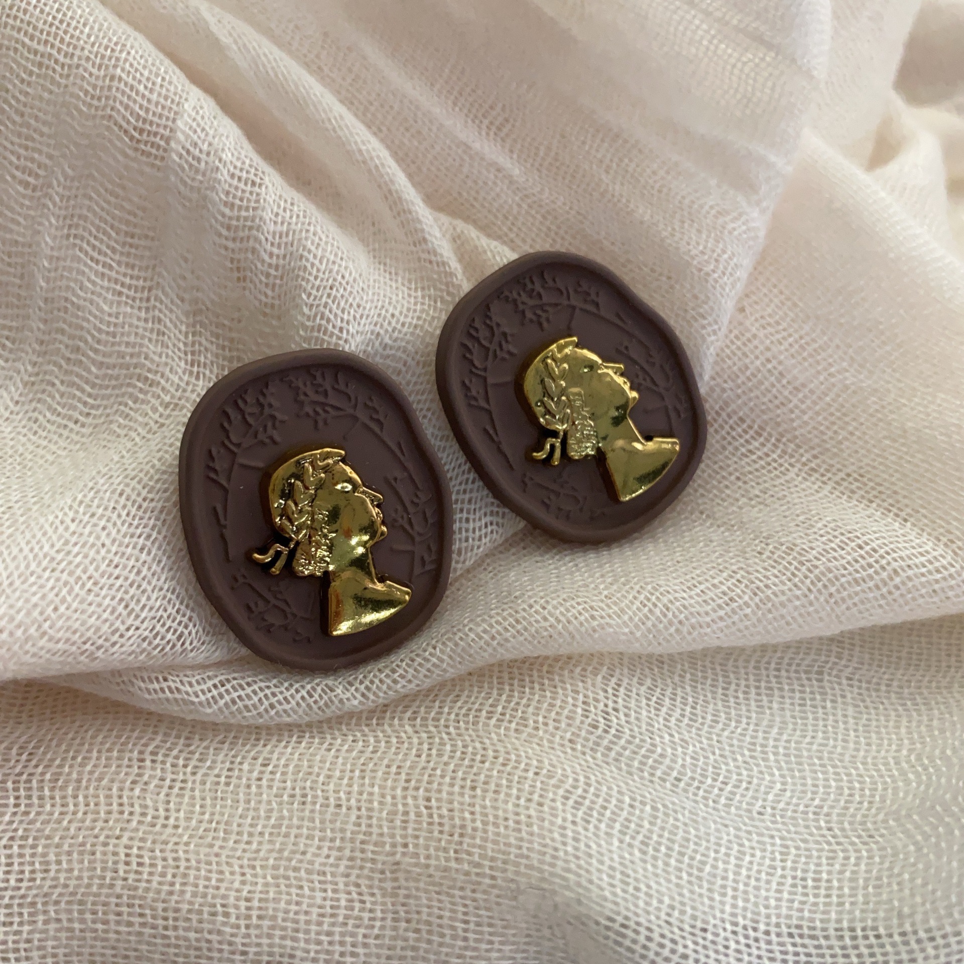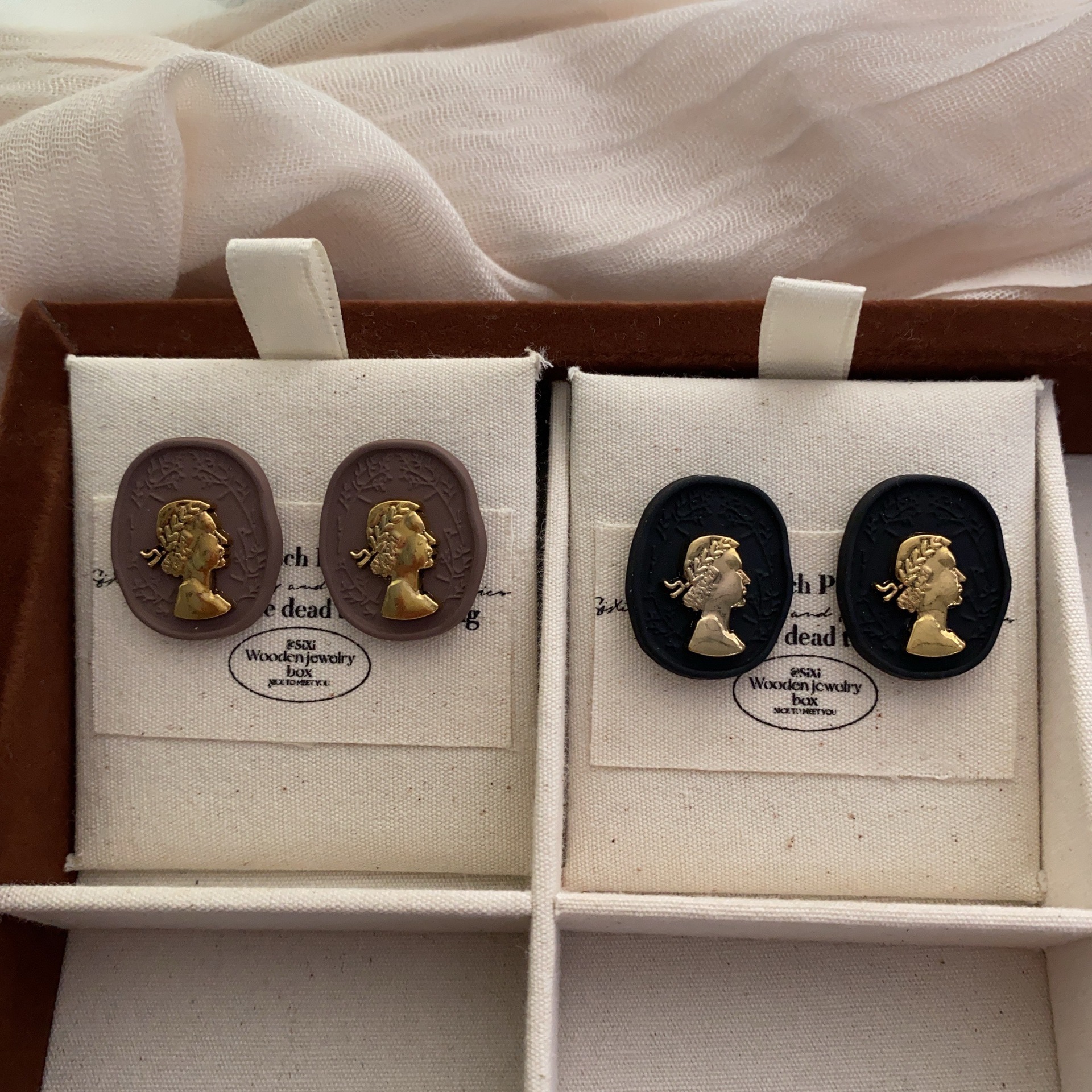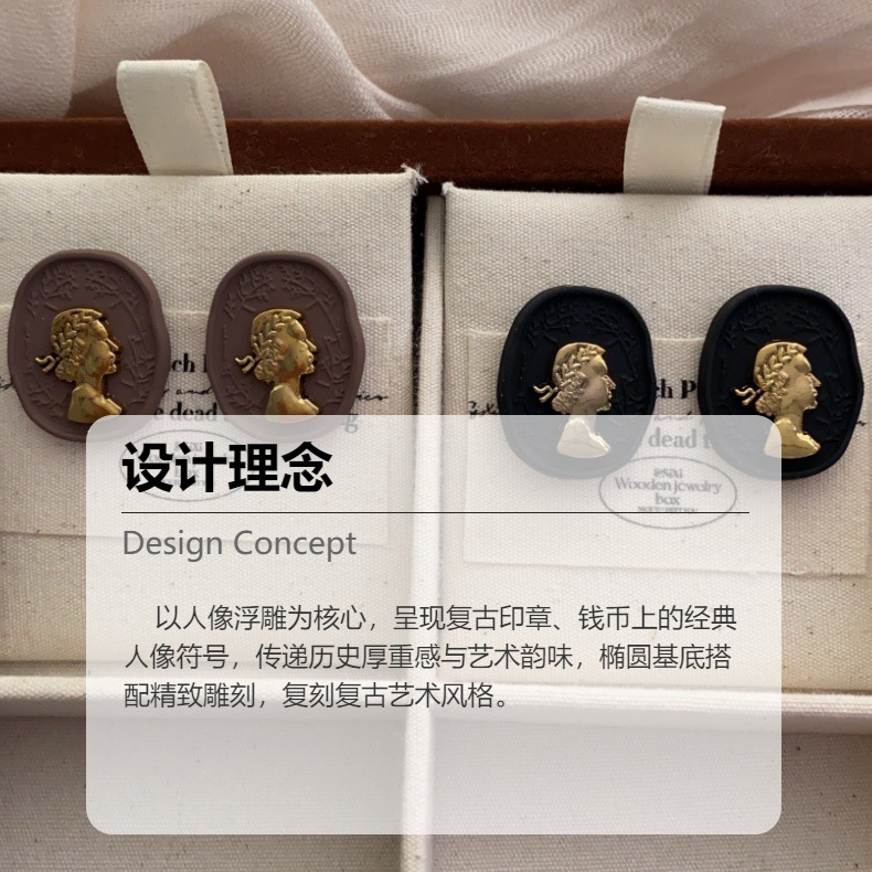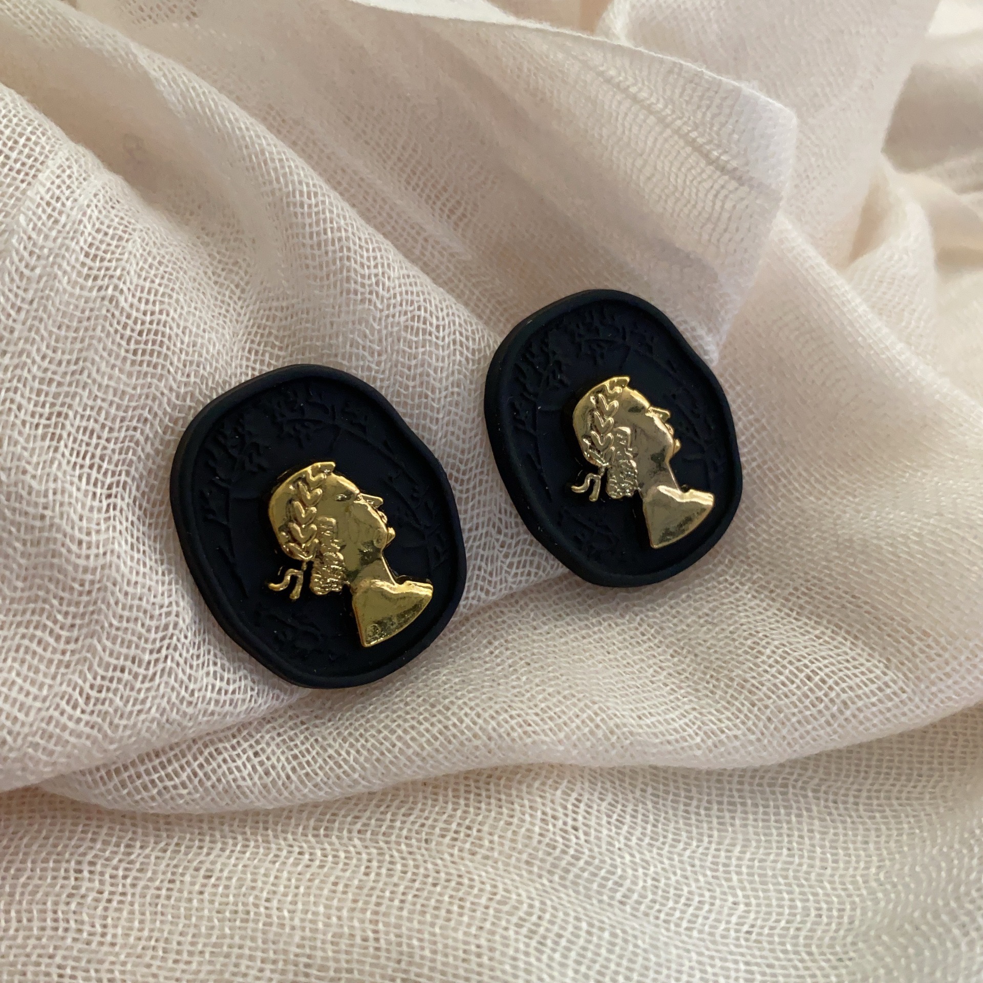 复古椭圆形金色小众设计韩版耳钉小众设计高级感美女头像耳环耳饰