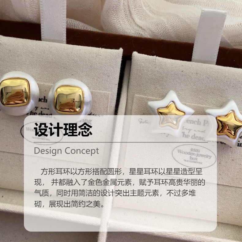 奢华简约高级质感耳钉金属圆形星星耳钉法式百搭气质沉稳大气耳饰