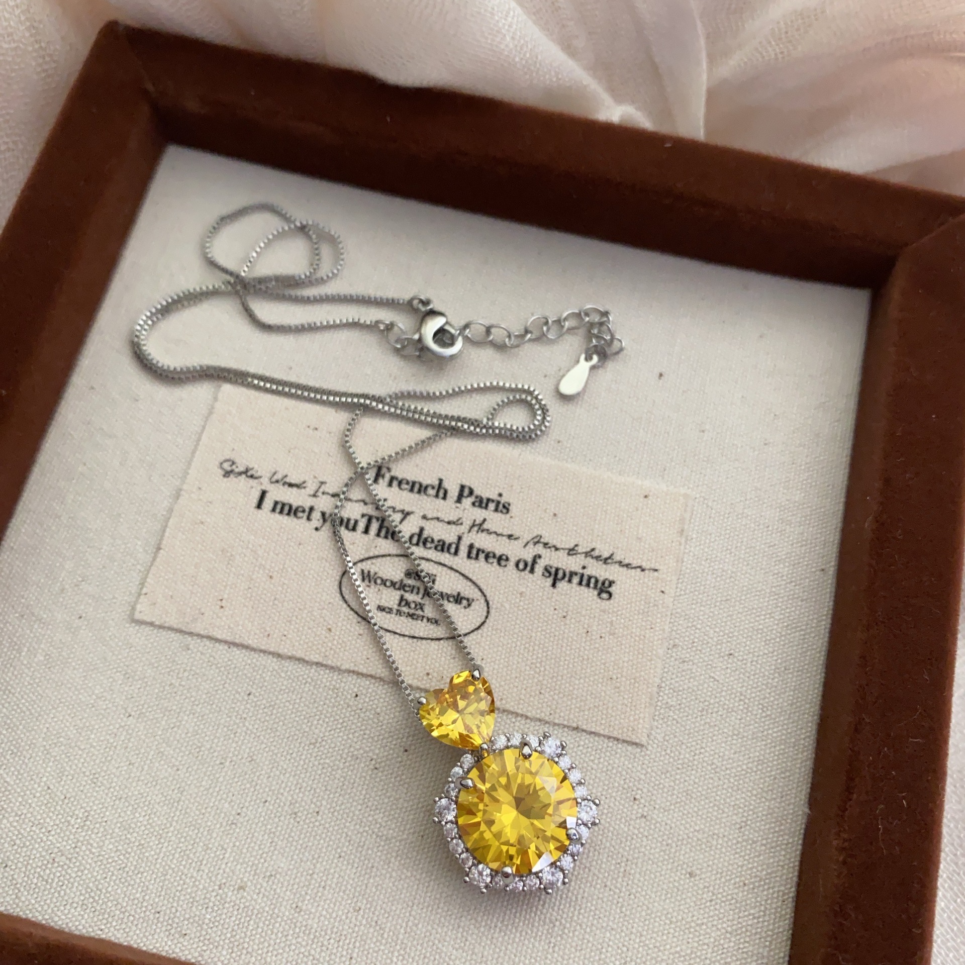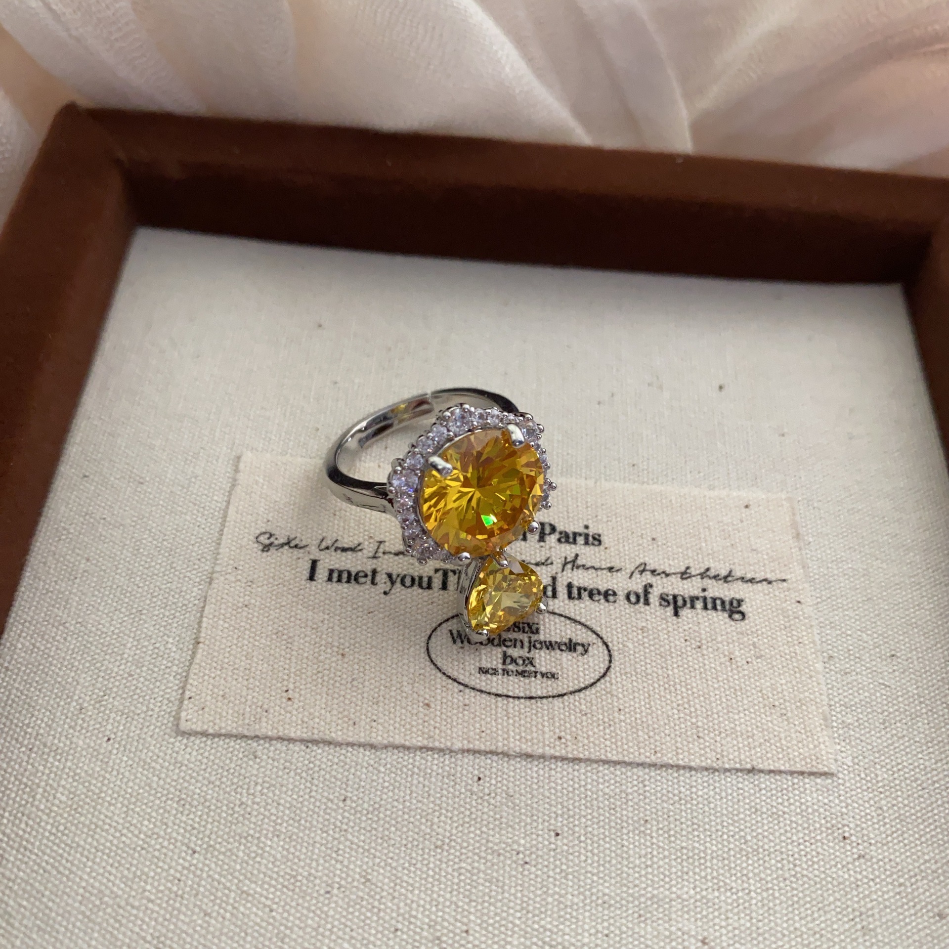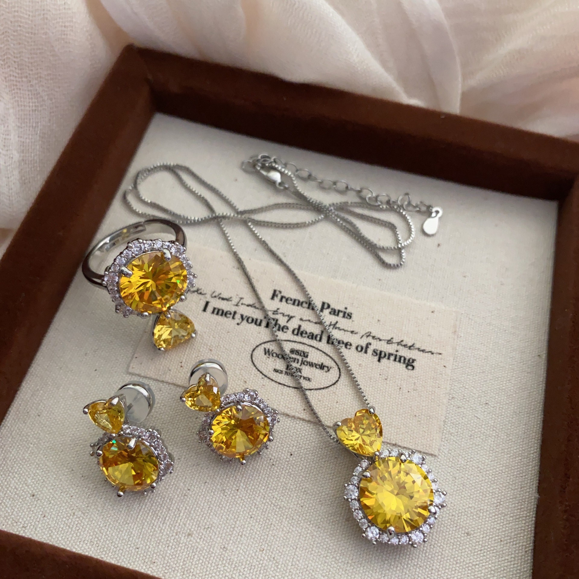 欧美新款镶嵌橙黄彩宝锆石轻奢气质简约百搭超仙戒指耳钉项链套装