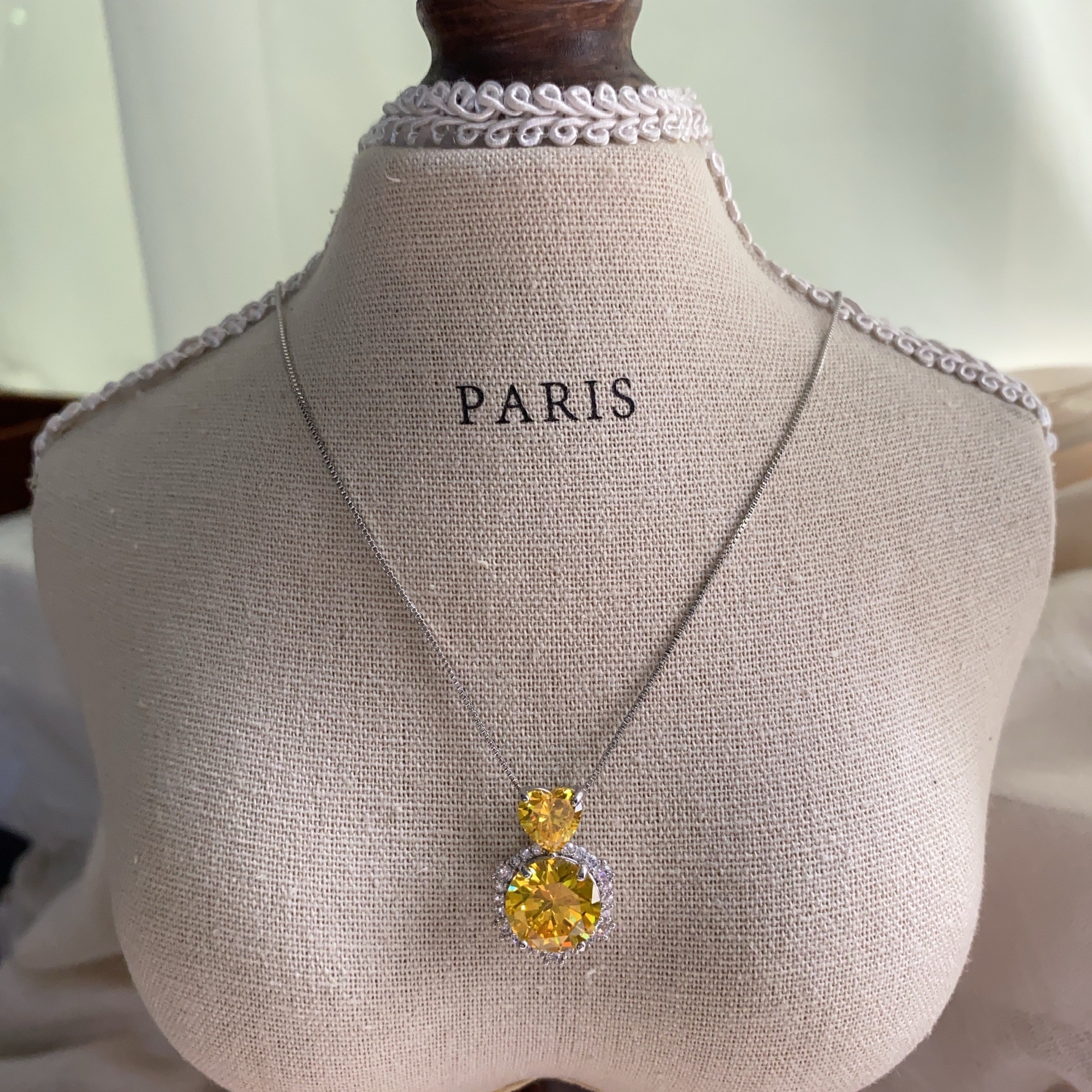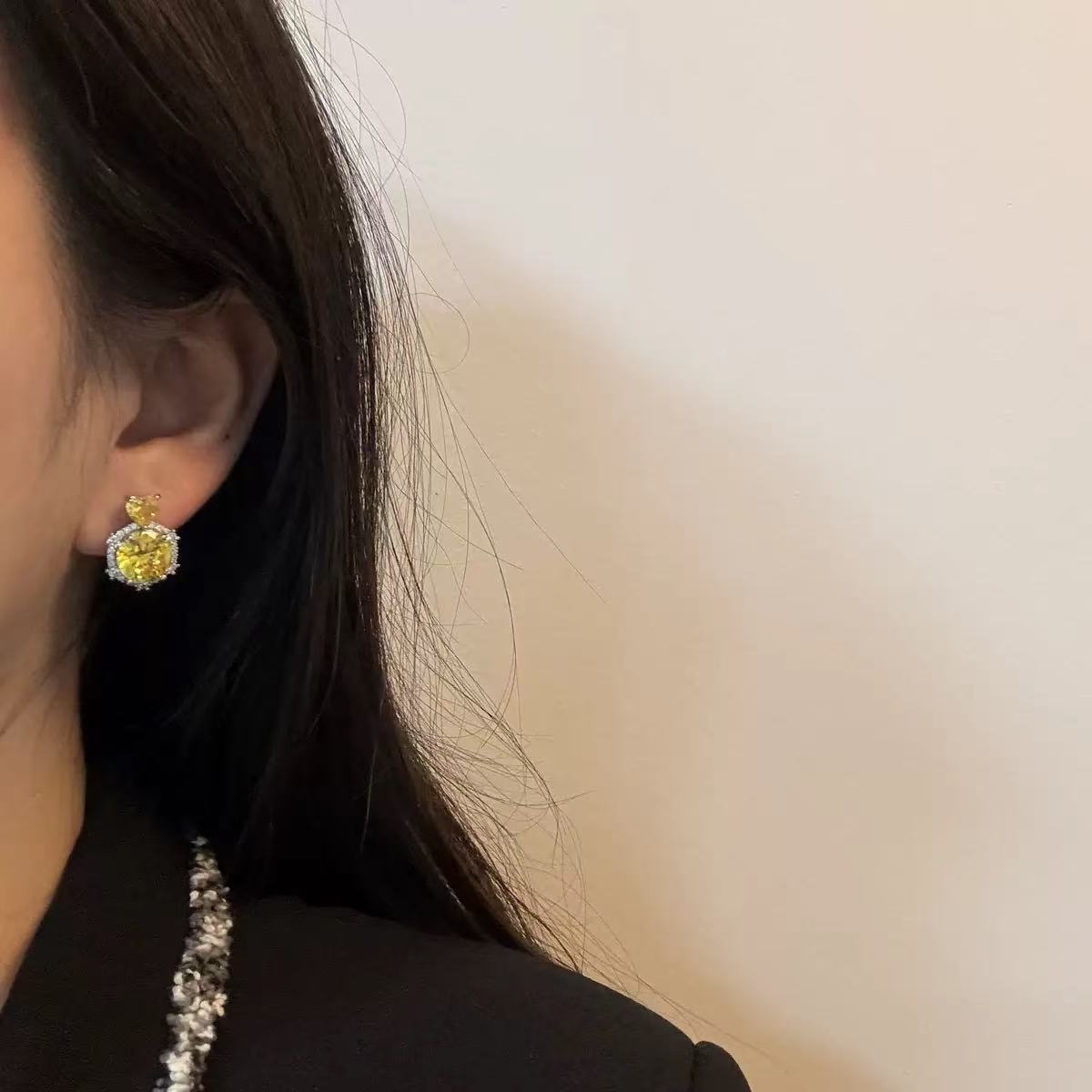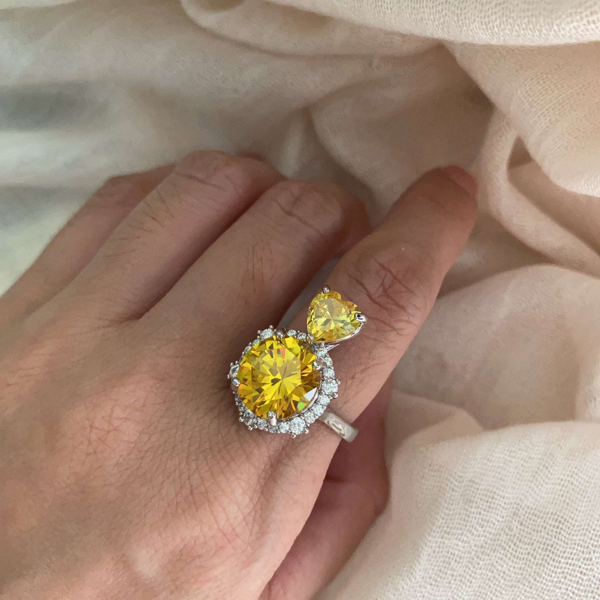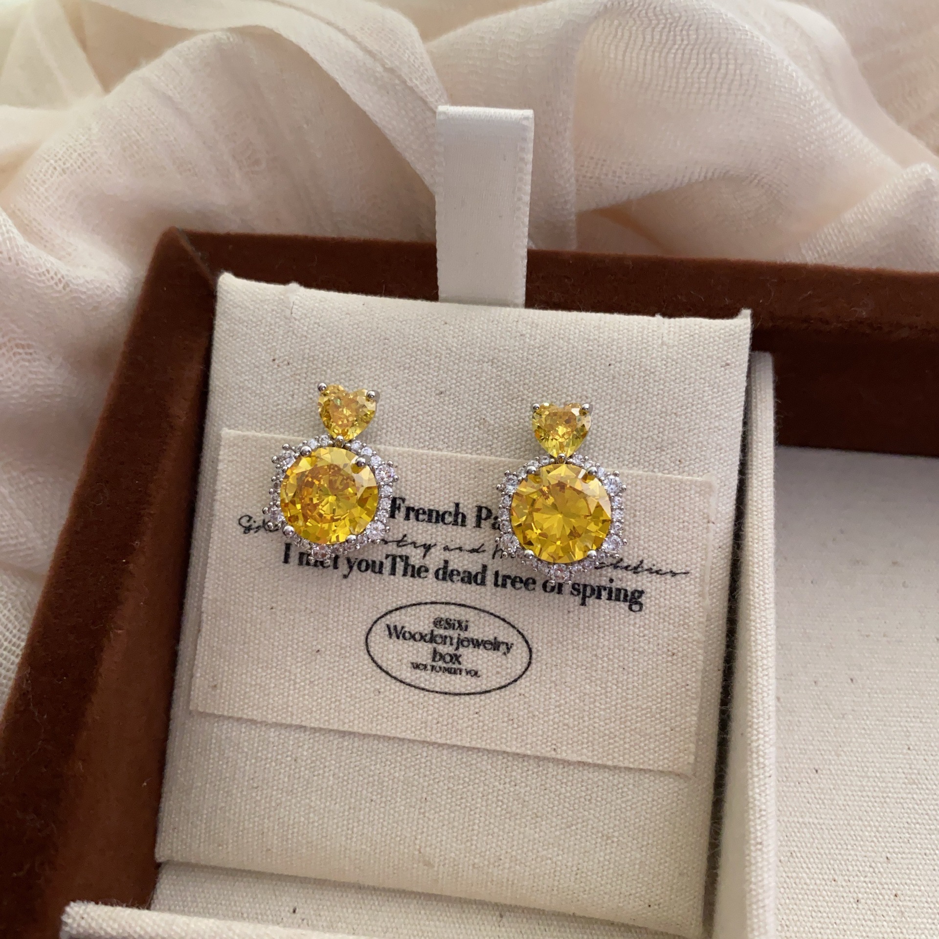 欧美新款镶嵌橙黄彩宝锆石轻奢气质简约百搭超仙戒指耳钉项链套装