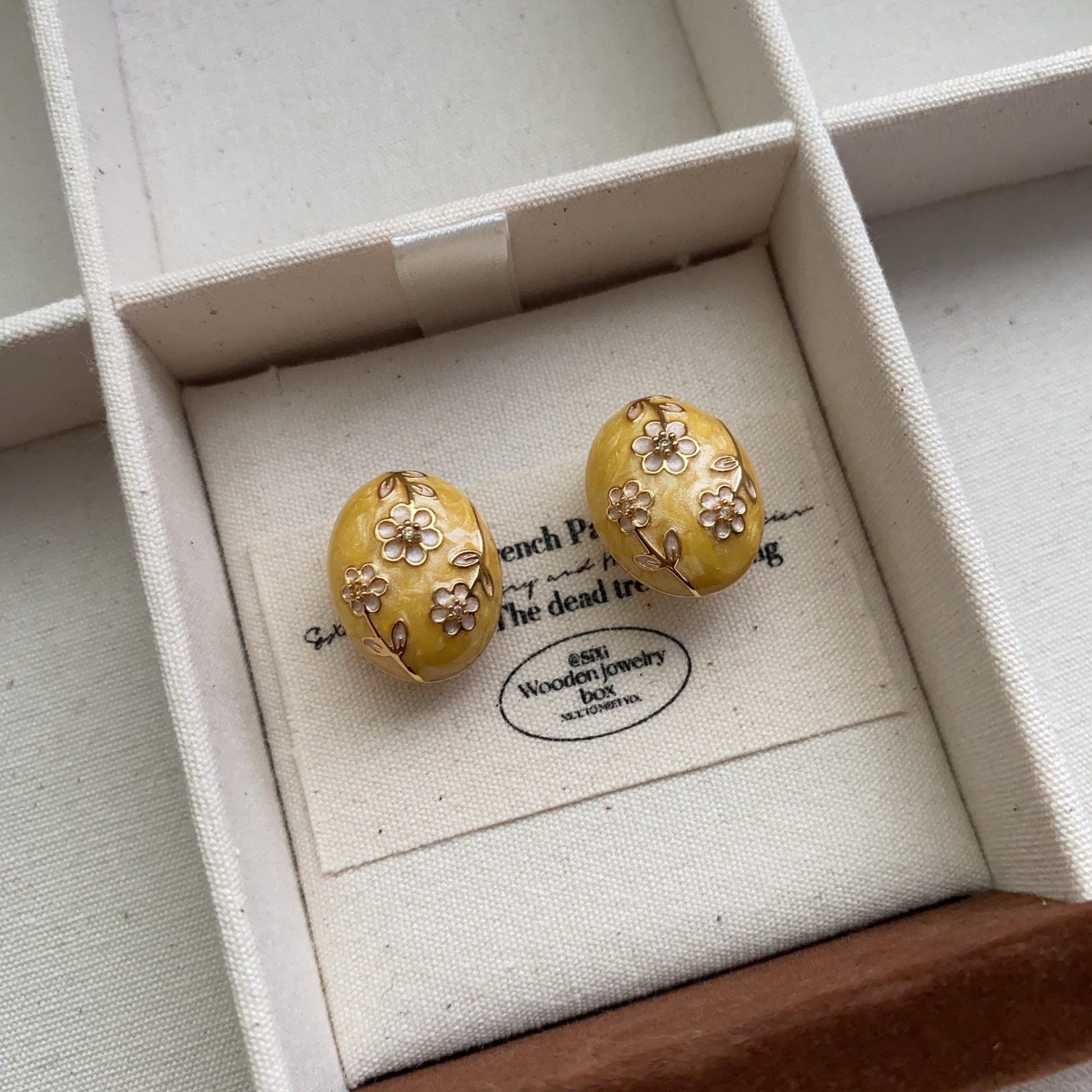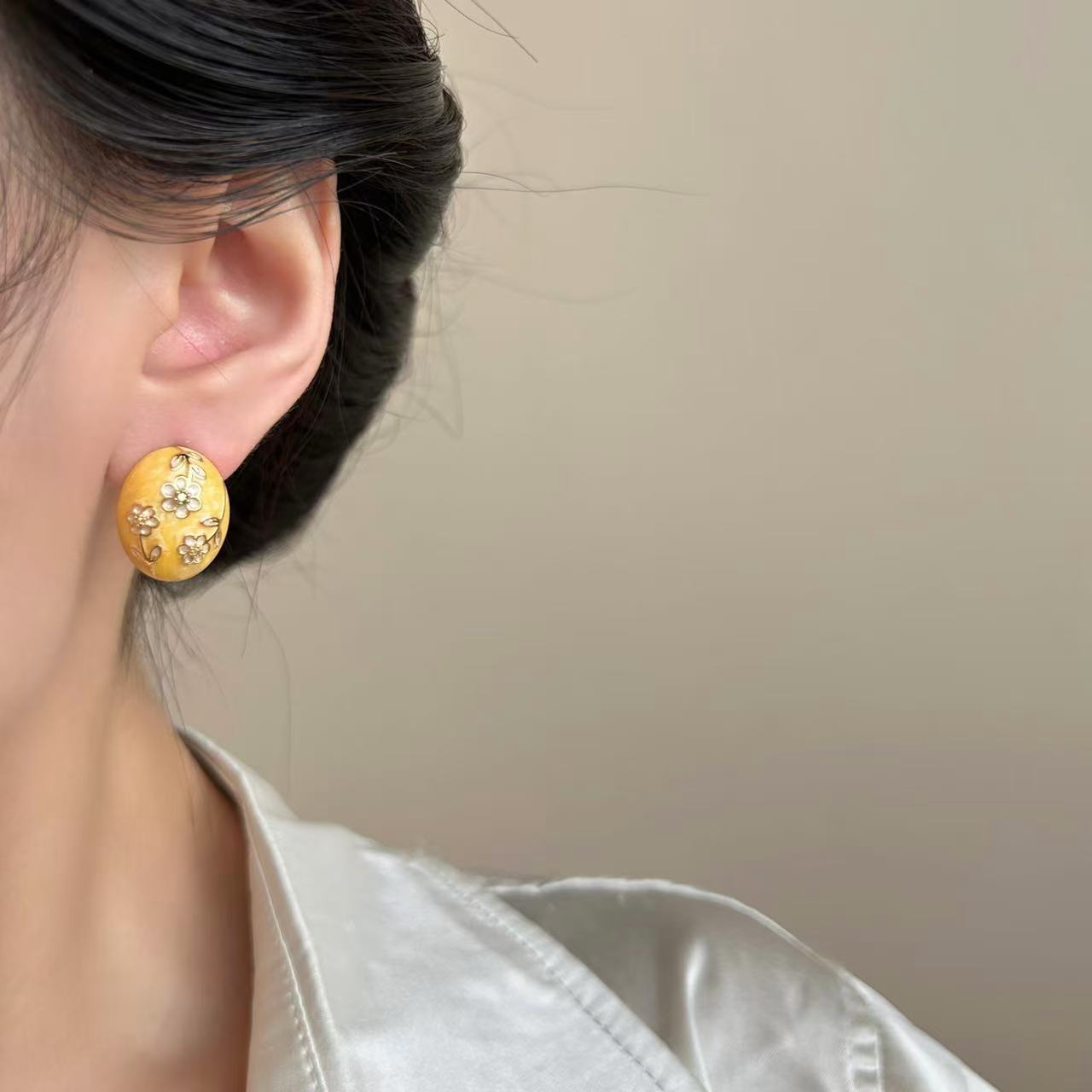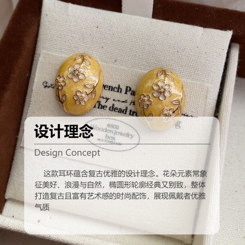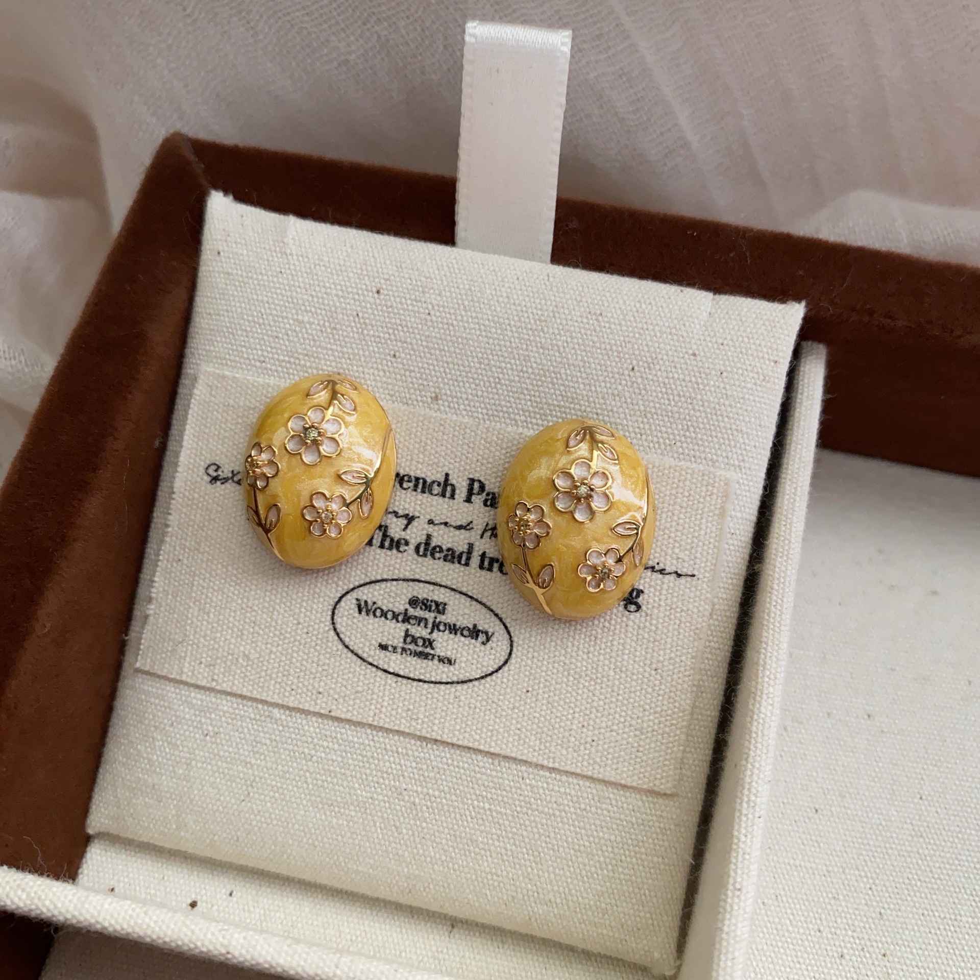 中古耳钉欧美复古宫廷风简约高级感耳环珐琅彩滴油椭圆梅花60起订