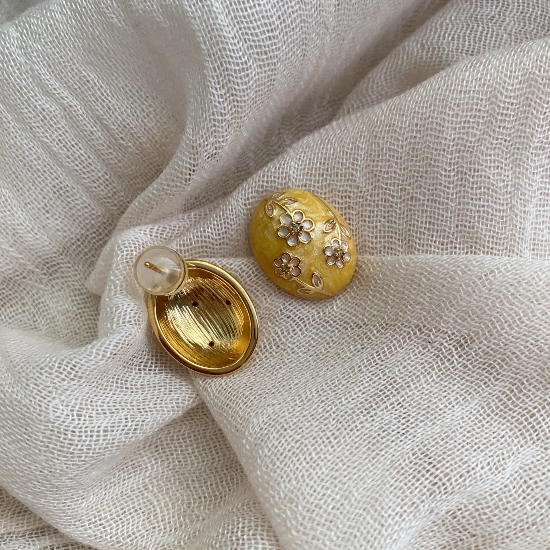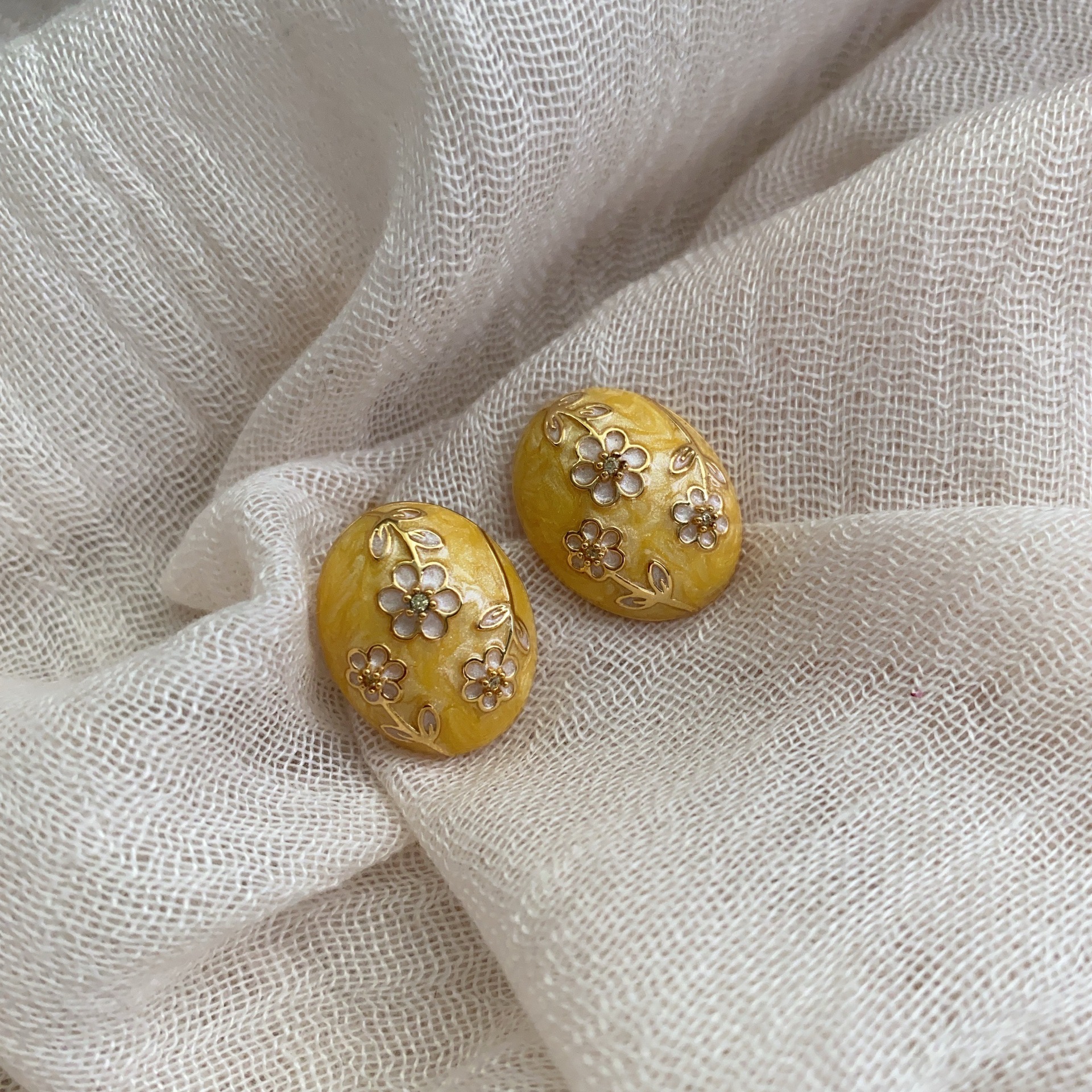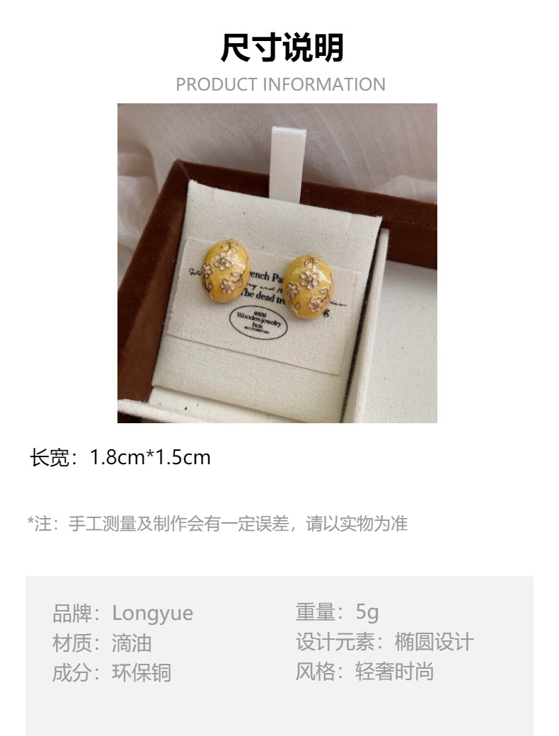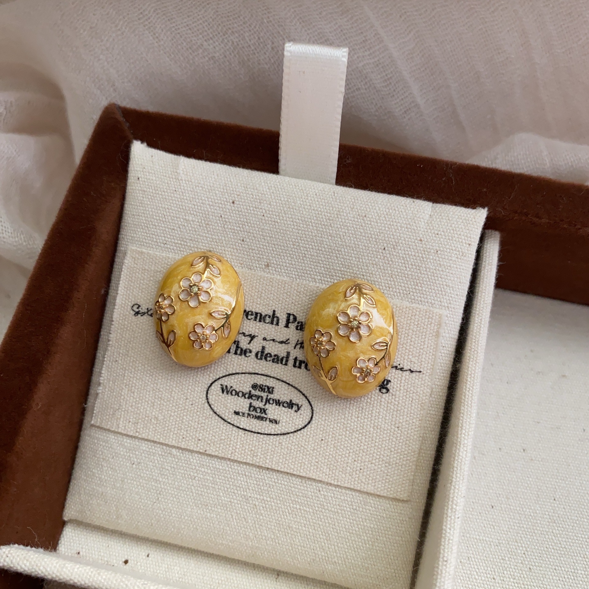 中古耳钉欧美复古宫廷风简约高级感耳环珐琅彩滴油椭圆梅花60起订
