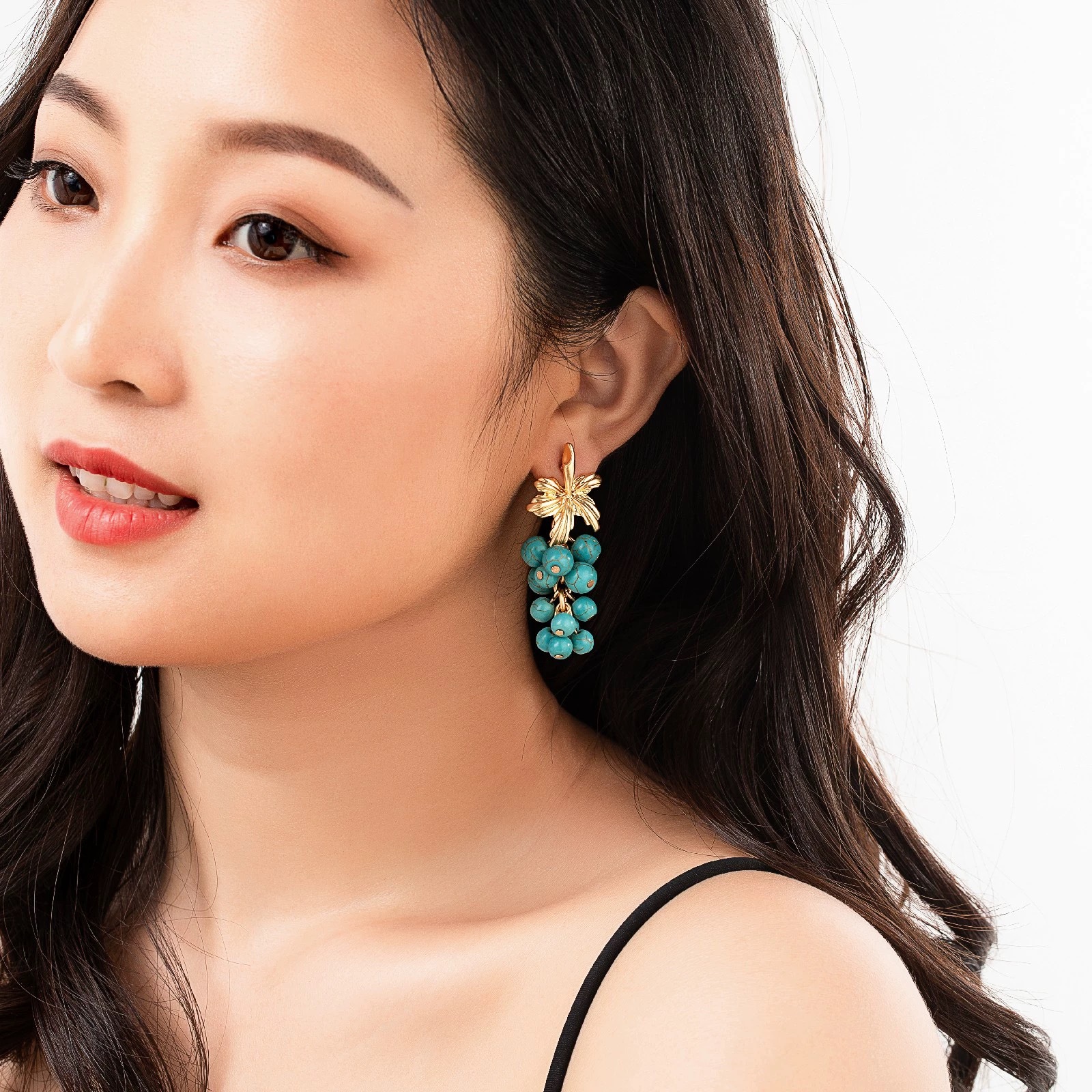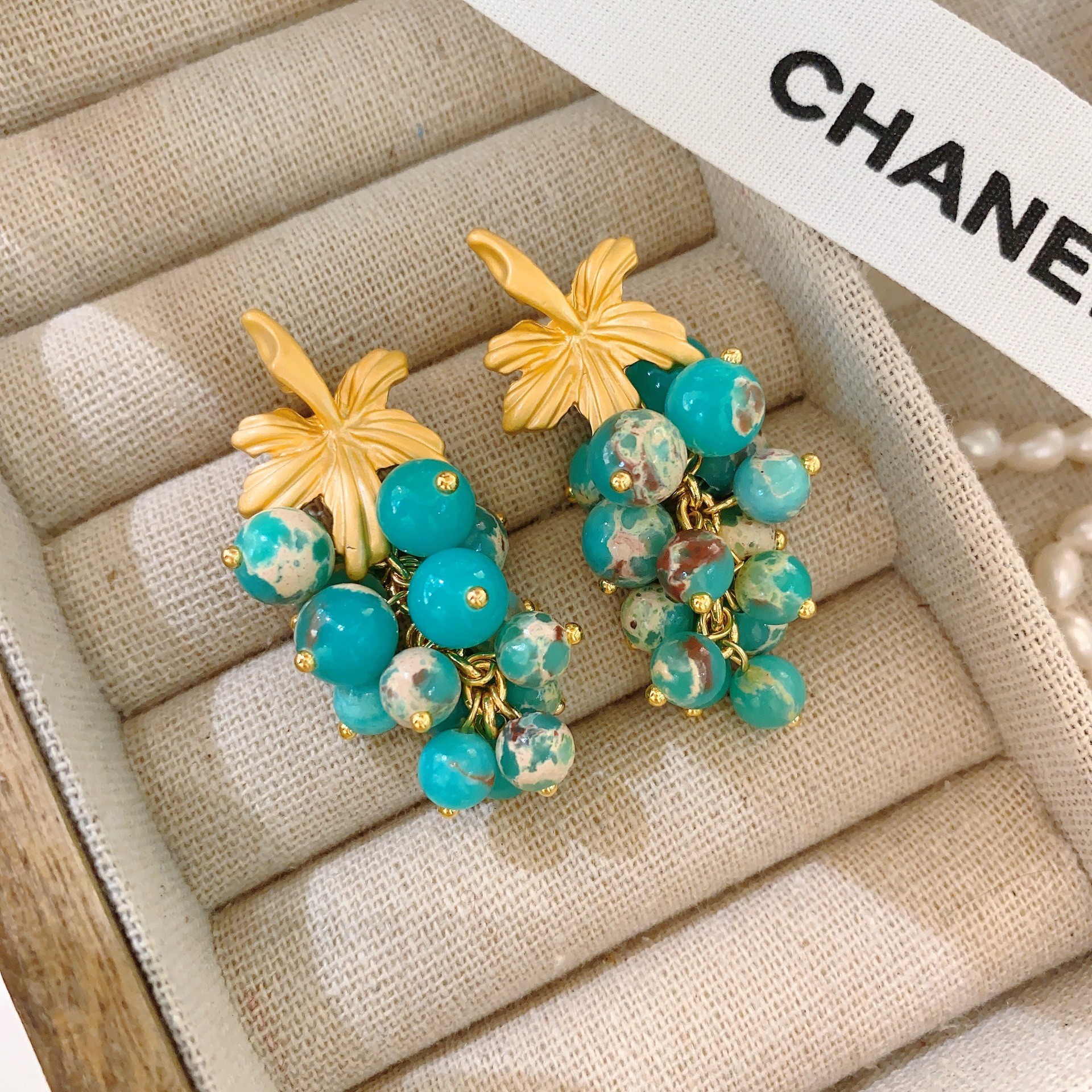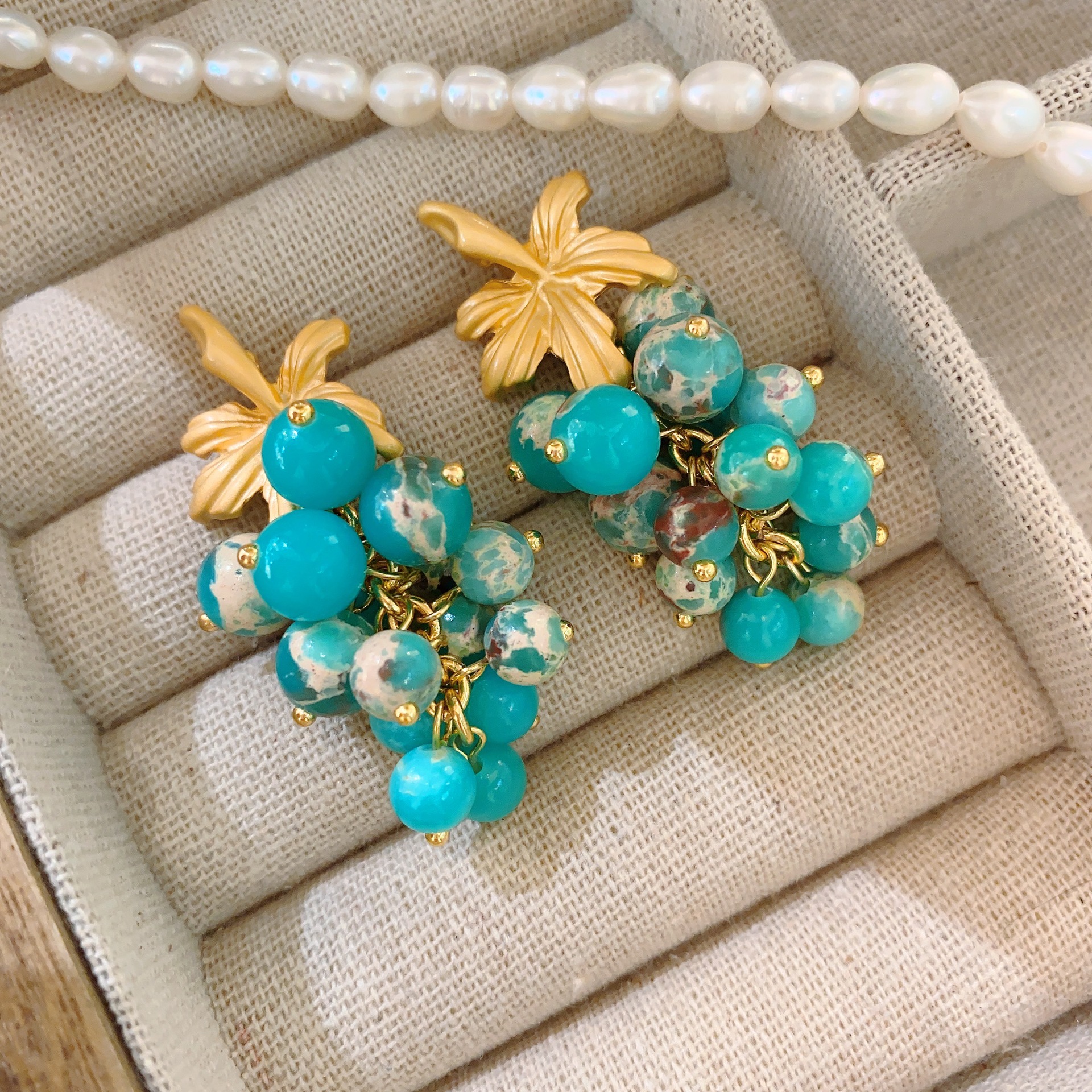 葡萄串蓝松石耳坠复古轻奢法式高级感耳环中古风气质独特显白耳饰