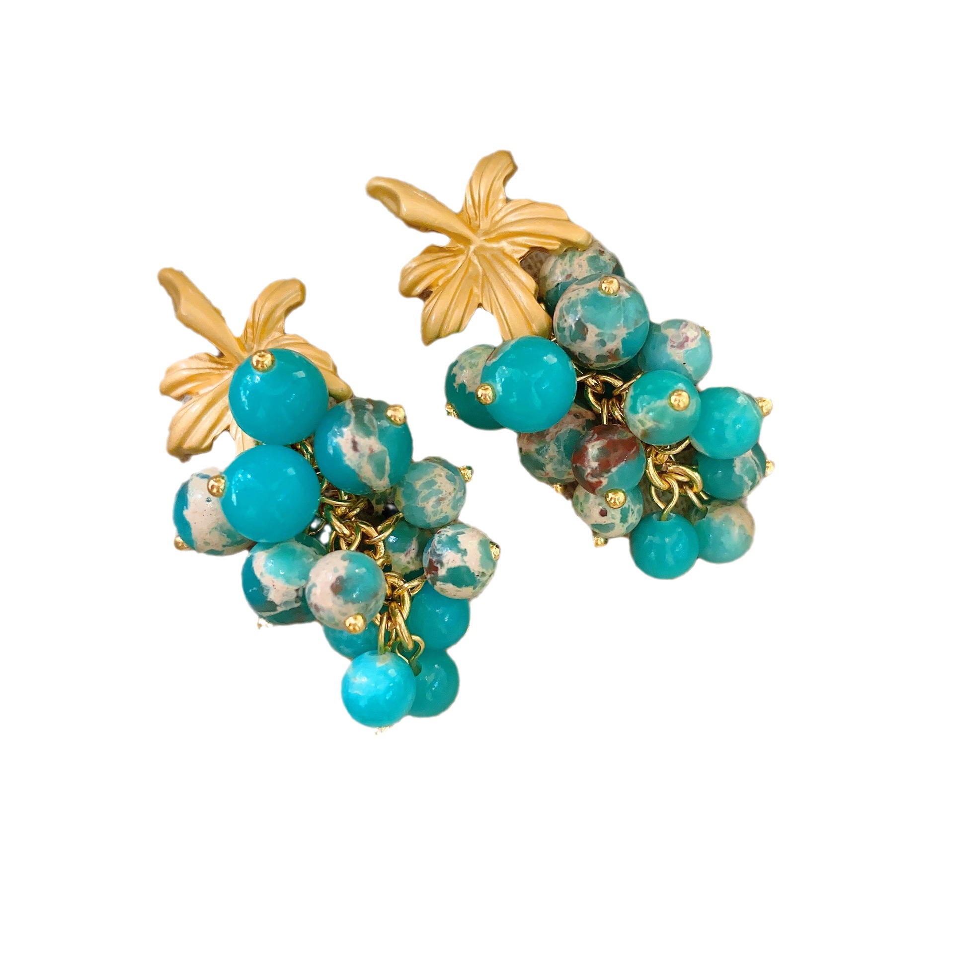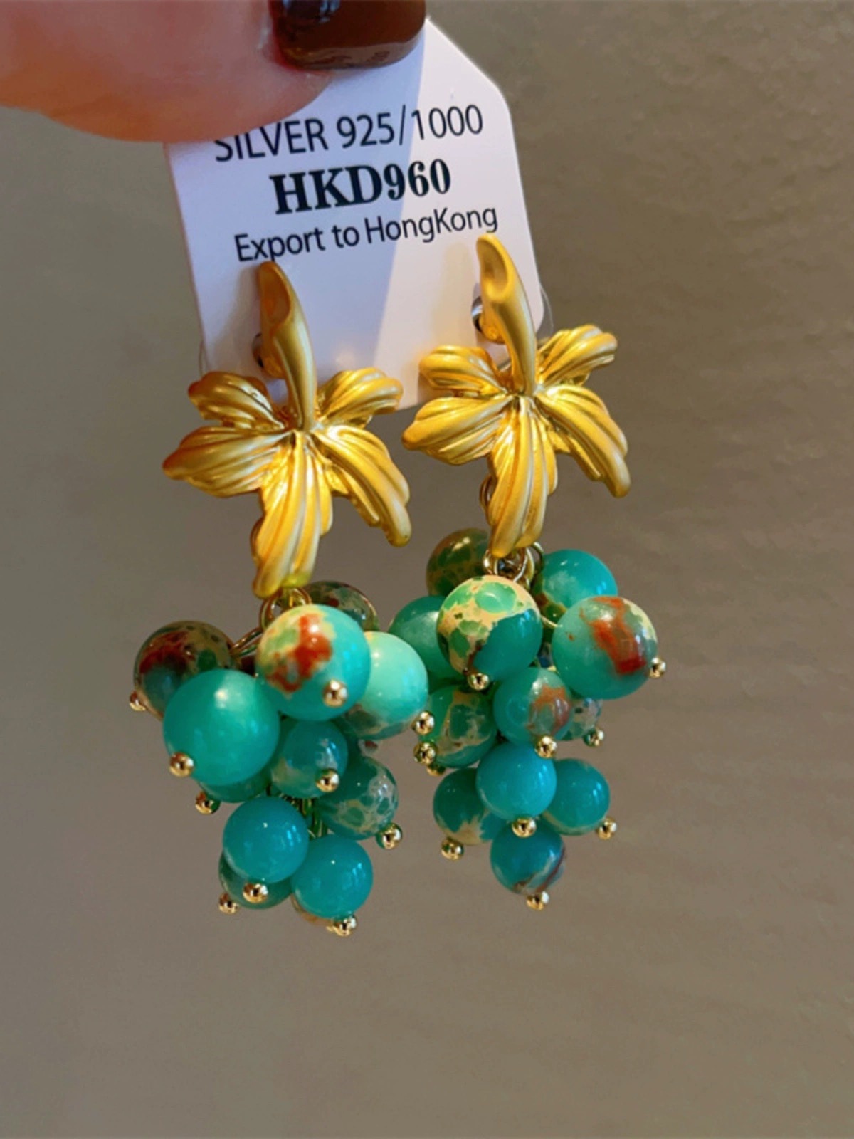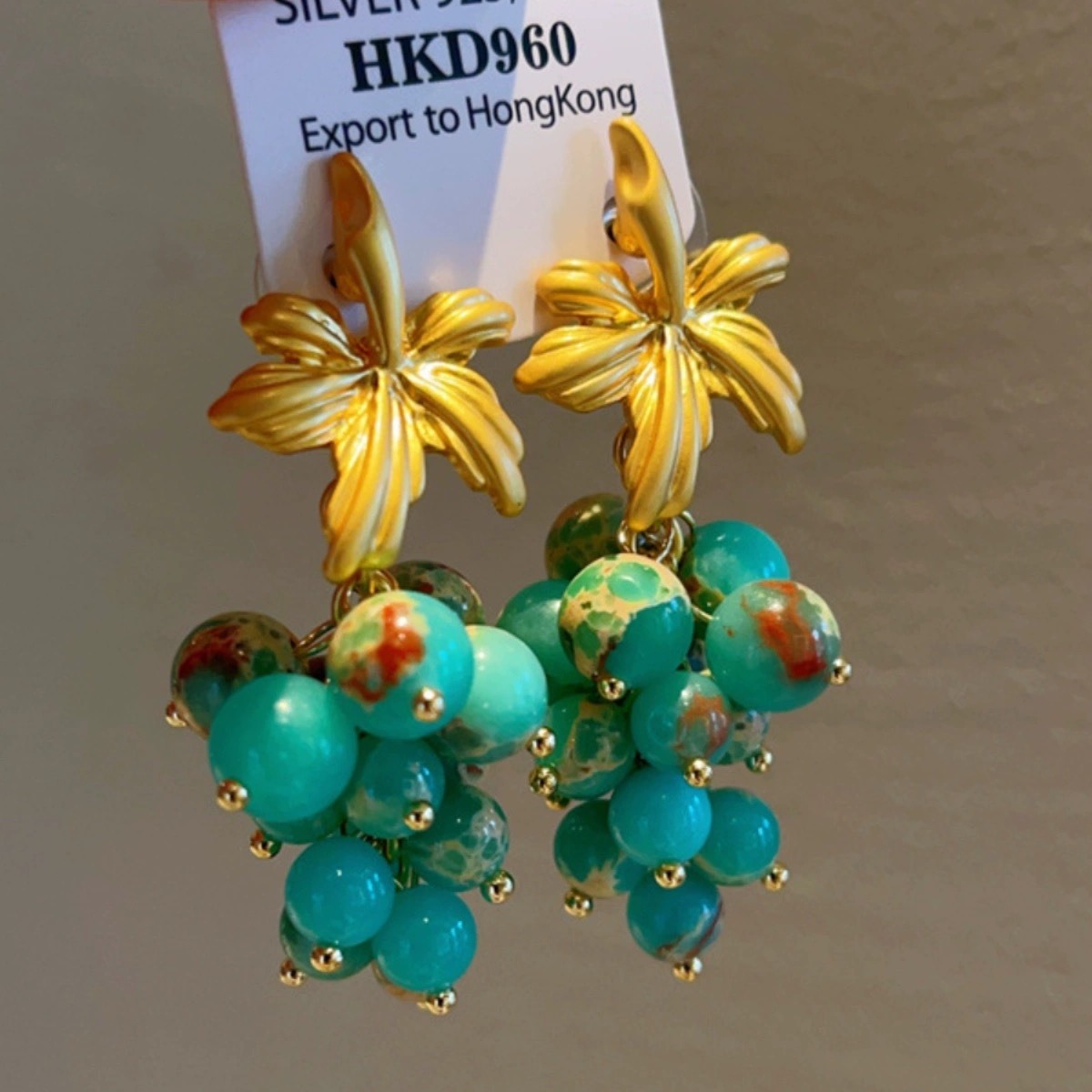 葡萄串蓝松石耳坠复古轻奢法式高级感耳环中古风气质独特显白耳饰