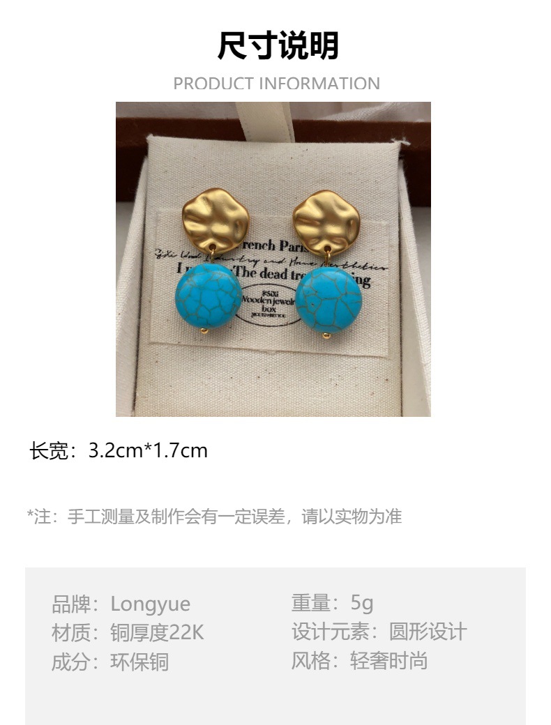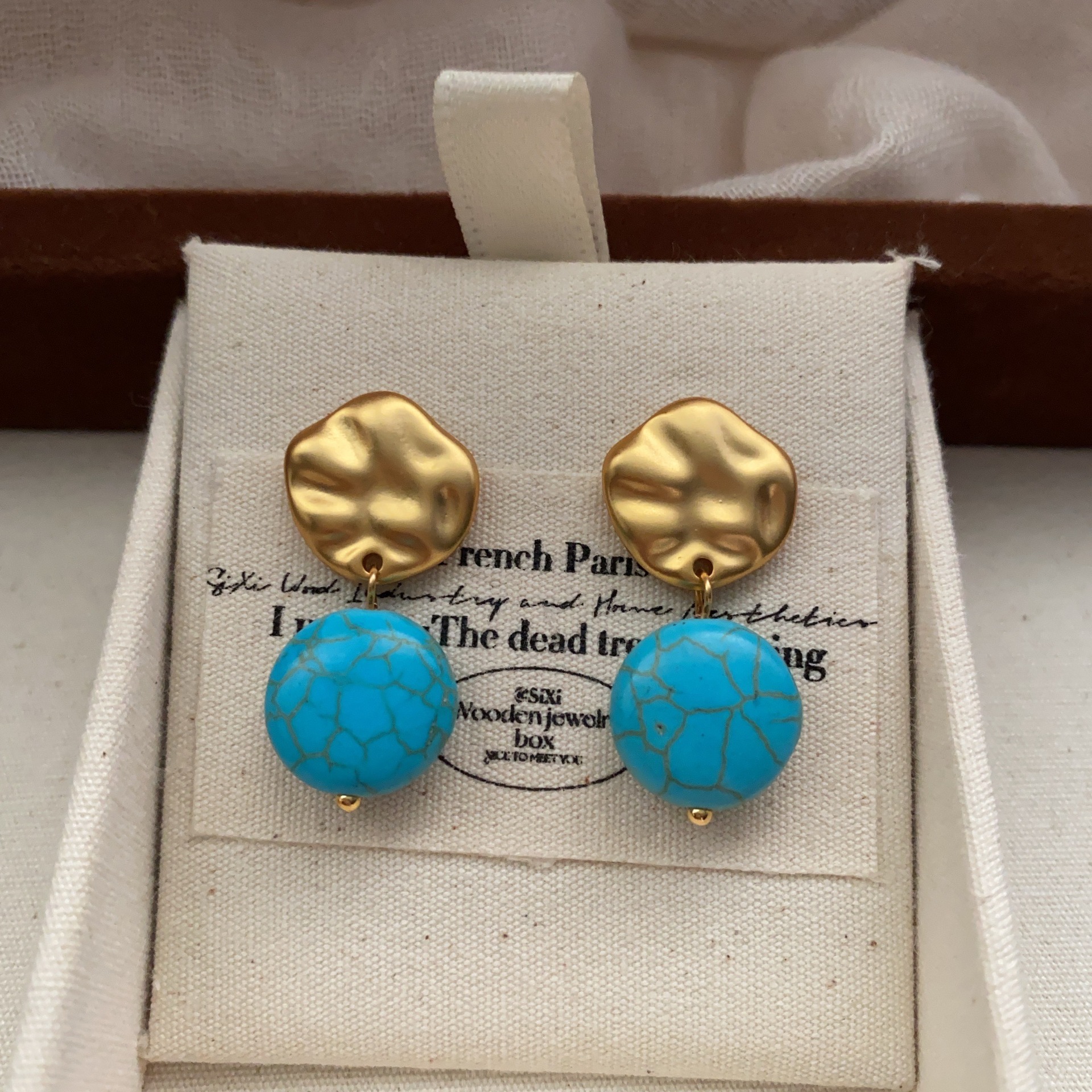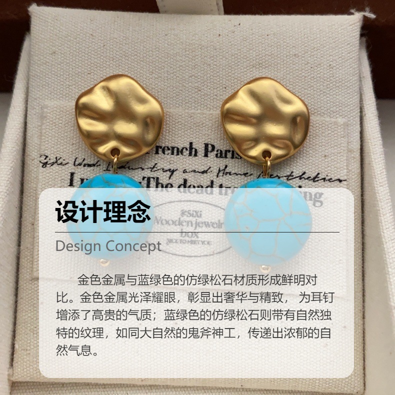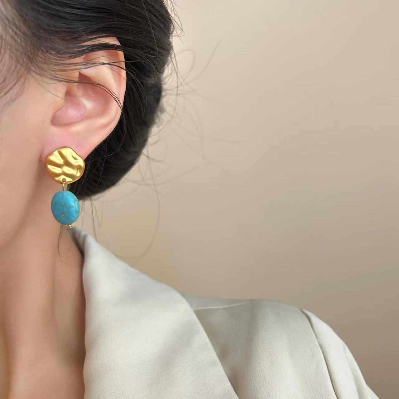 蓝绿色绿松石耳环法式耳饰复古设计耳钉奢华精致气质高级时尚百搭