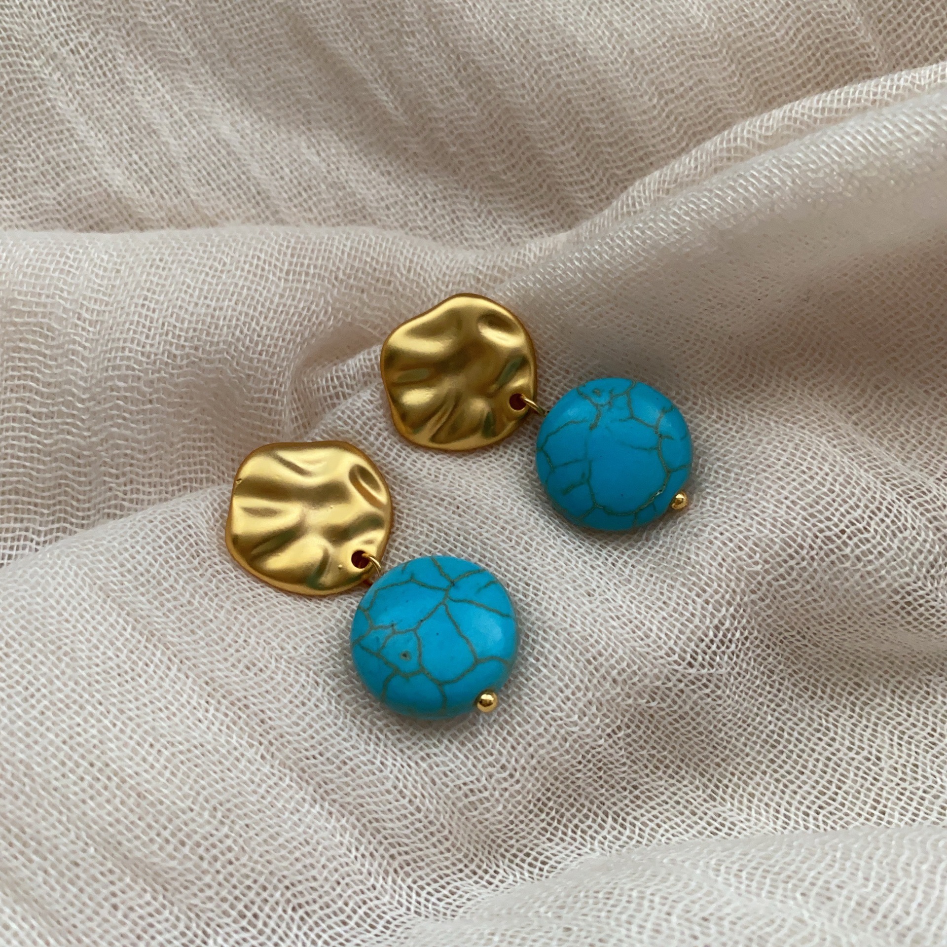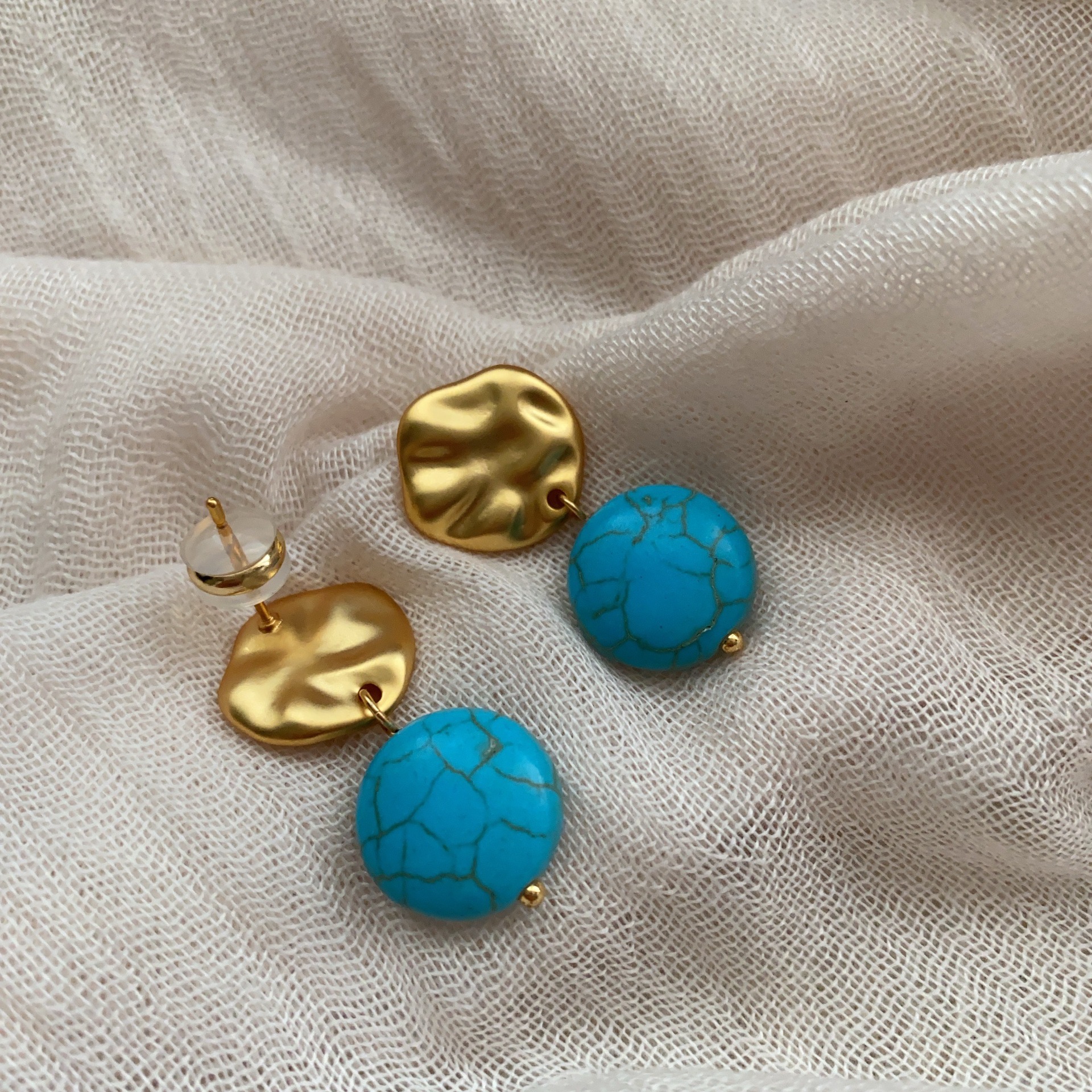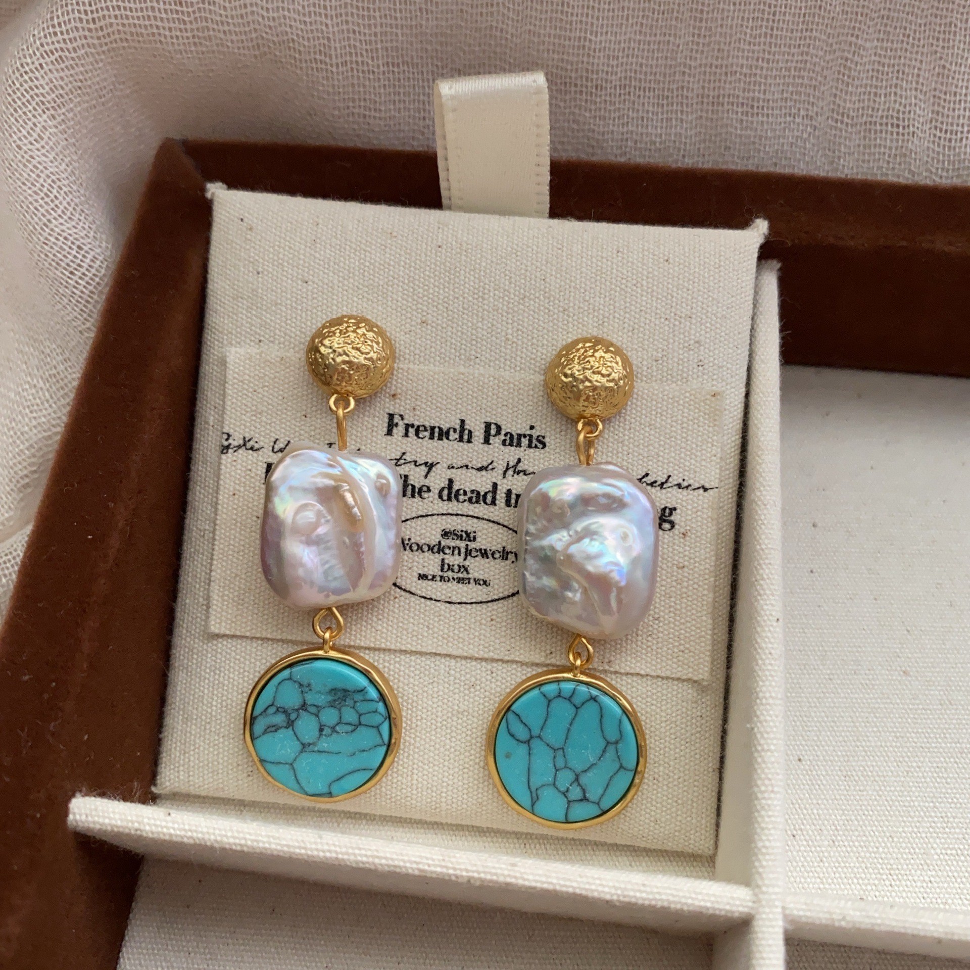 蓝绿色绿松石耳环法式耳饰复古设计耳钉奢华精致气质高级时尚百搭