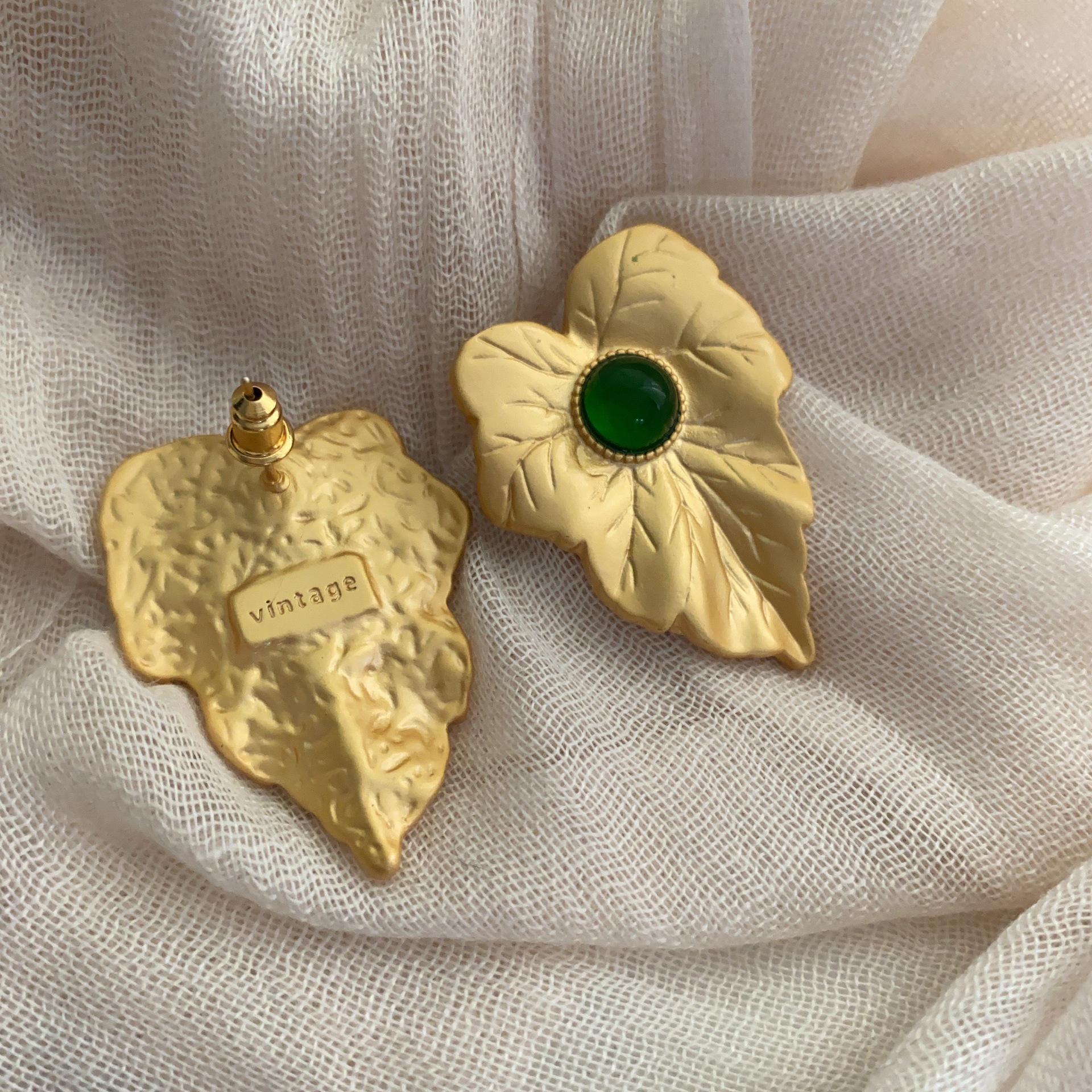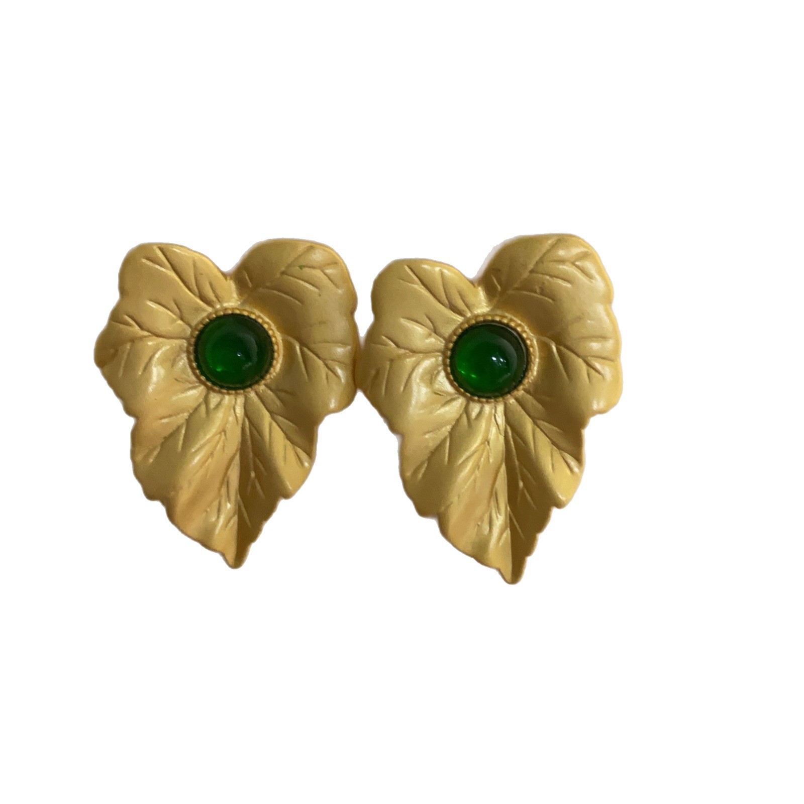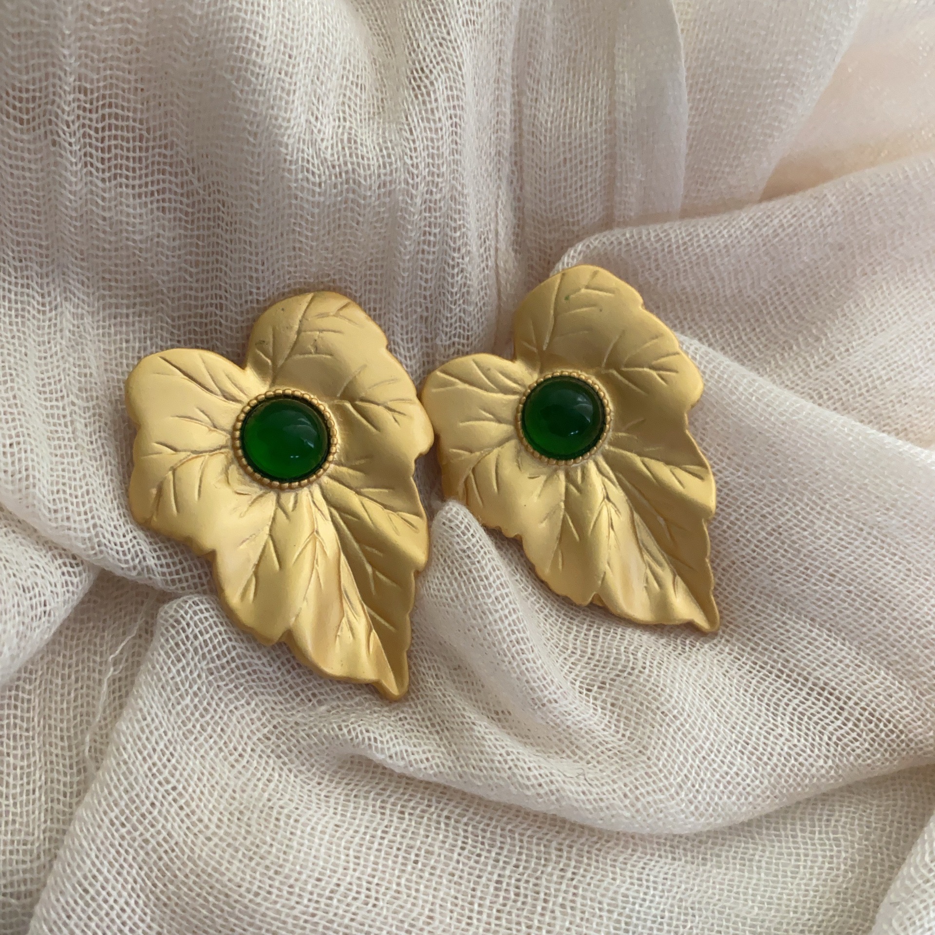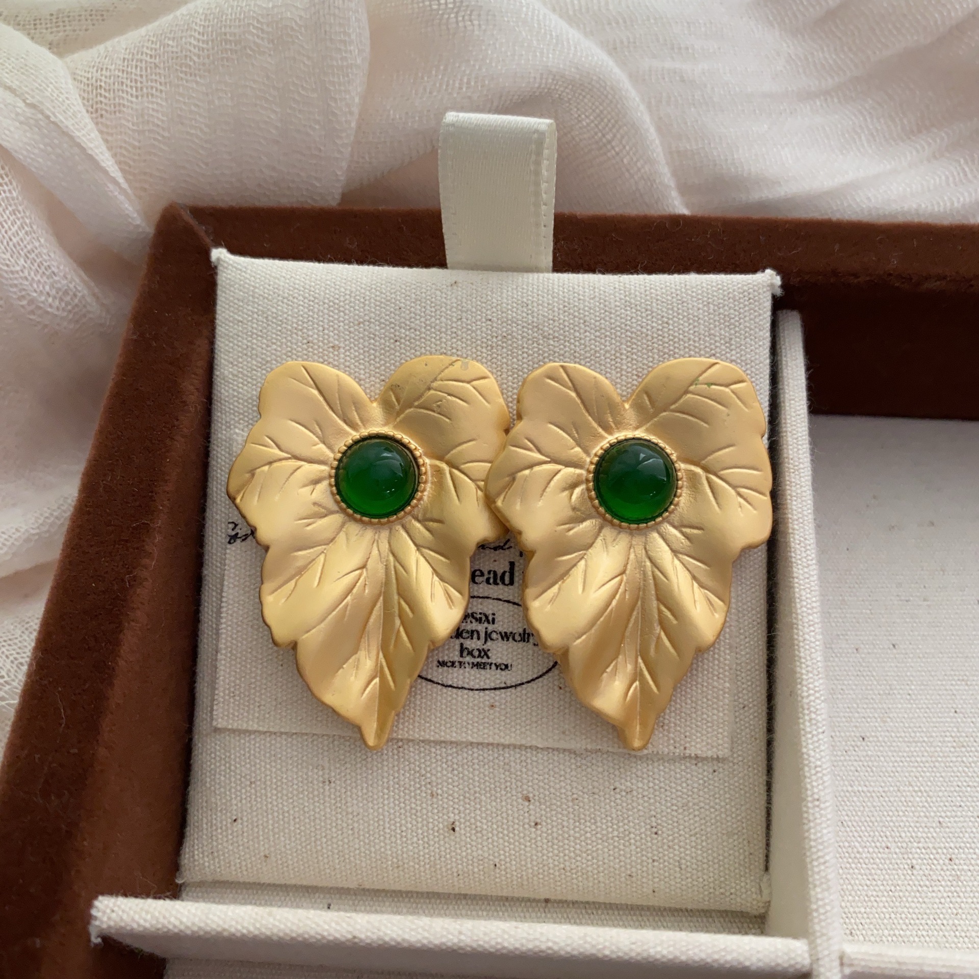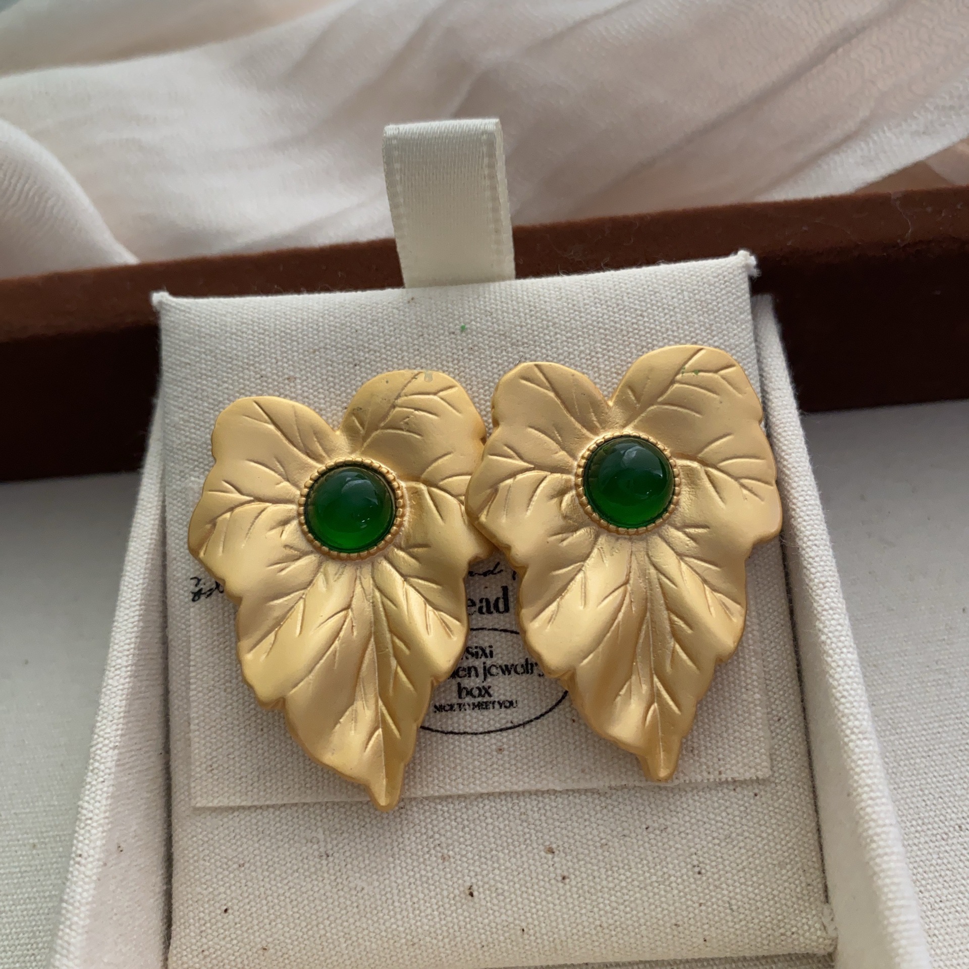 三生有幸叶片设计耳钉莫奈风格耳饰法式复古手工琉璃气质百搭耳钉