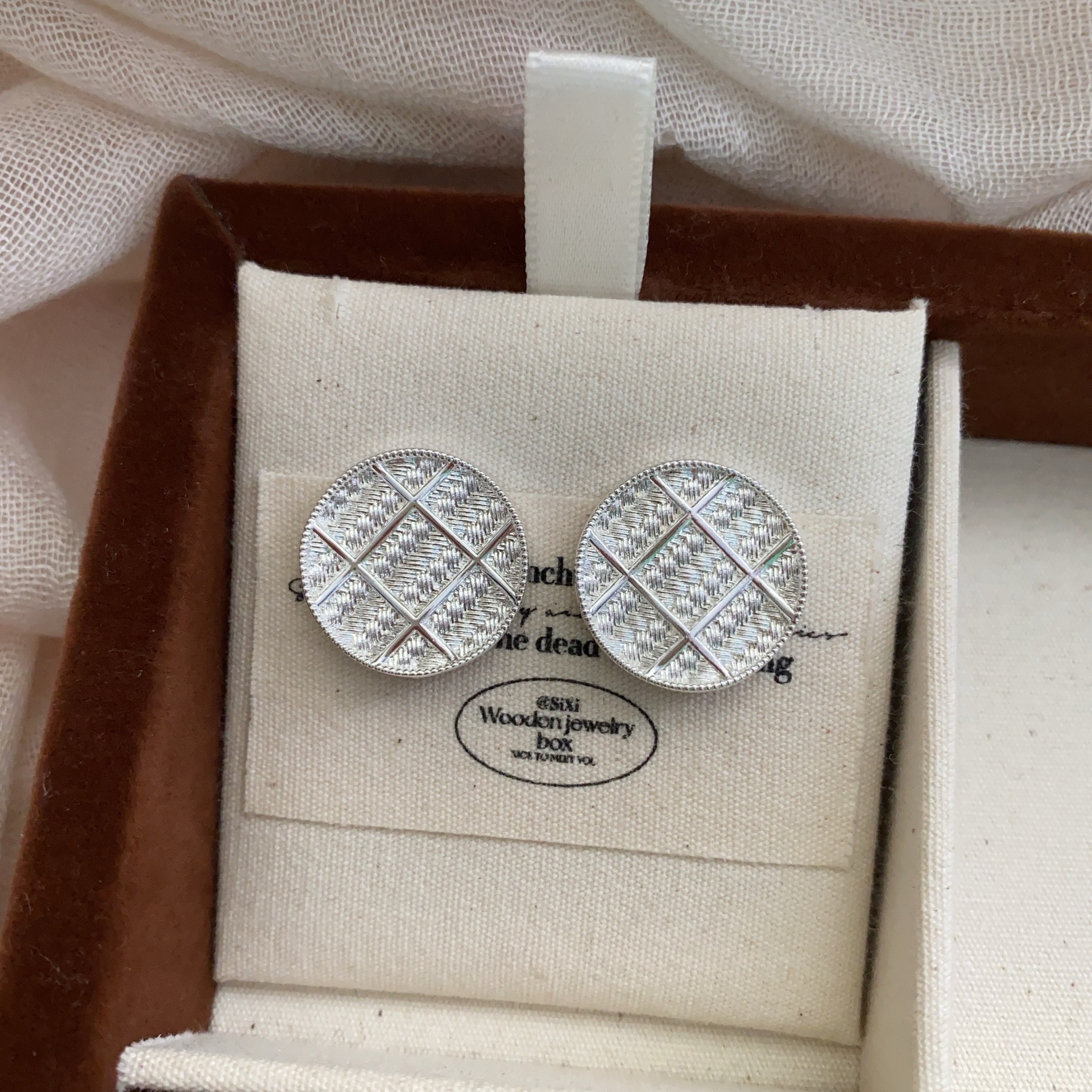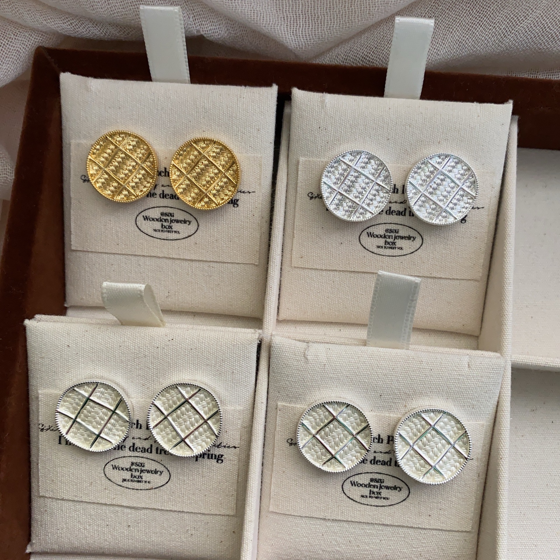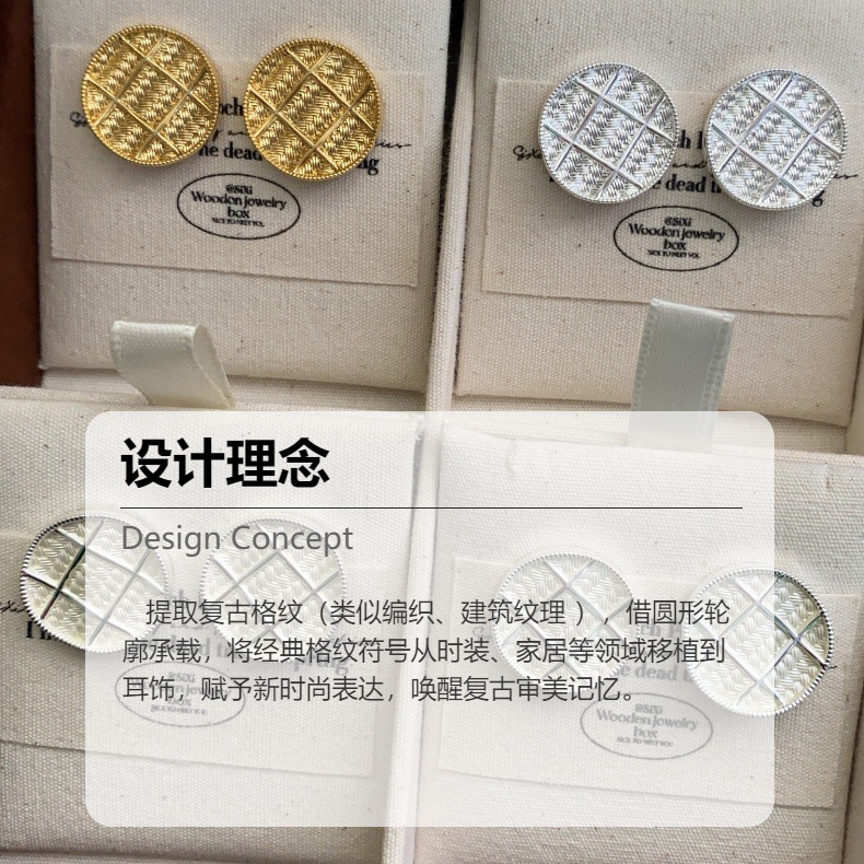 时尚百搭复古格纹耳饰精致轻奢滴油钮扣不规则网格耳钉感清新耳环