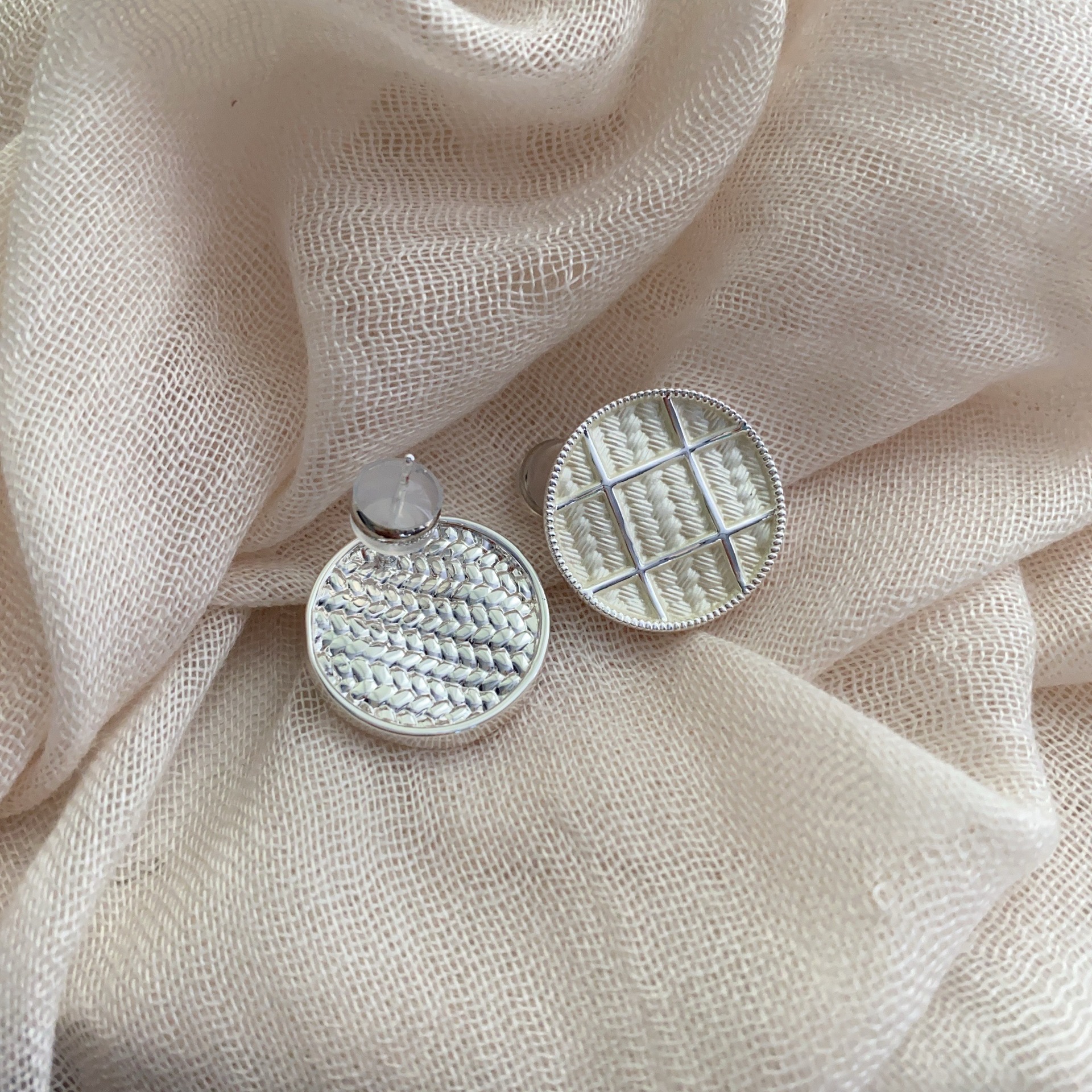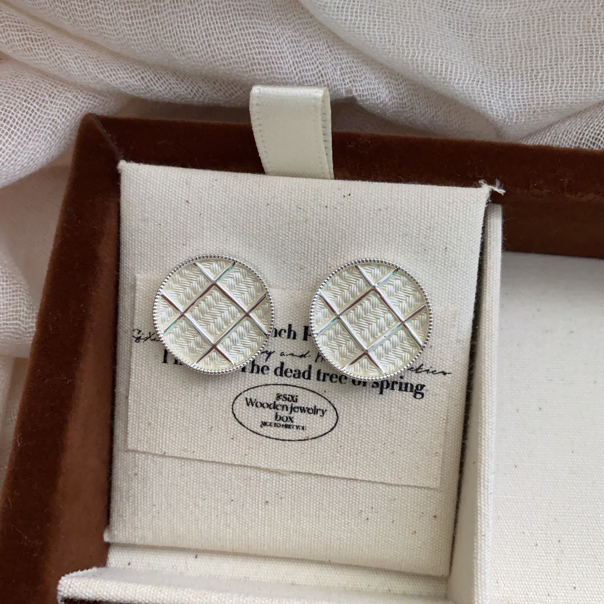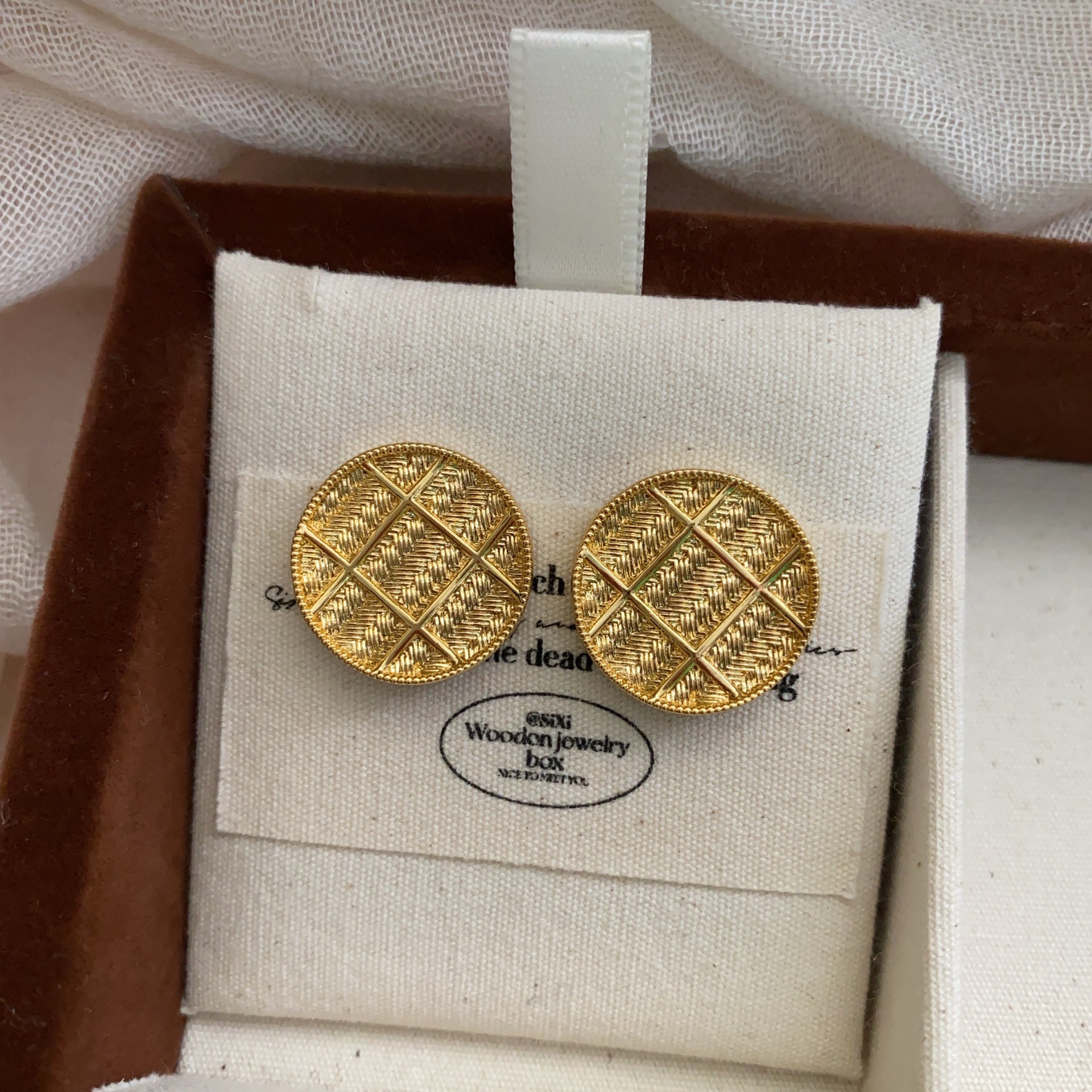 时尚百搭复古格纹耳饰精致轻奢滴油钮扣不规则网格耳钉感清新耳环