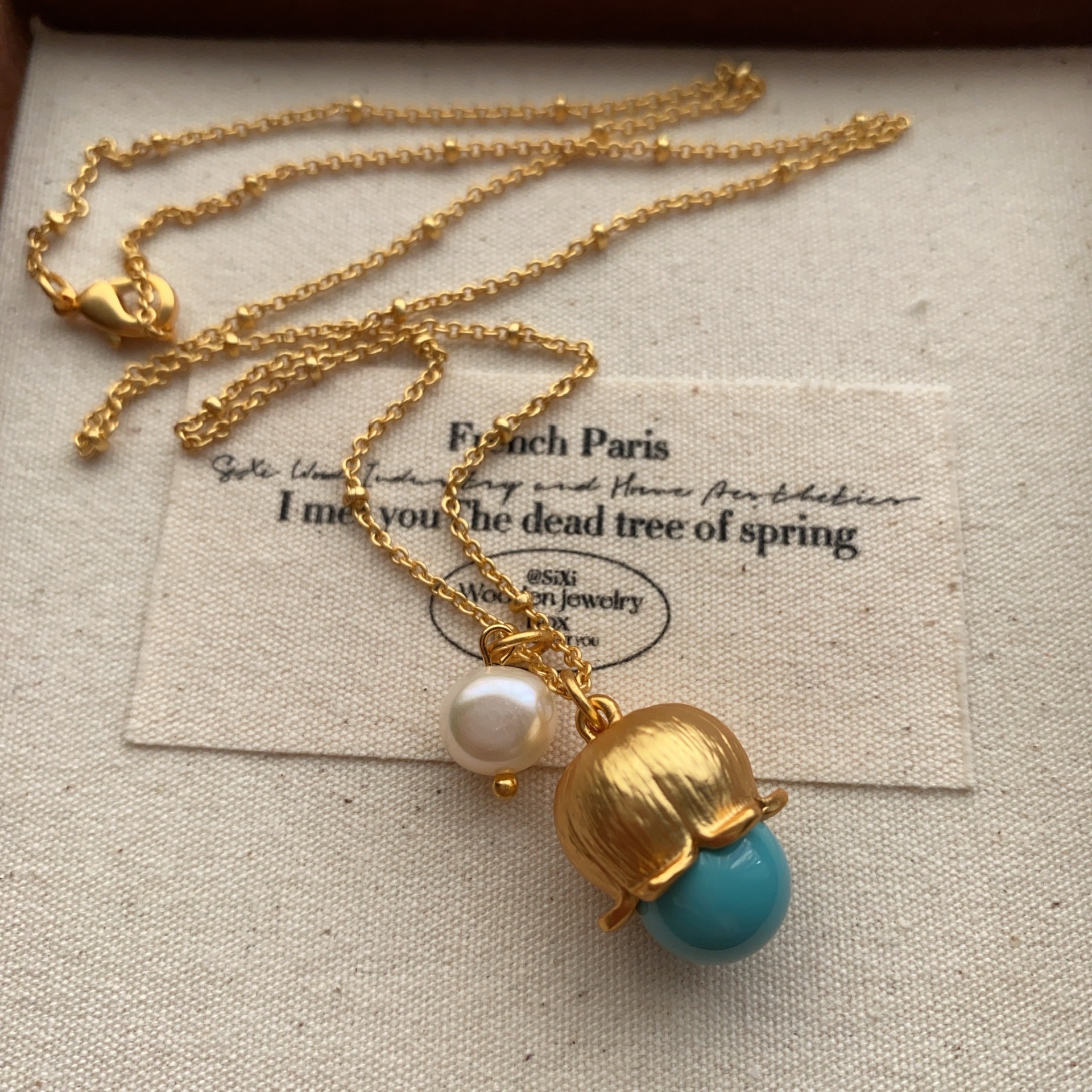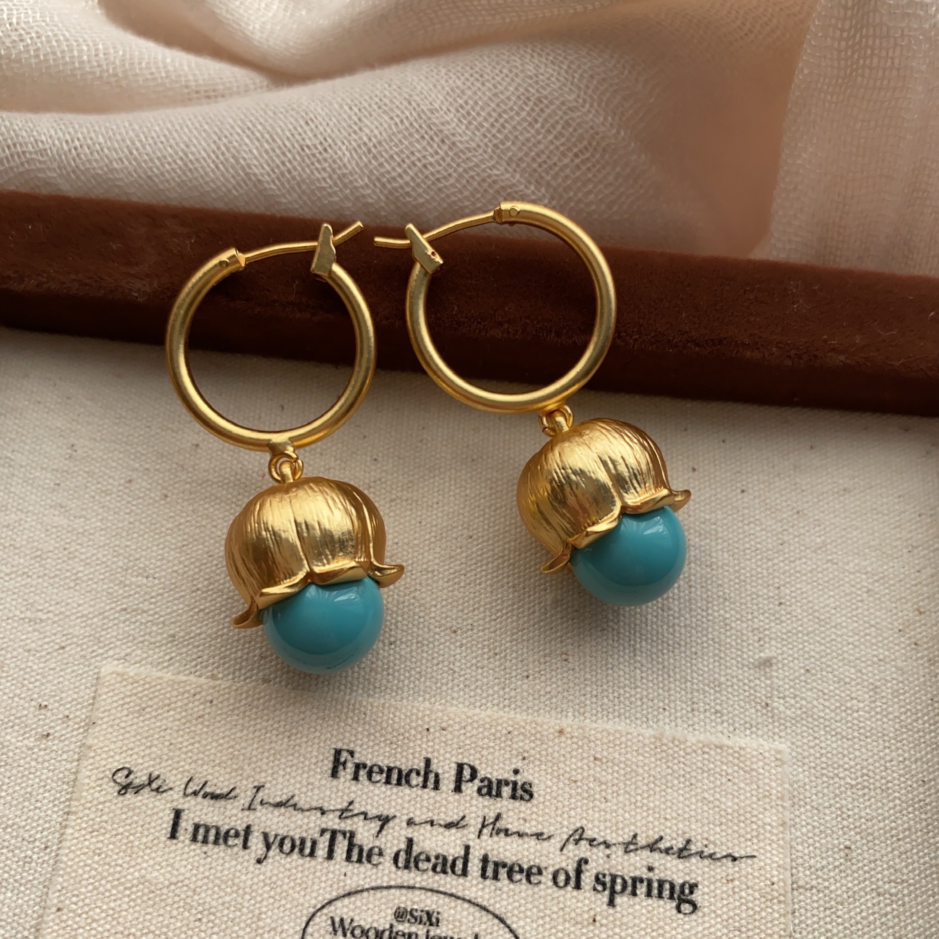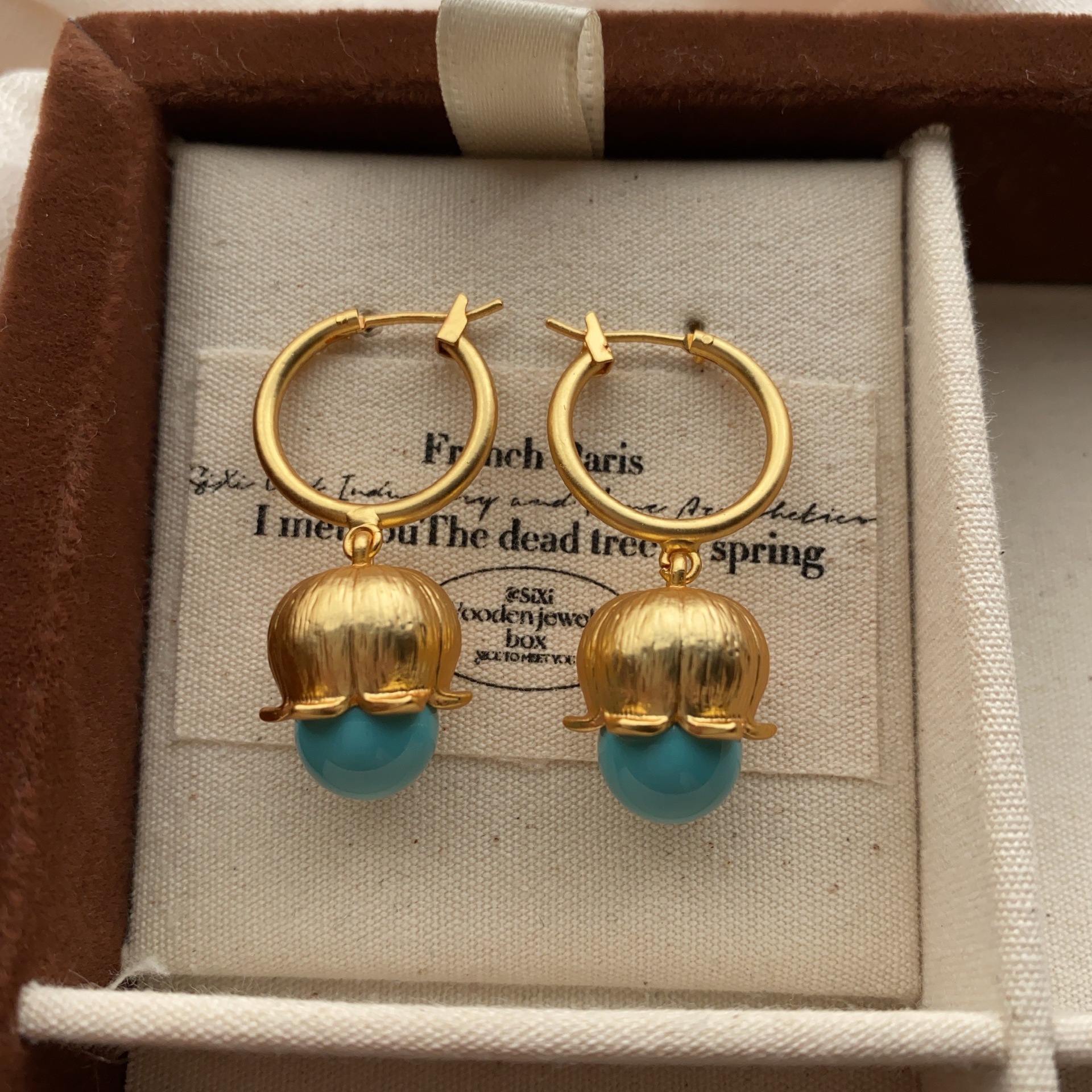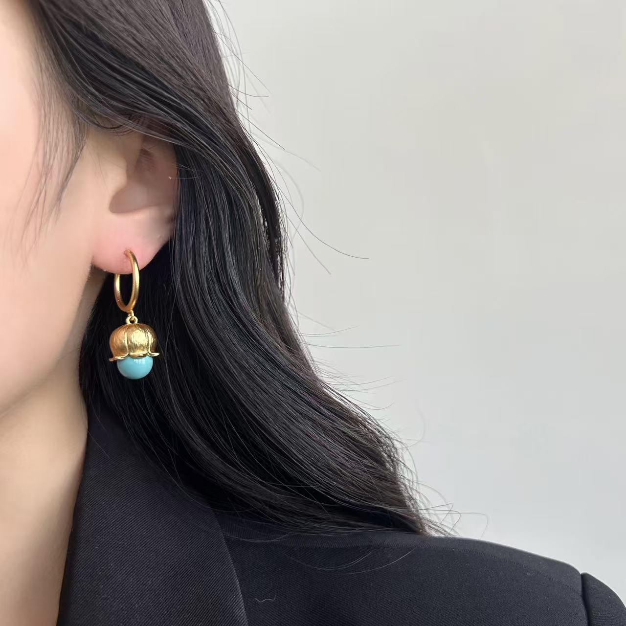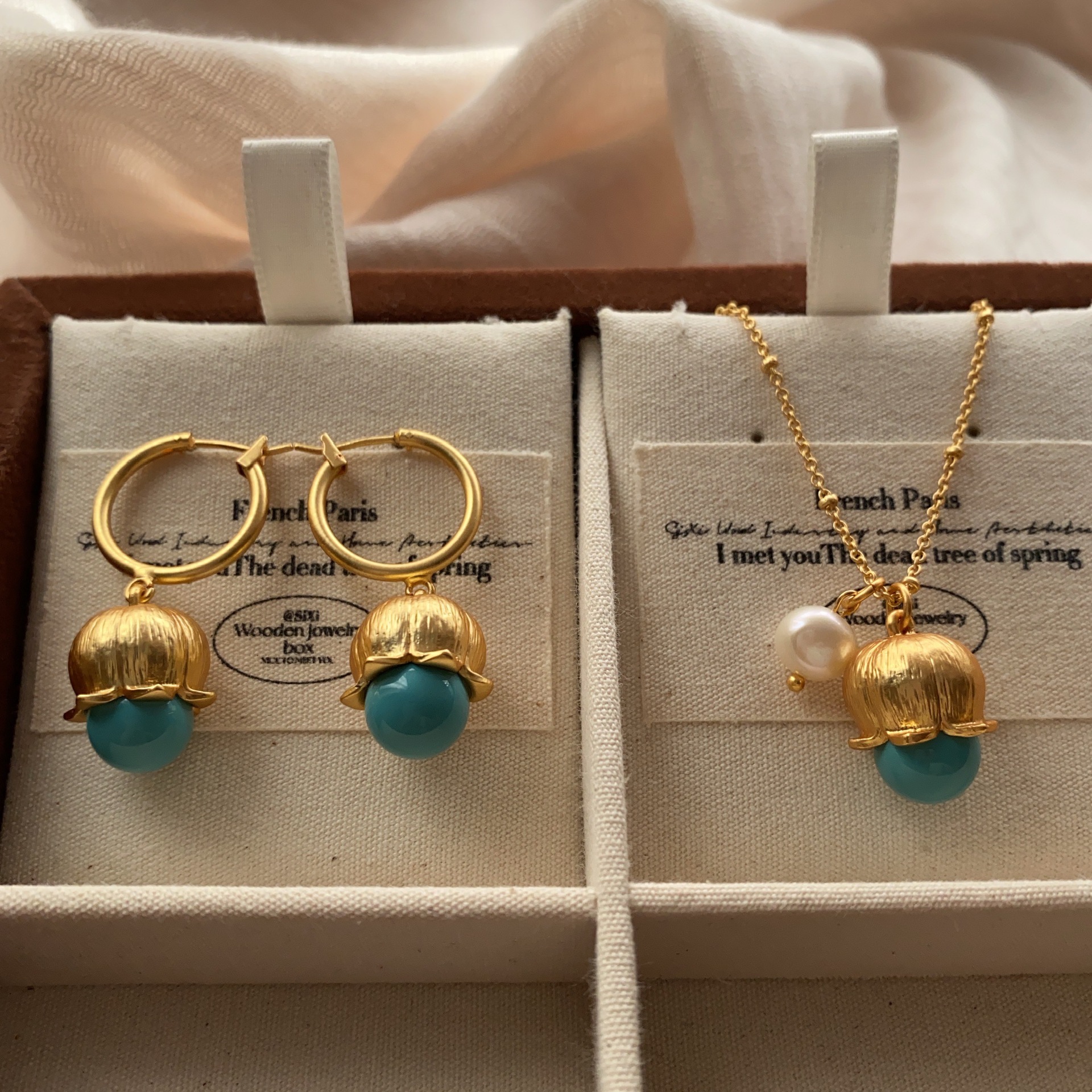 铃兰花水滴吊坠耳环项链绿松石复古洋气极简线条轻奢性感个性百搭