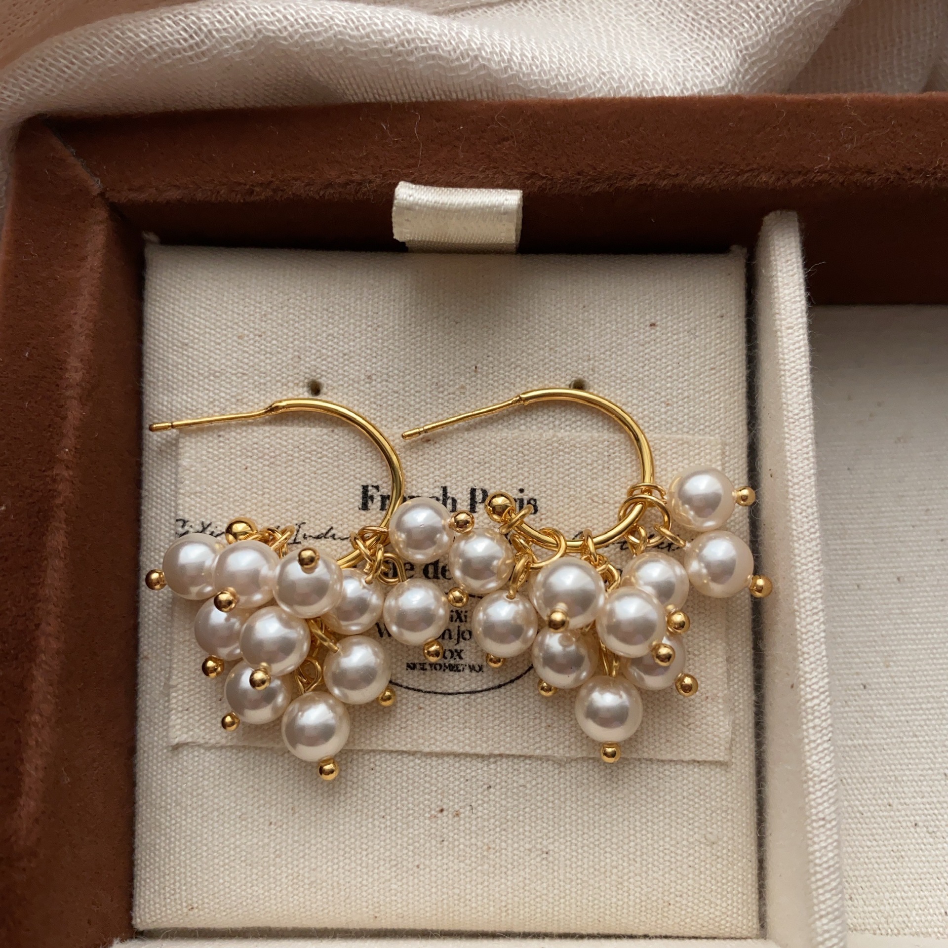珍珠流苏耳钉耳扣可拆卸个性耳圈简约时尚甜美精致通勤休闲女耳饰