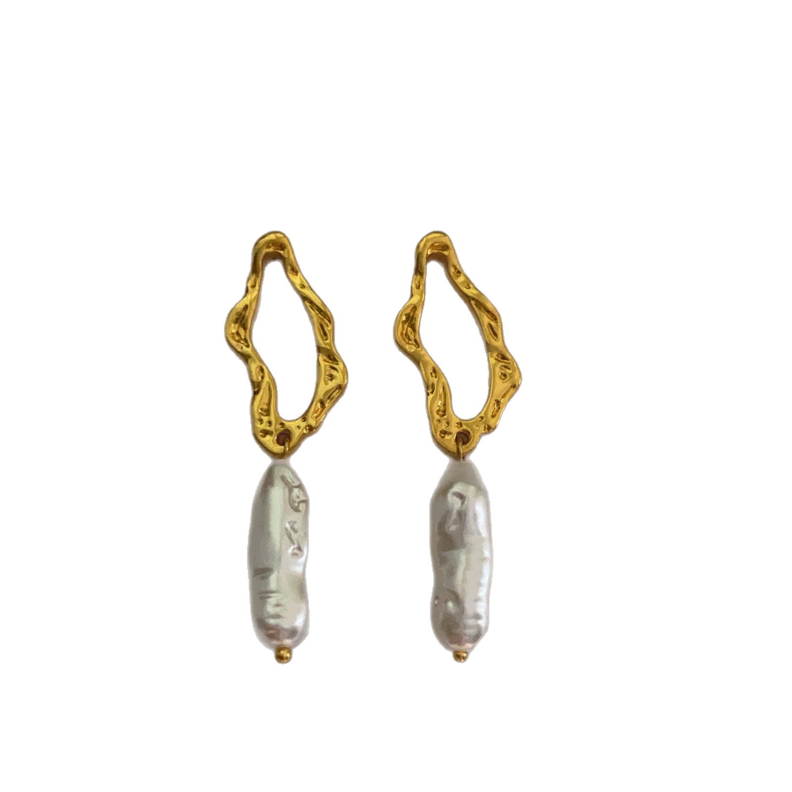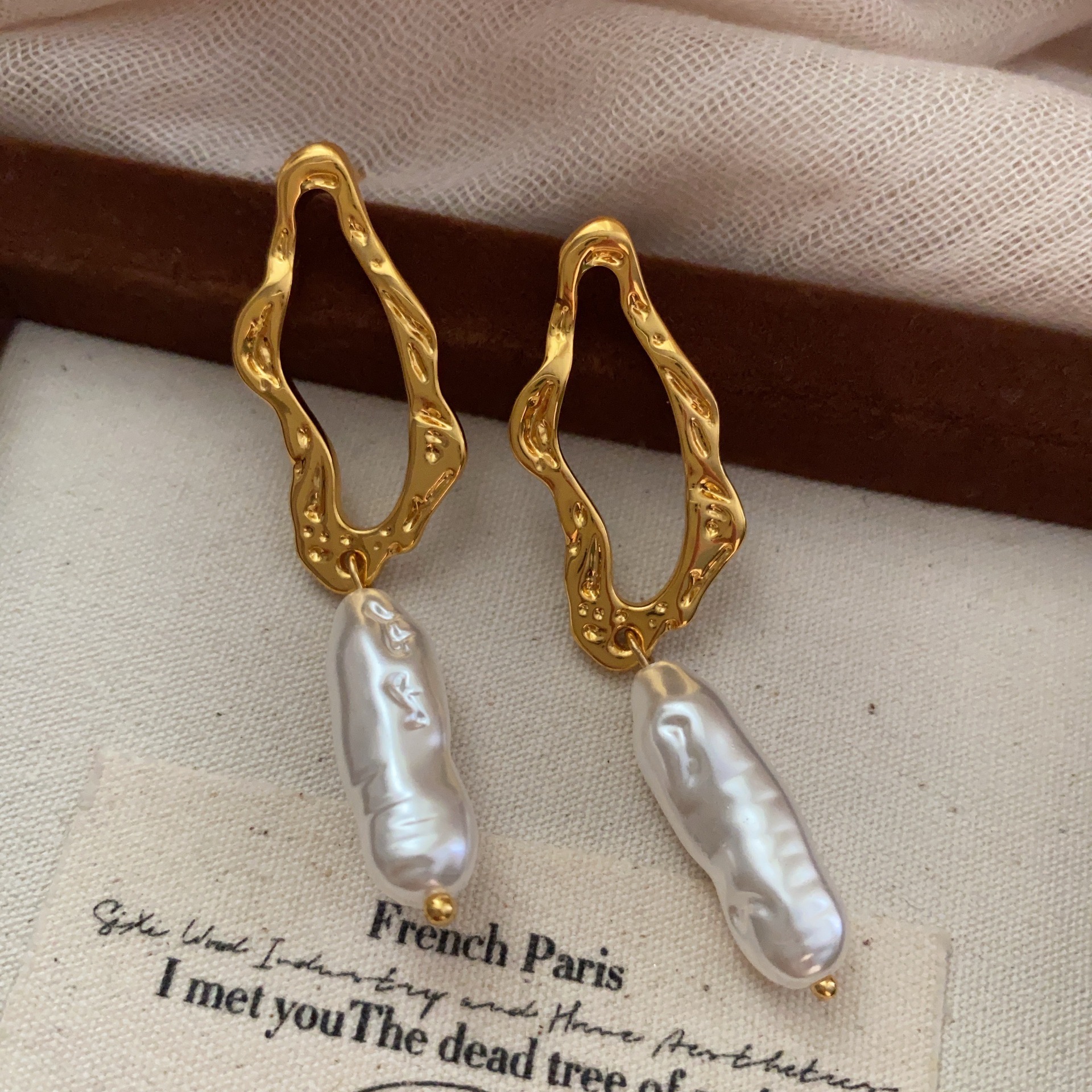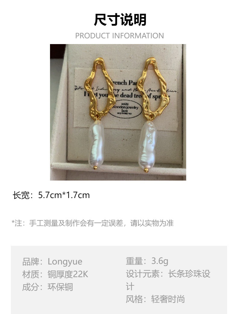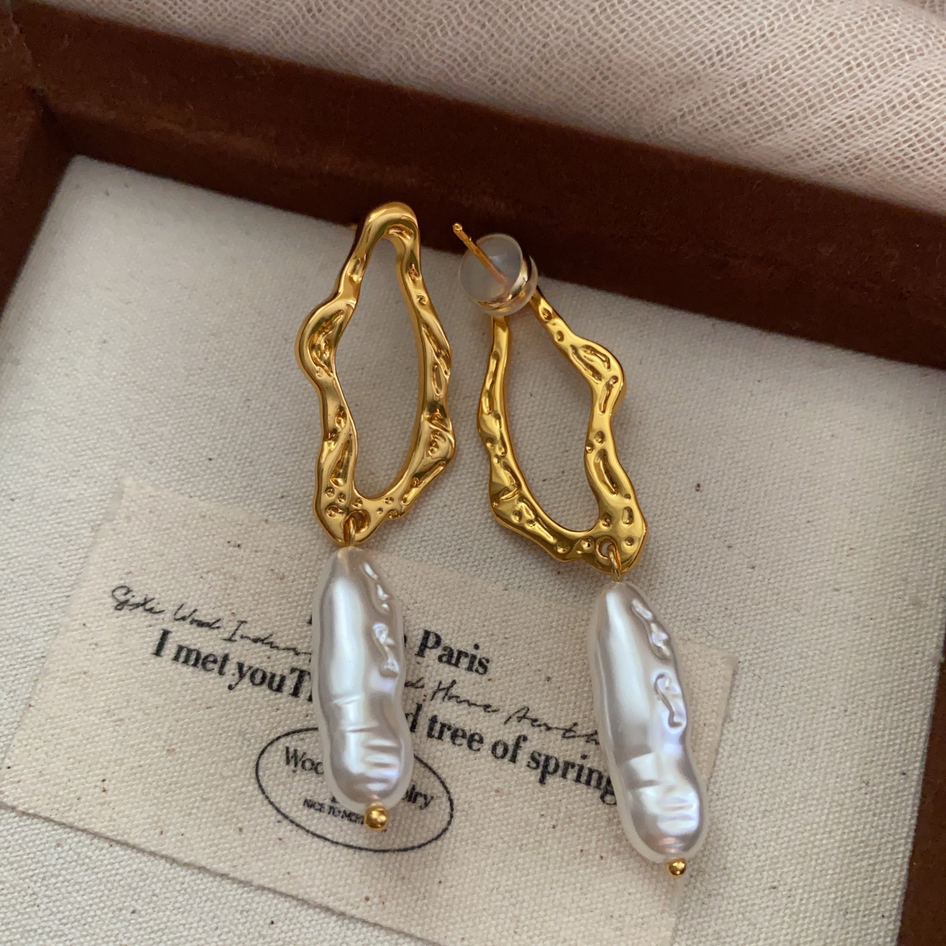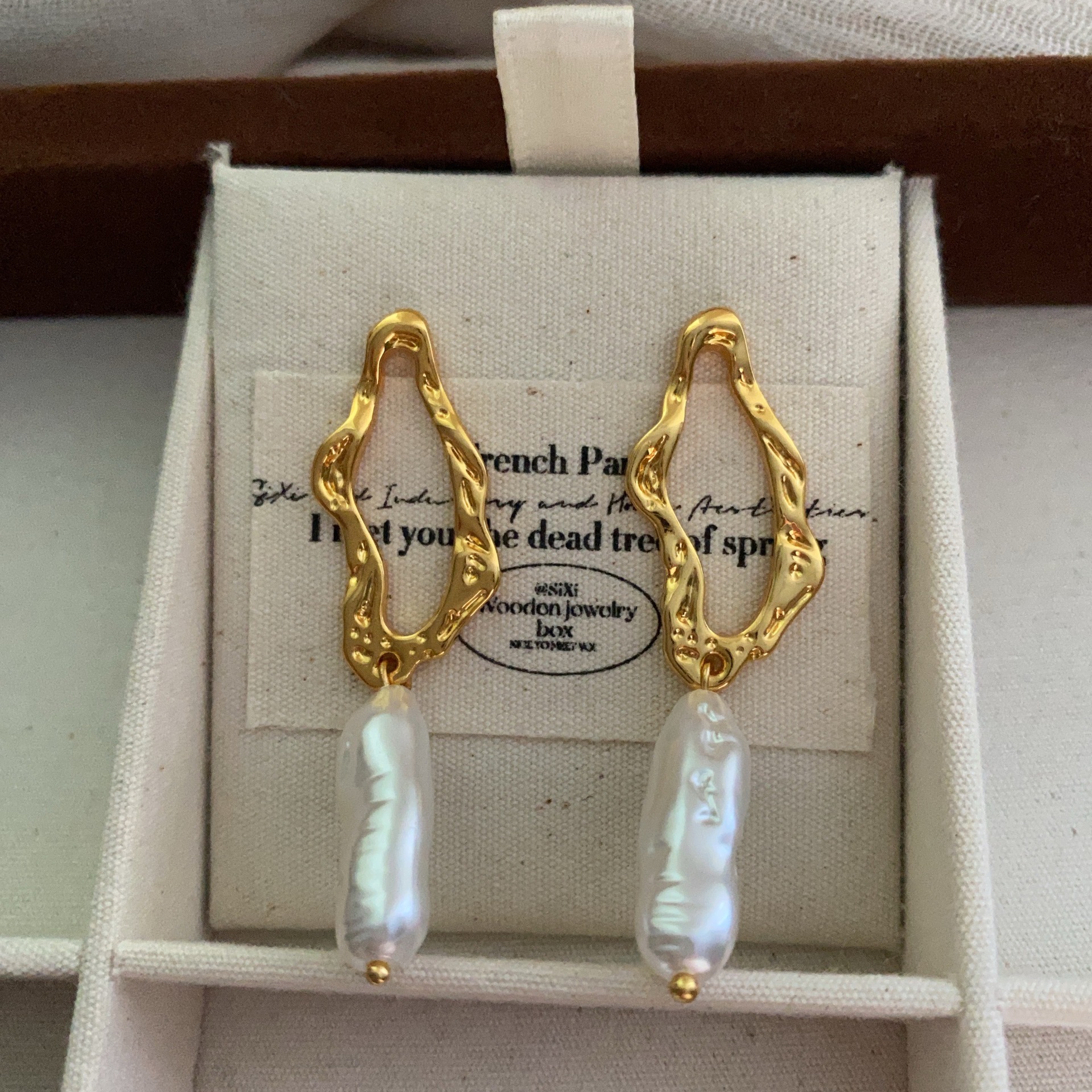 仿巴洛克小长条异形淡水珍珠耳环耳坠女小众独特复古奢华精美时尚