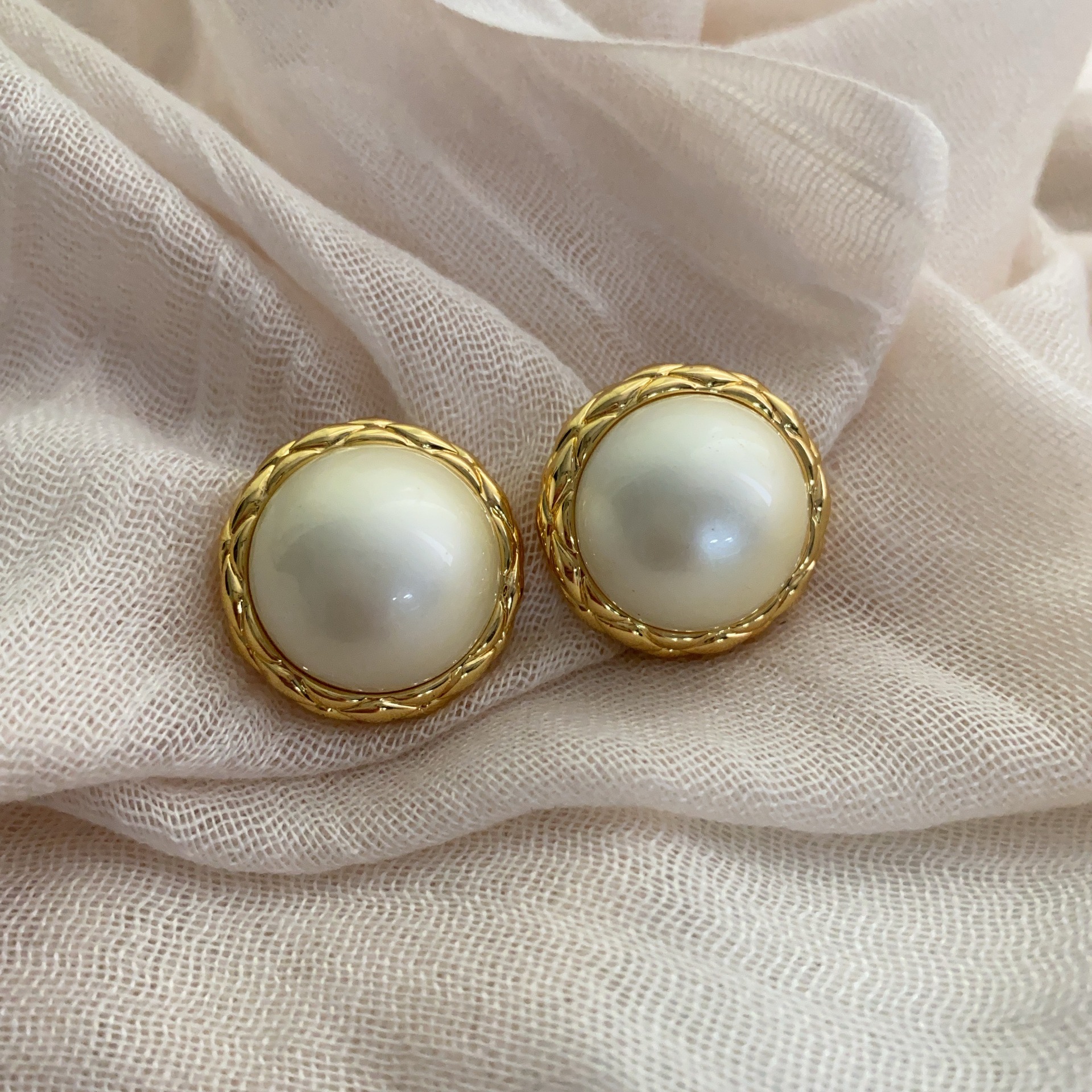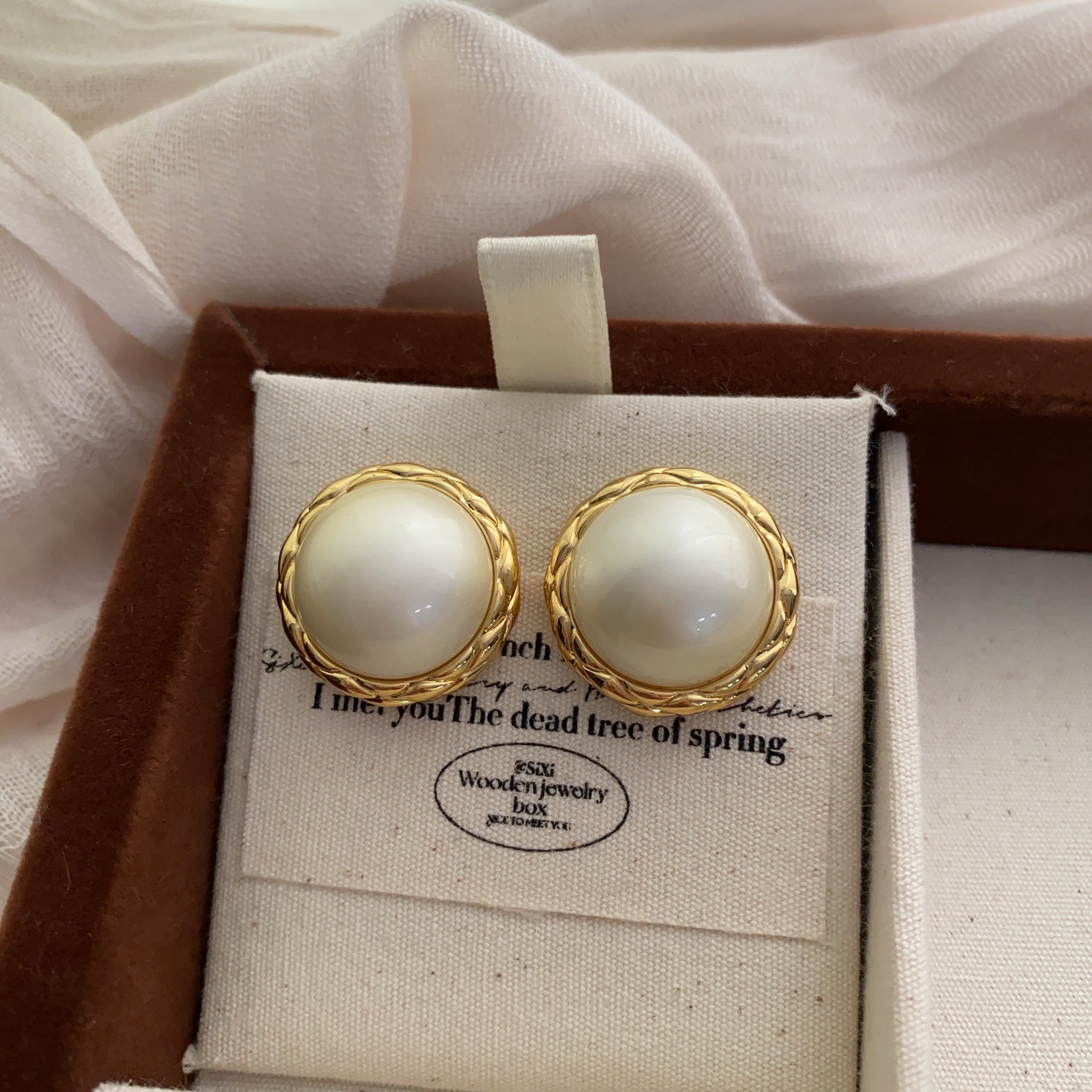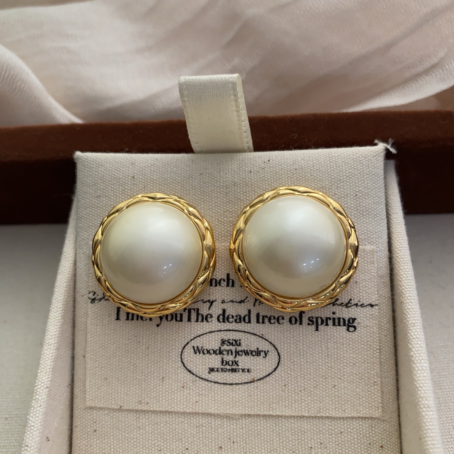 2025新款法式复古金属大珍珠耳环女小众设计感高级小香风优雅耳坠