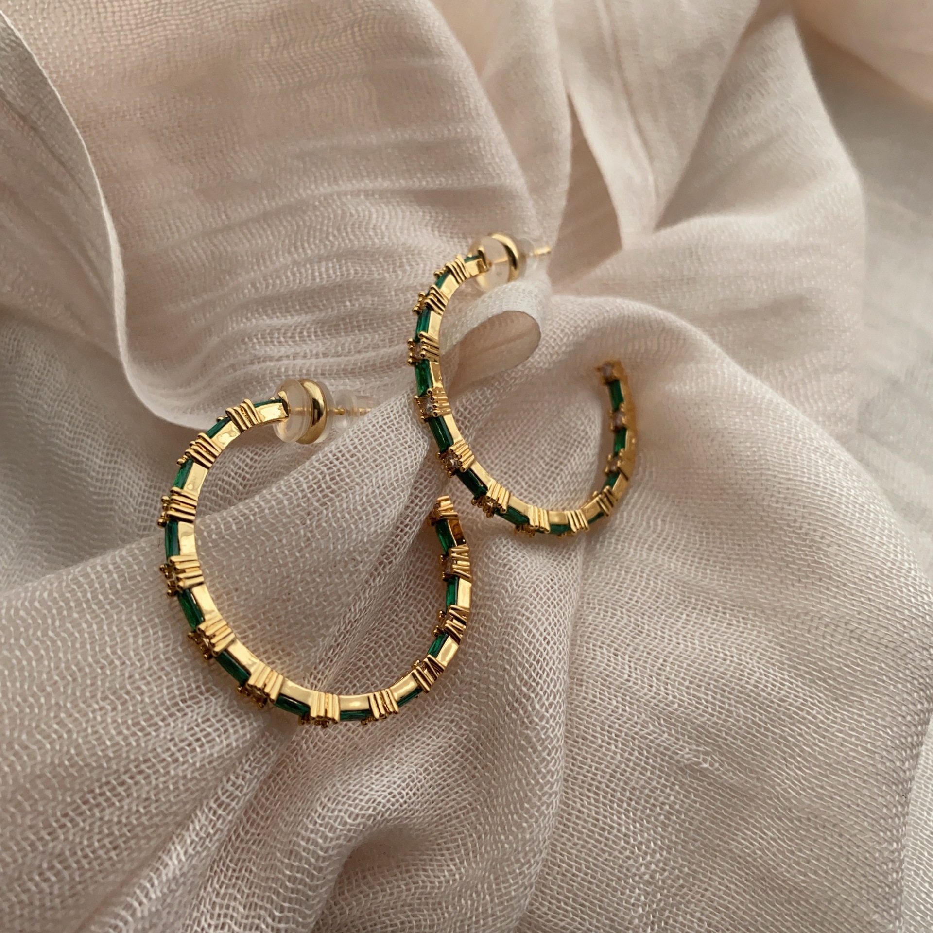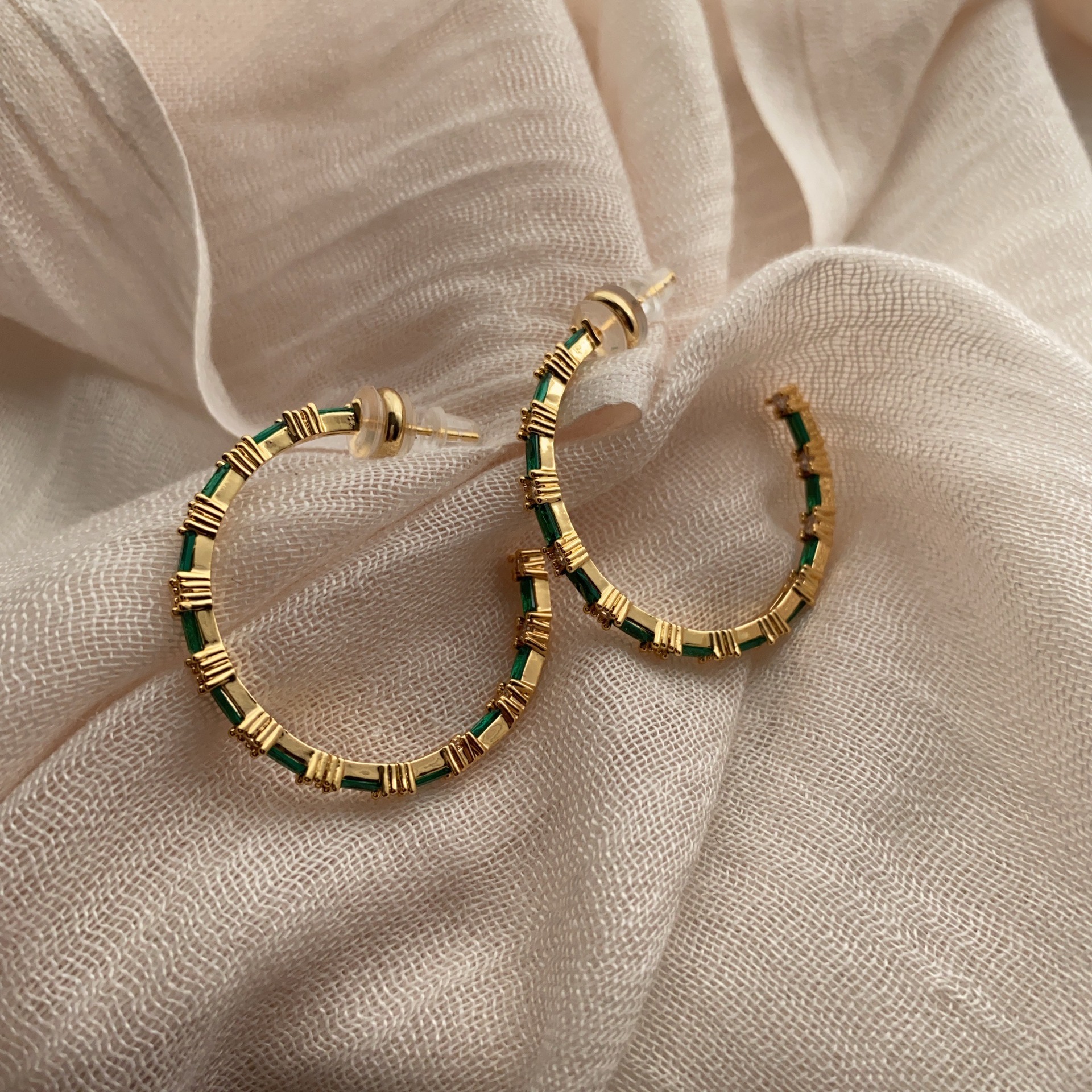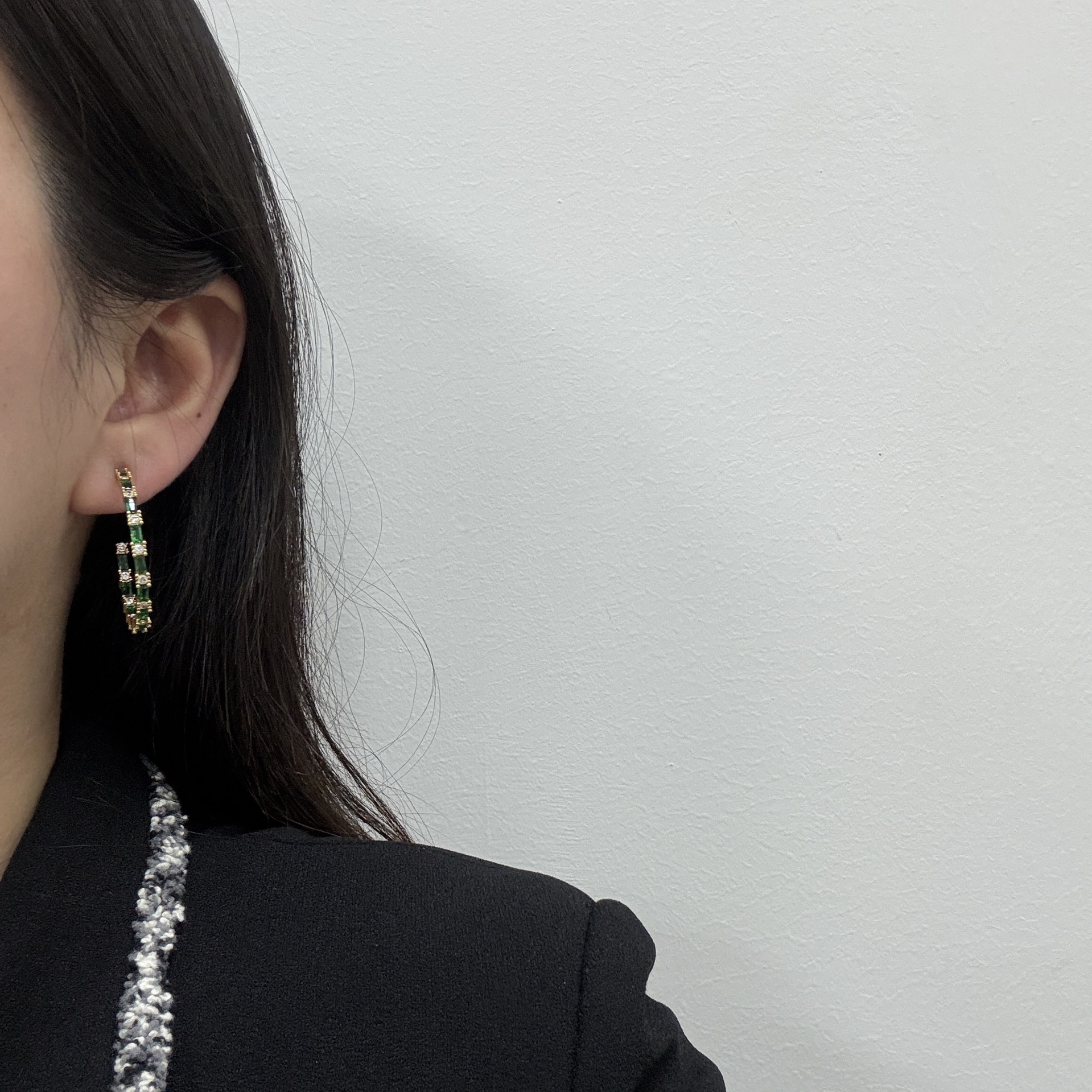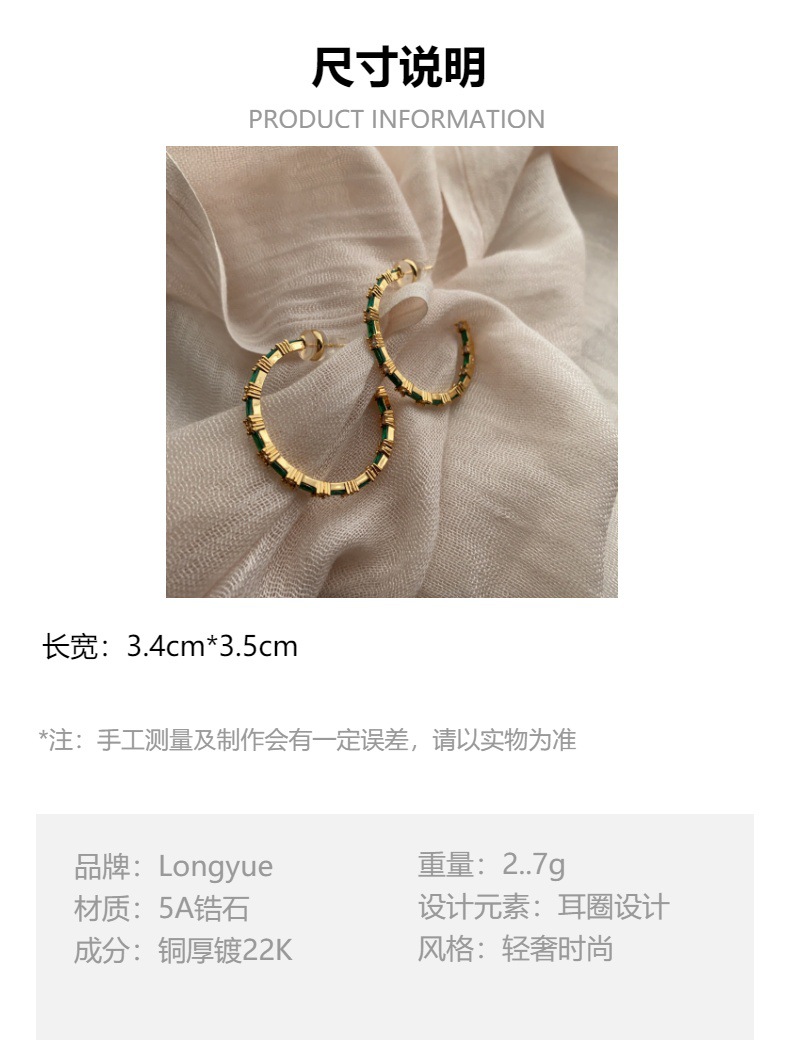 欧美夸张大气绿色5A锆石耳圈小众设计感时尚百搭气质通勤个性耳环