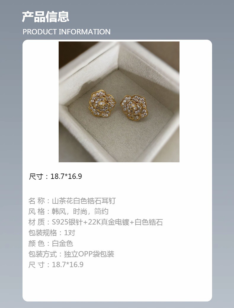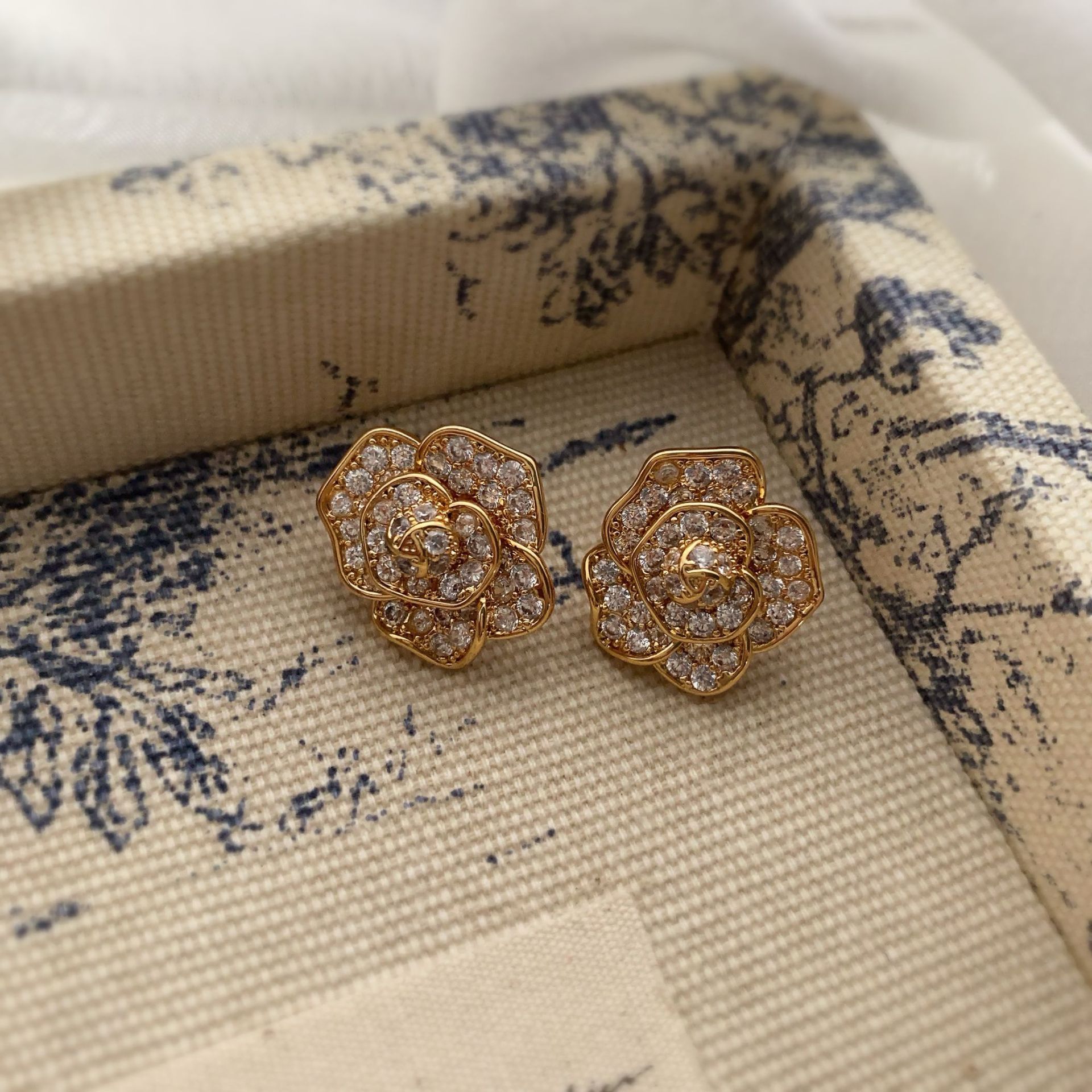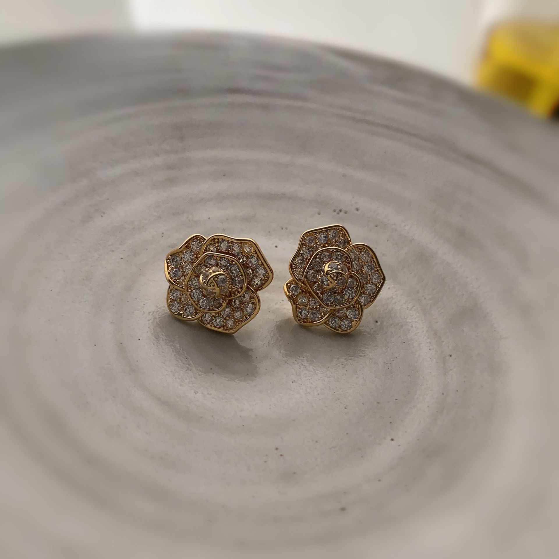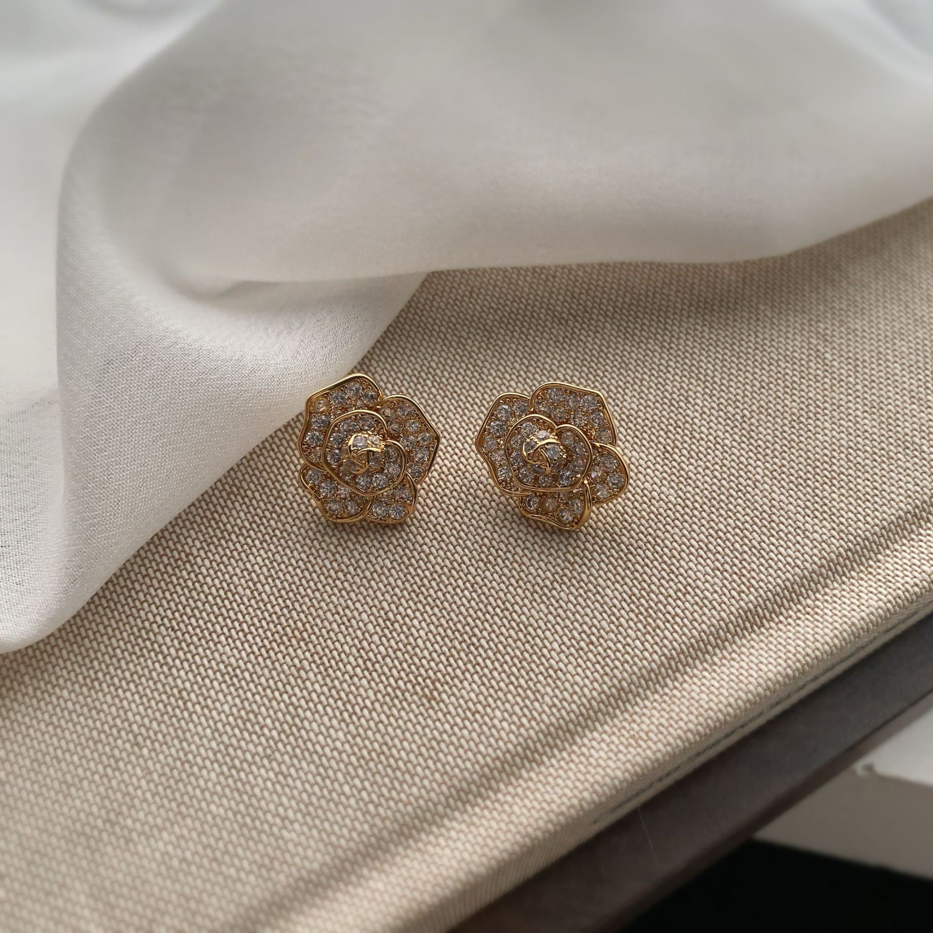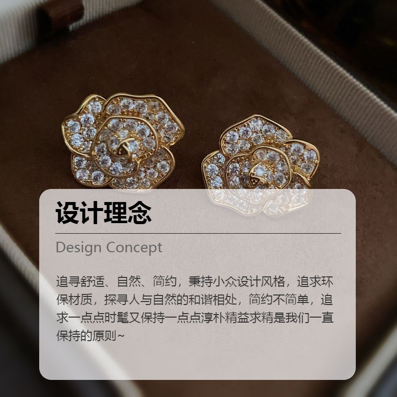 高级感超闪轻奢设计气质新款时尚百搭耳环小众甜美山茶花精致耳饰