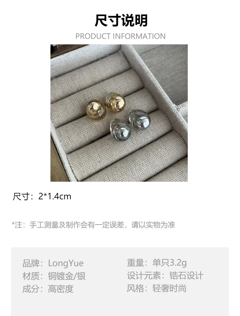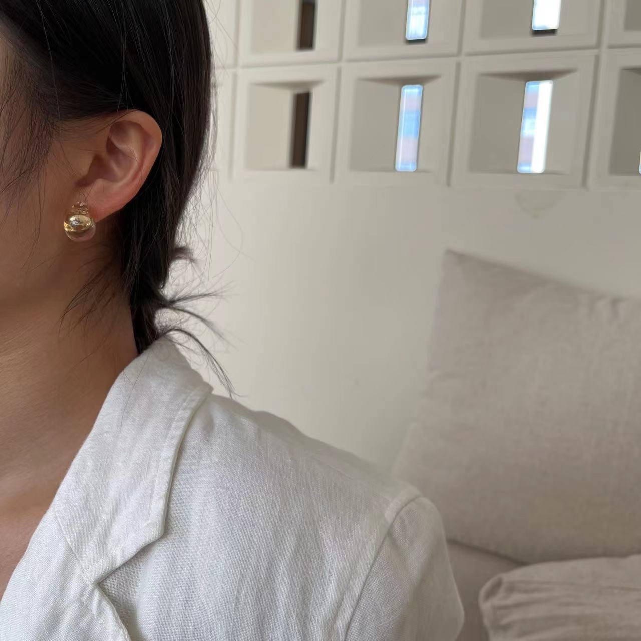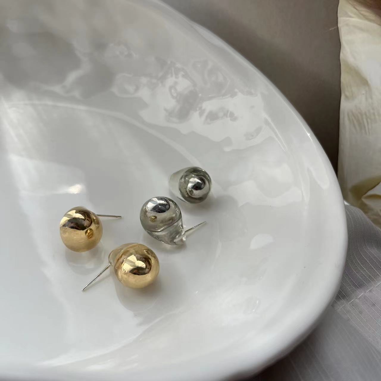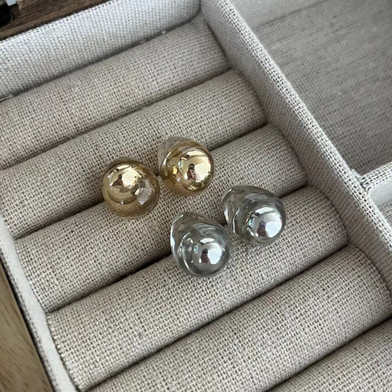 金属圆球耳环2025新款爆款高级感耳钉轻奢小众设计法式气质耳饰女