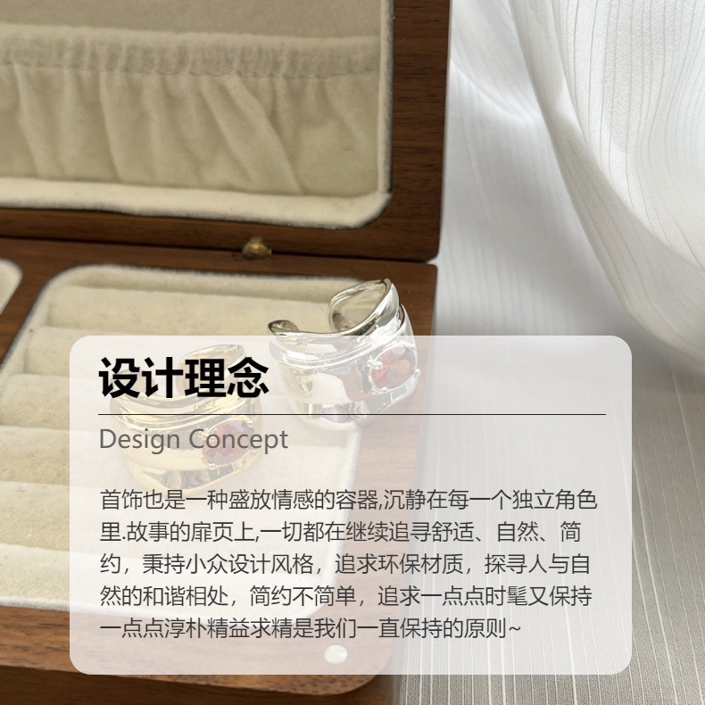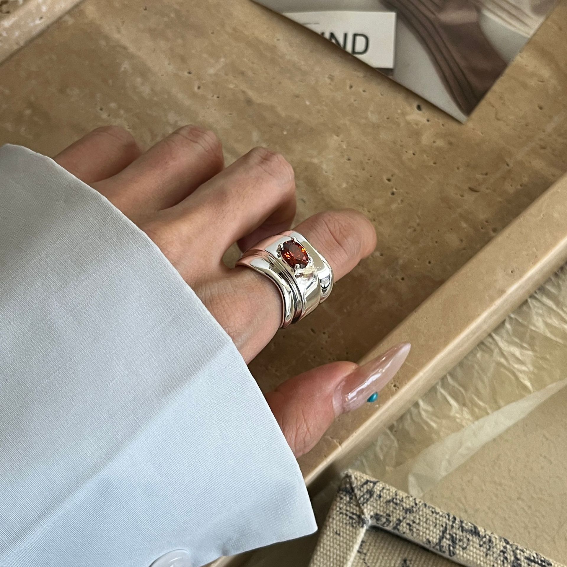 复古冷淡风气质款红色宝石食指戒指环欧美跨境小众几何简约戒指女