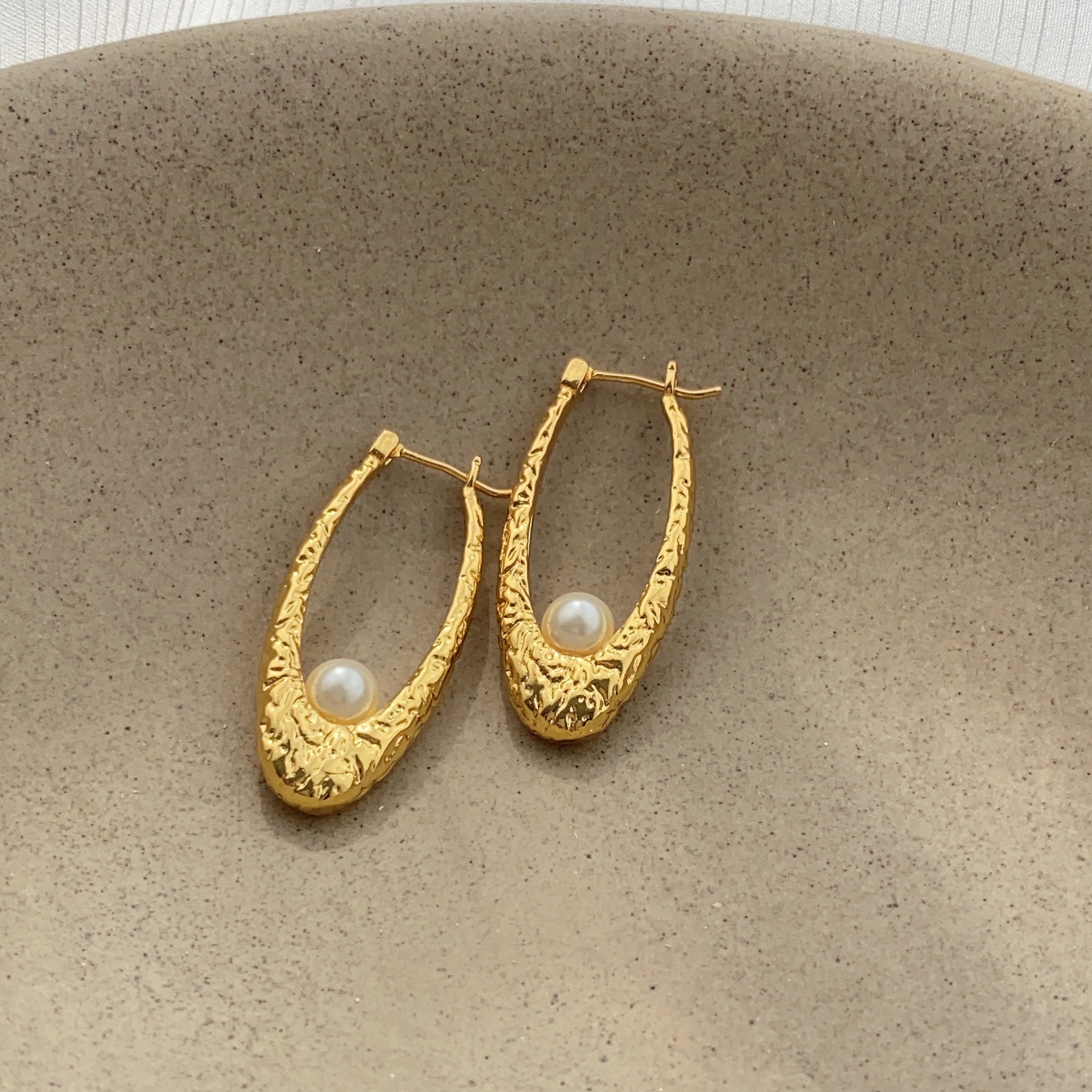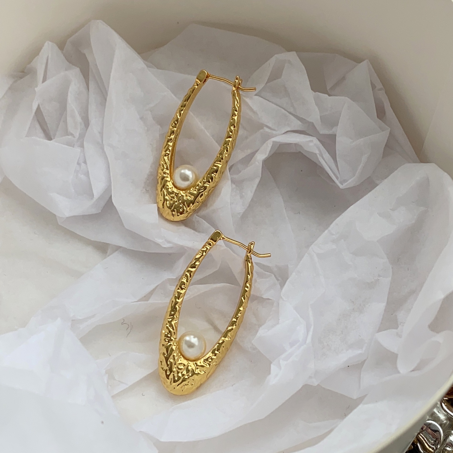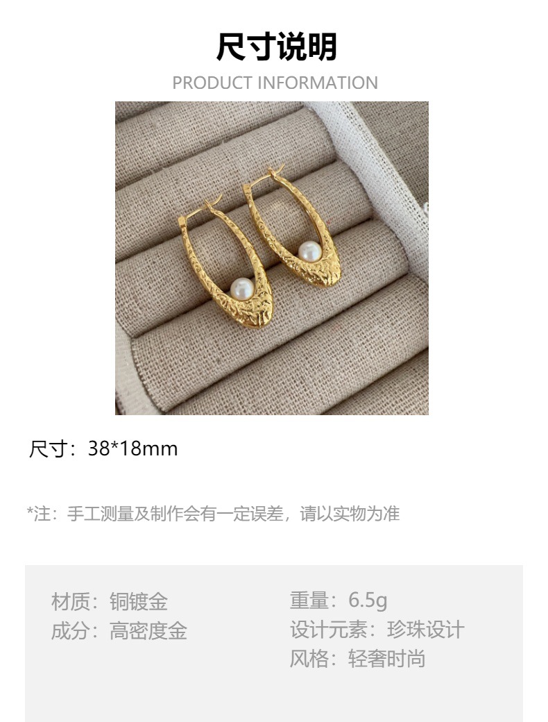 法式复古时尚简约轻奢感气质款几何造型珍珠耳环耳饰品金色耳坠女