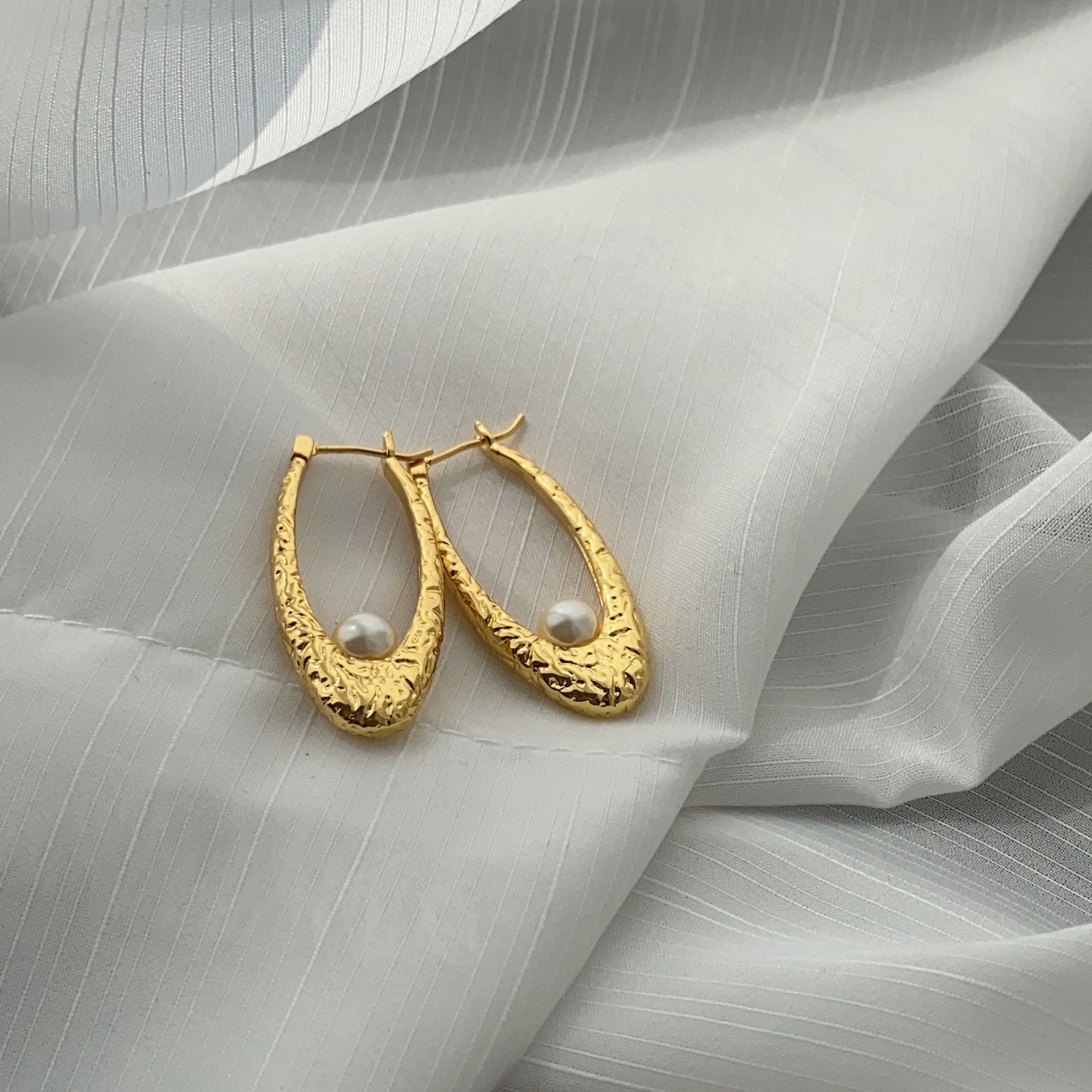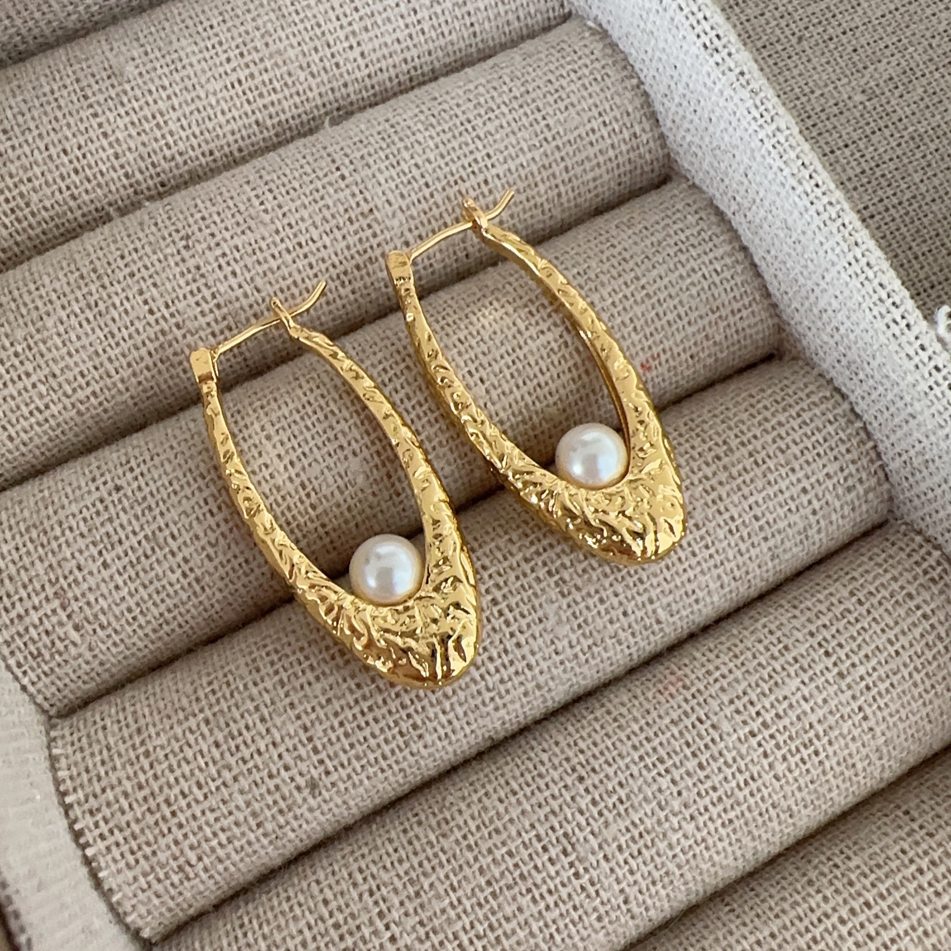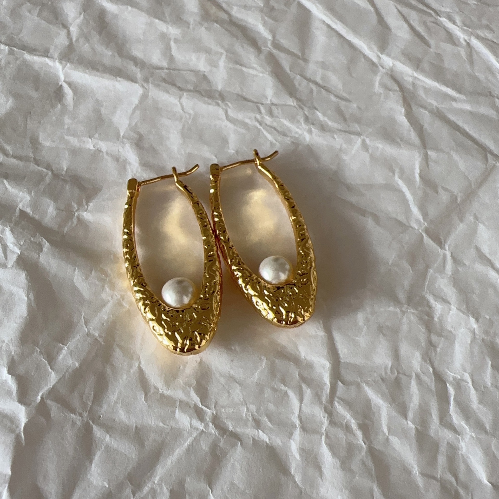 法式复古时尚简约轻奢感气质款几何造型珍珠耳环耳饰品金色耳坠女