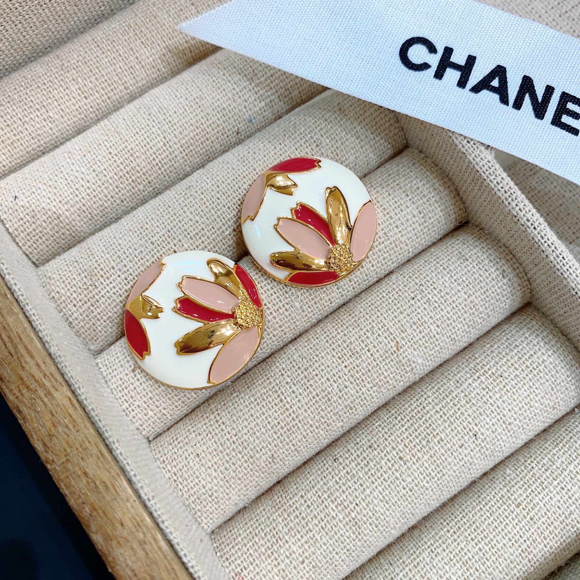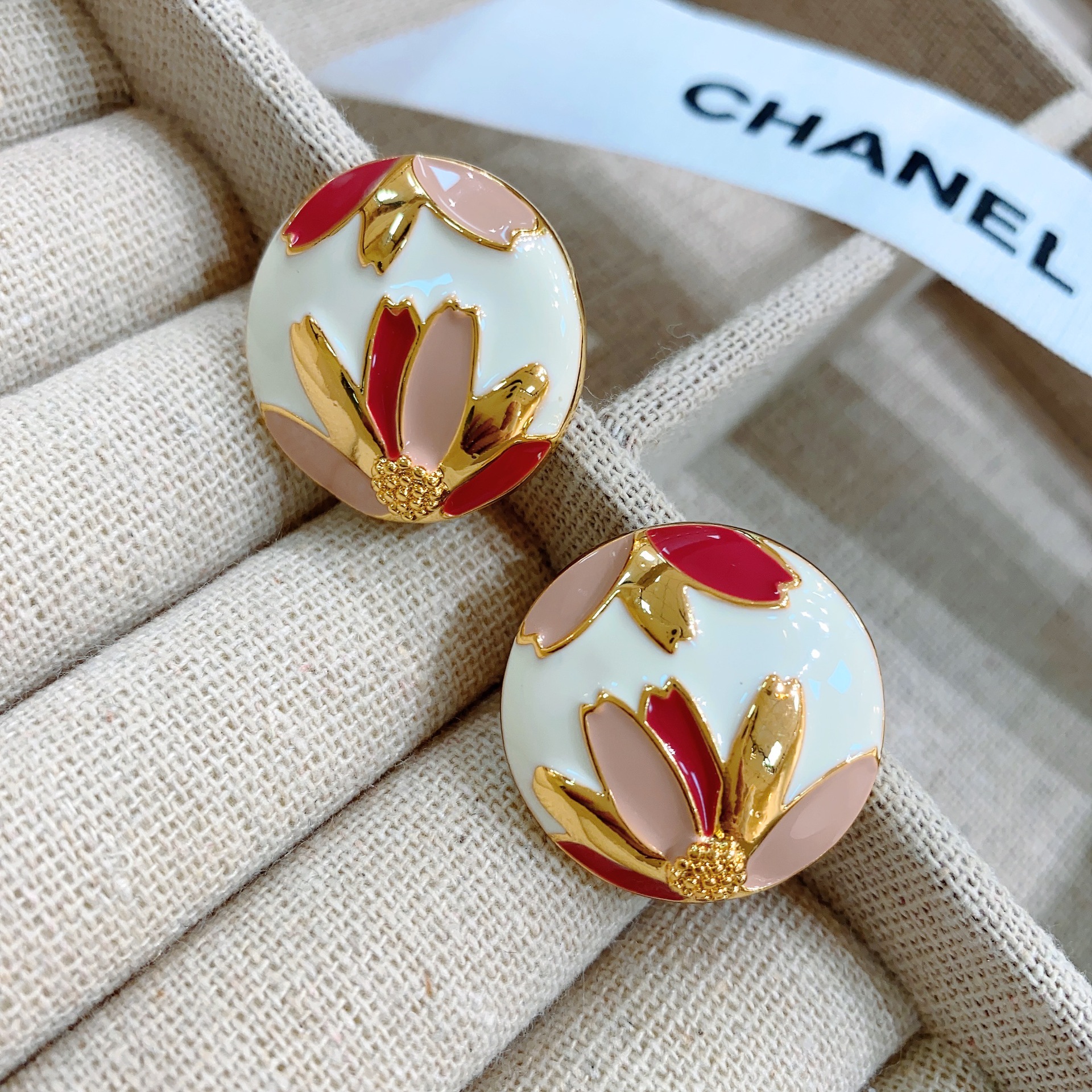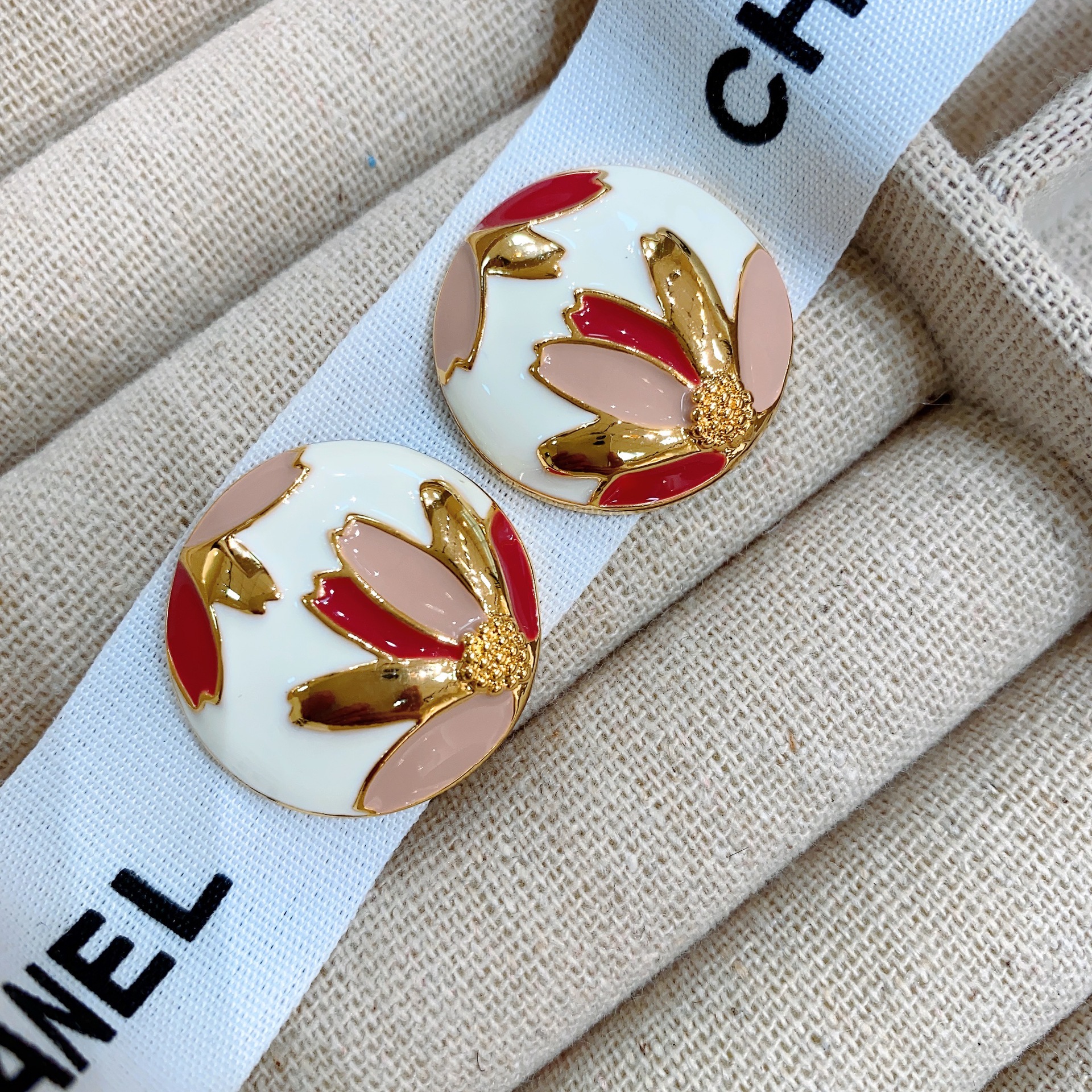 欧美法式复古耳环合金滴油耳钉女圆形时尚花卉图案韩版耳饰冷淡风