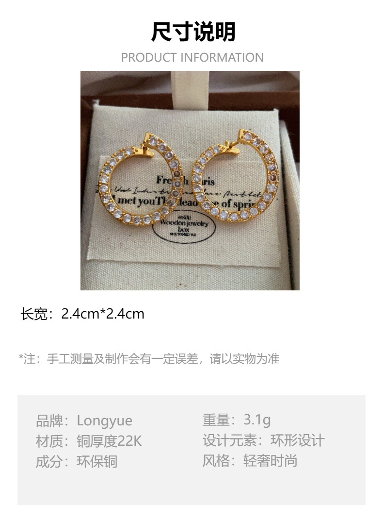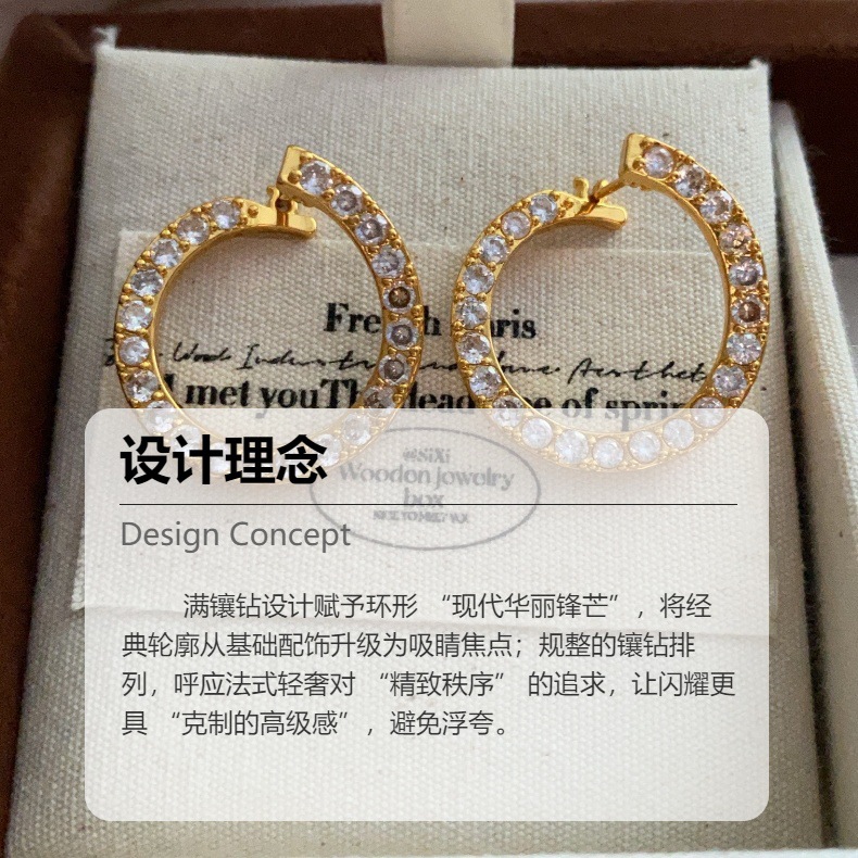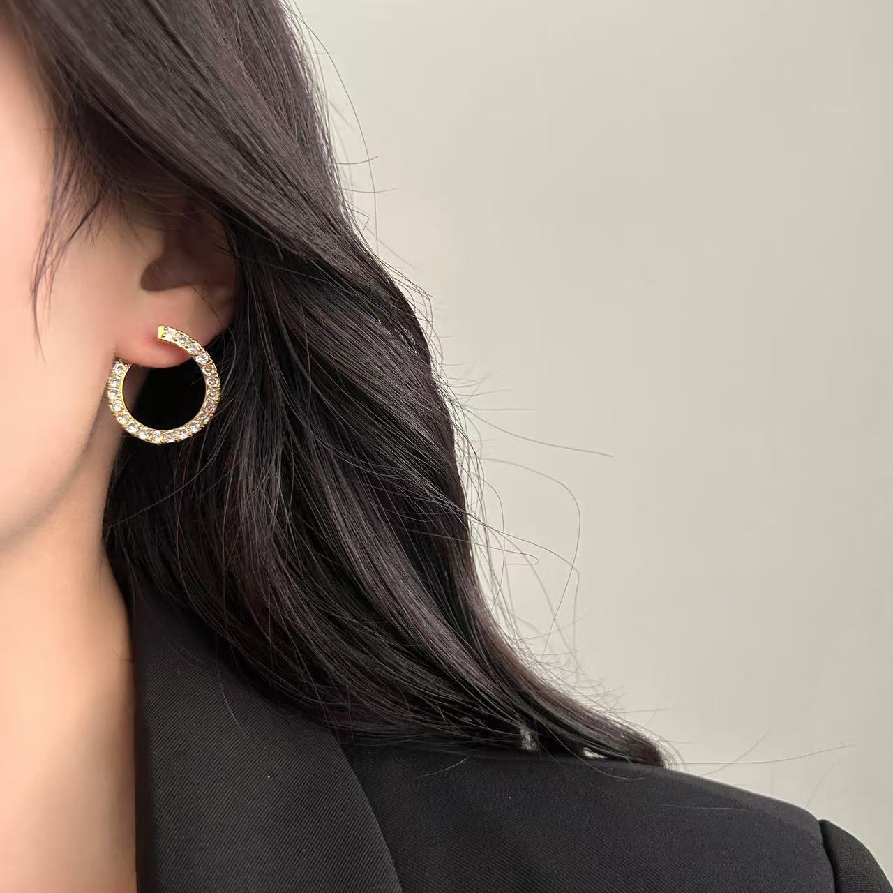 环形镶锆石耳钉耳扣新款高级感简约个性时尚甜美精致通勤休闲耳饰