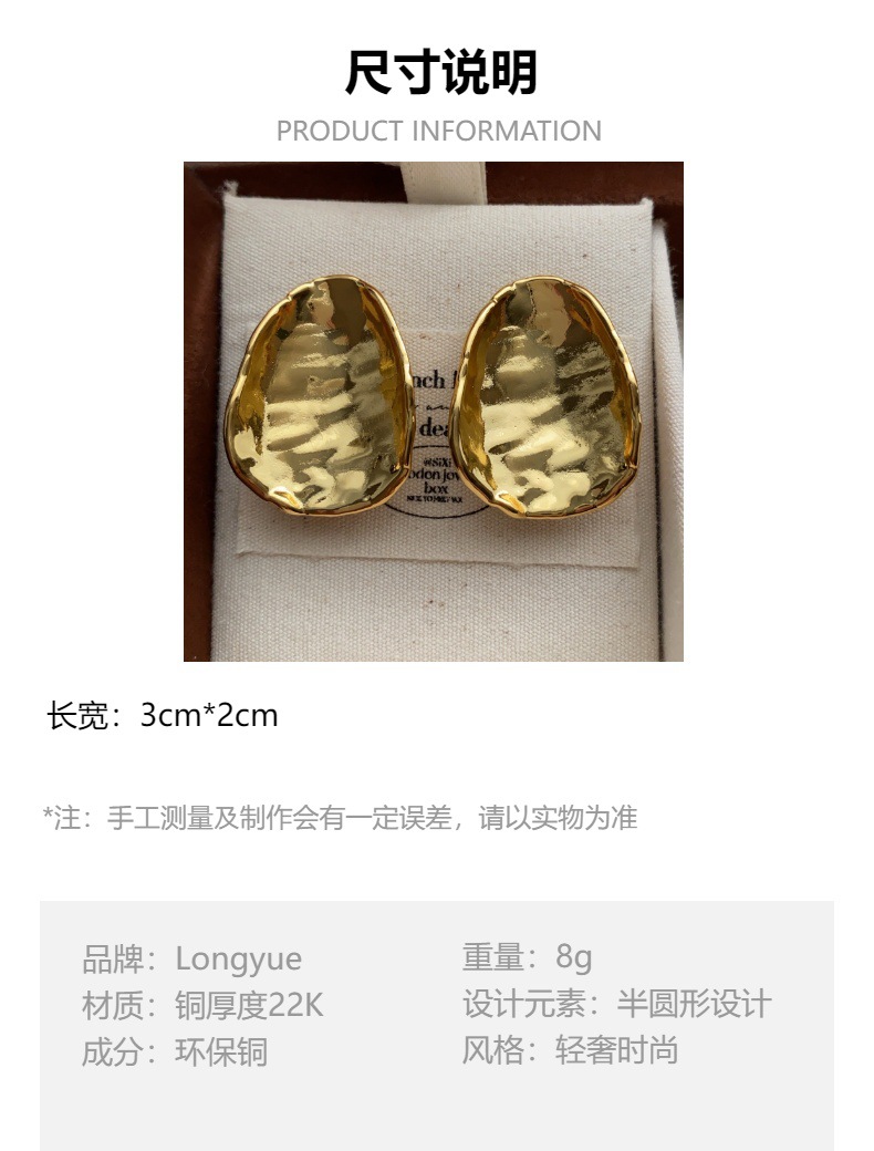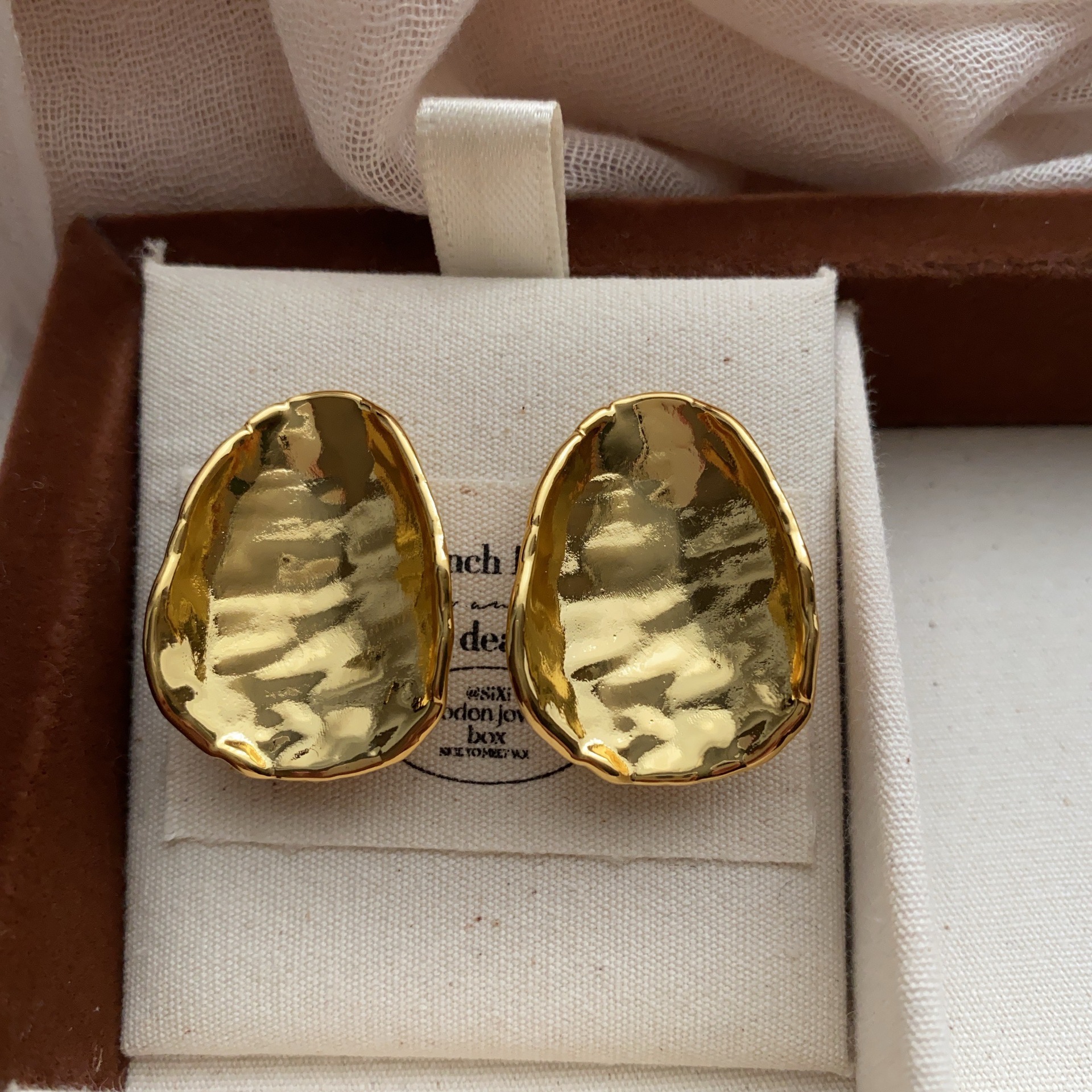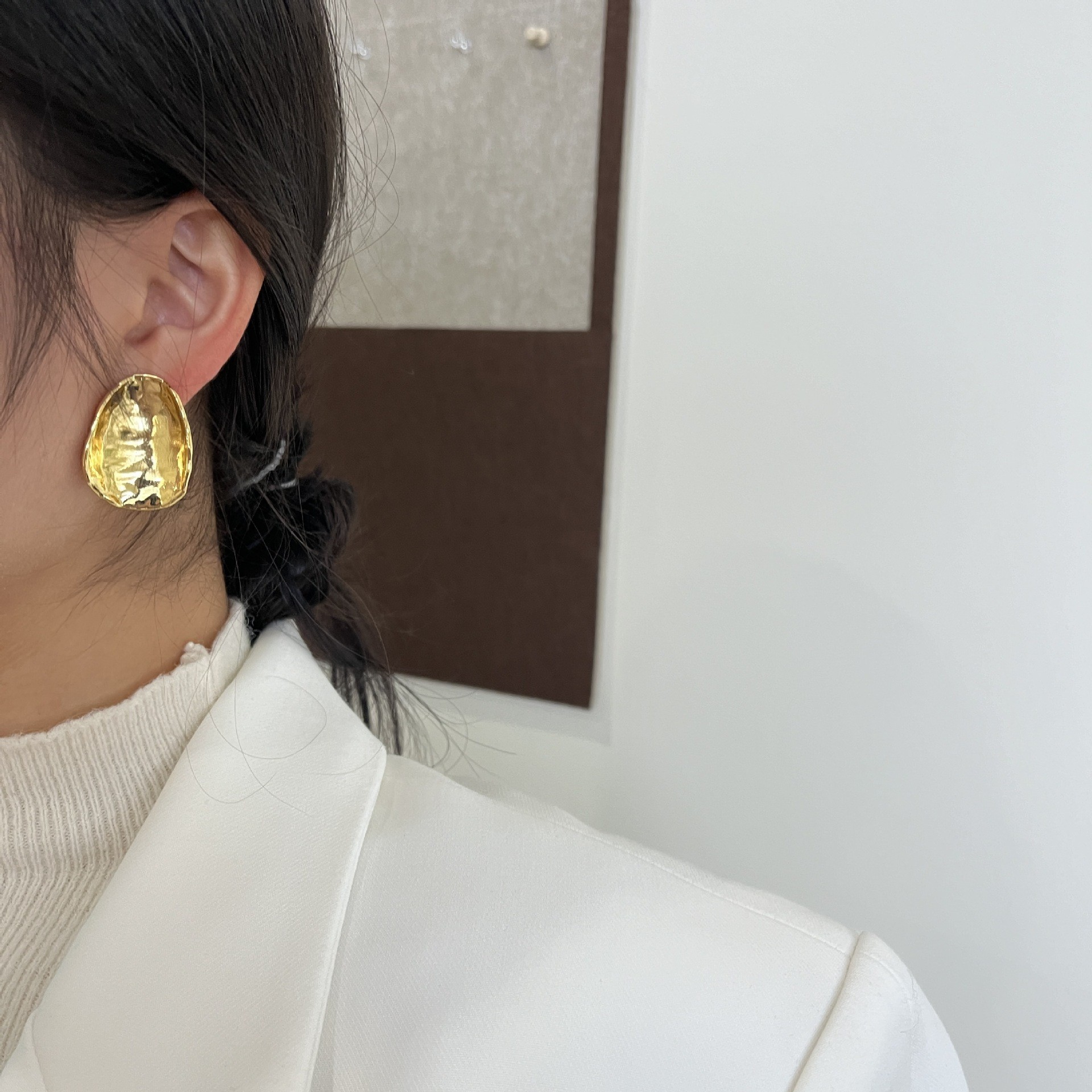 简约不规则肌理圆片耳环耳钉小众设计冷淡风气质高级复古褶皱耳饰