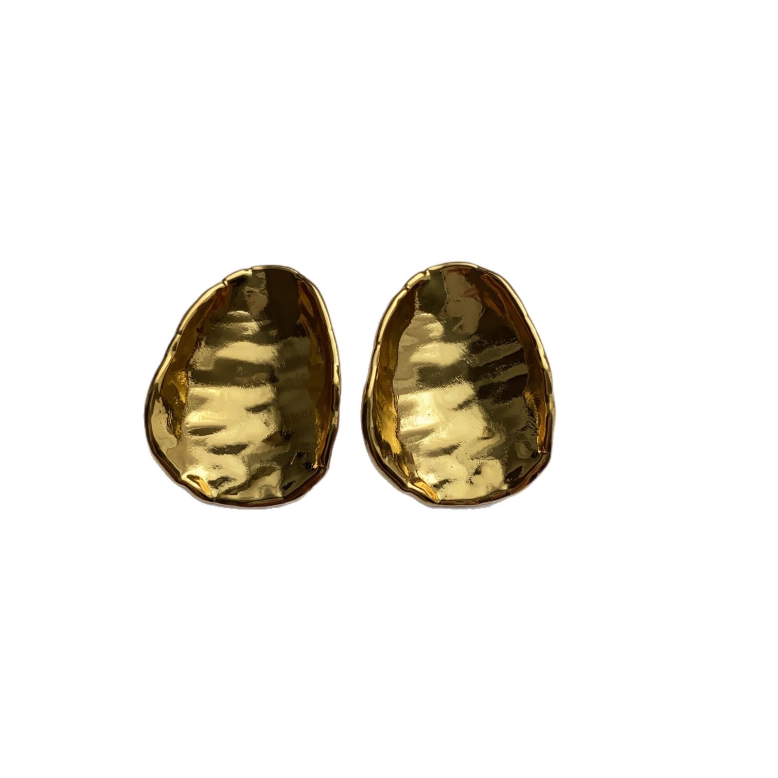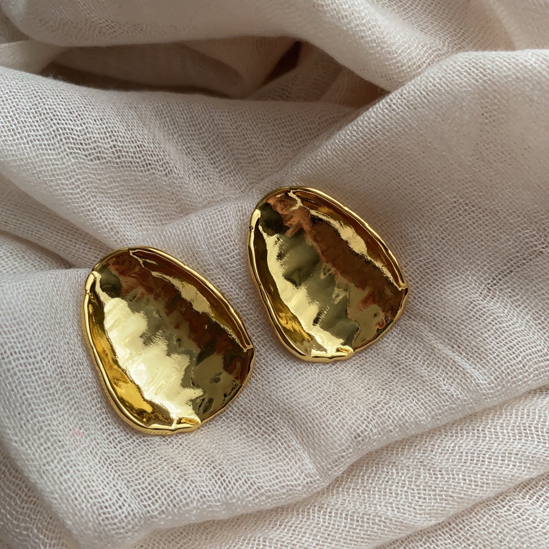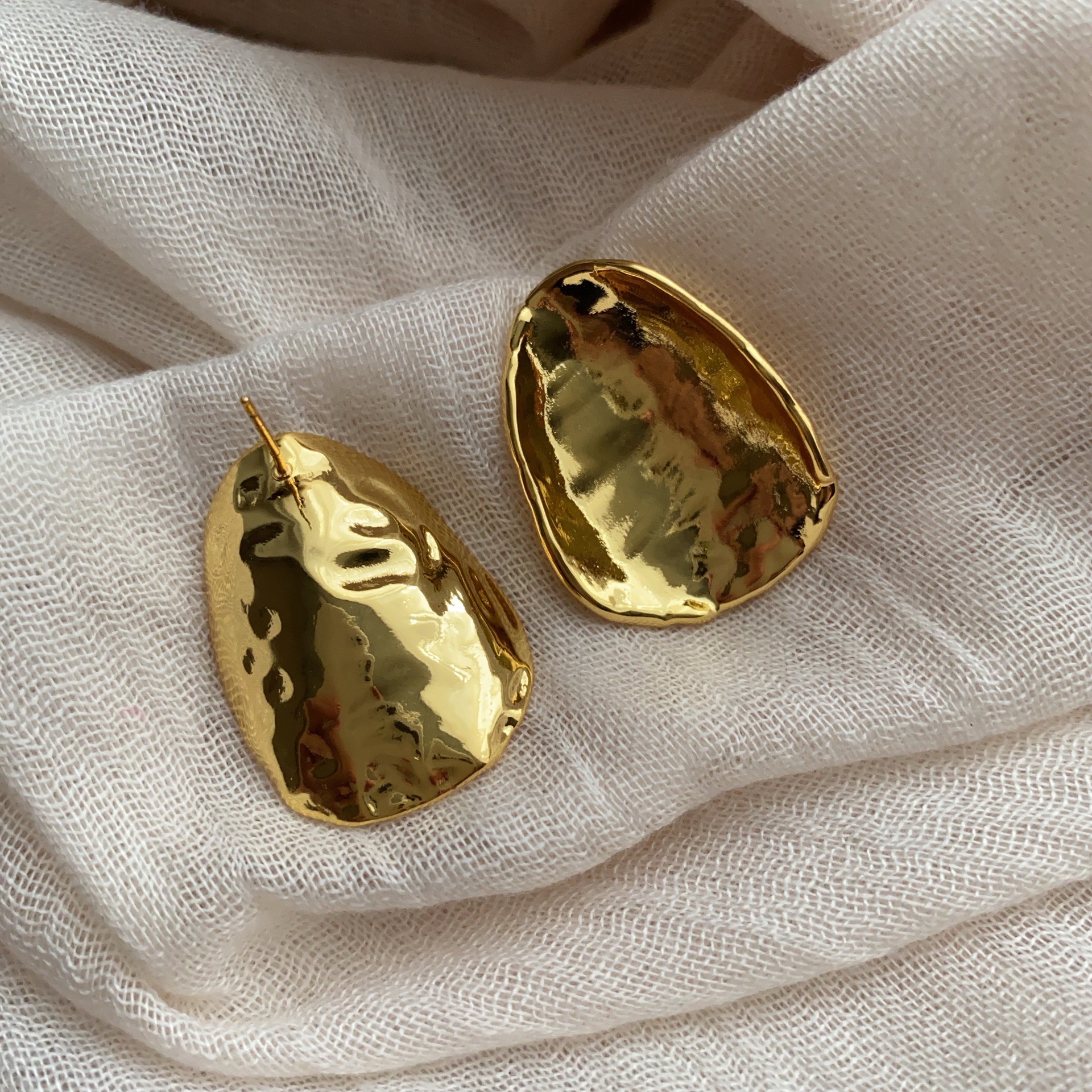 简约不规则肌理圆片耳环耳钉小众设计冷淡风气质高级复古褶皱耳饰