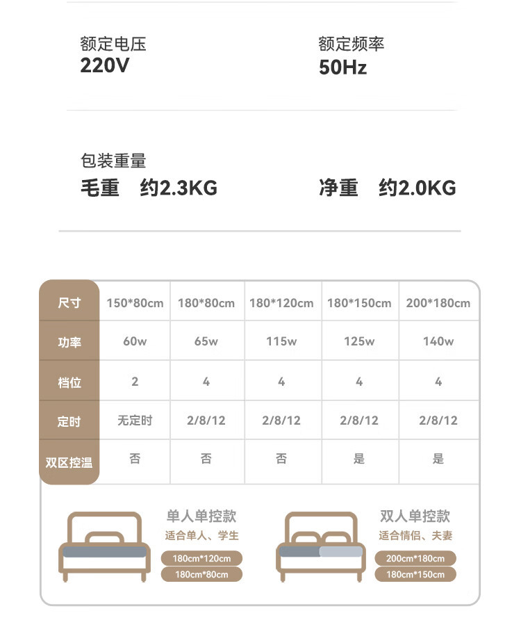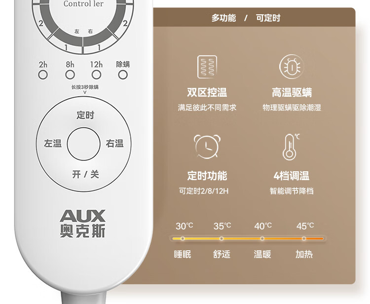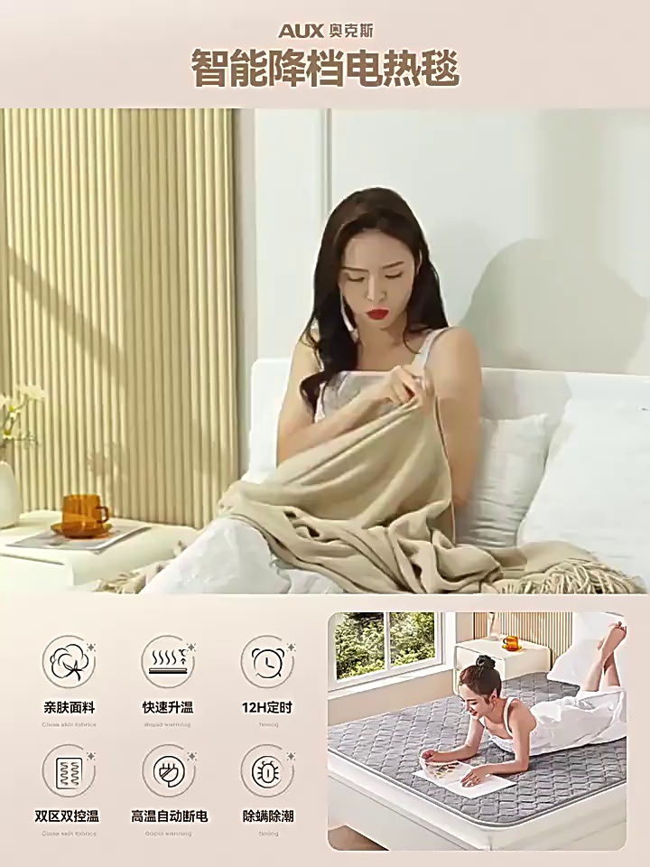 奥克斯石墨烯电热毯单人双人调温双控电褥子宿舍家用正品