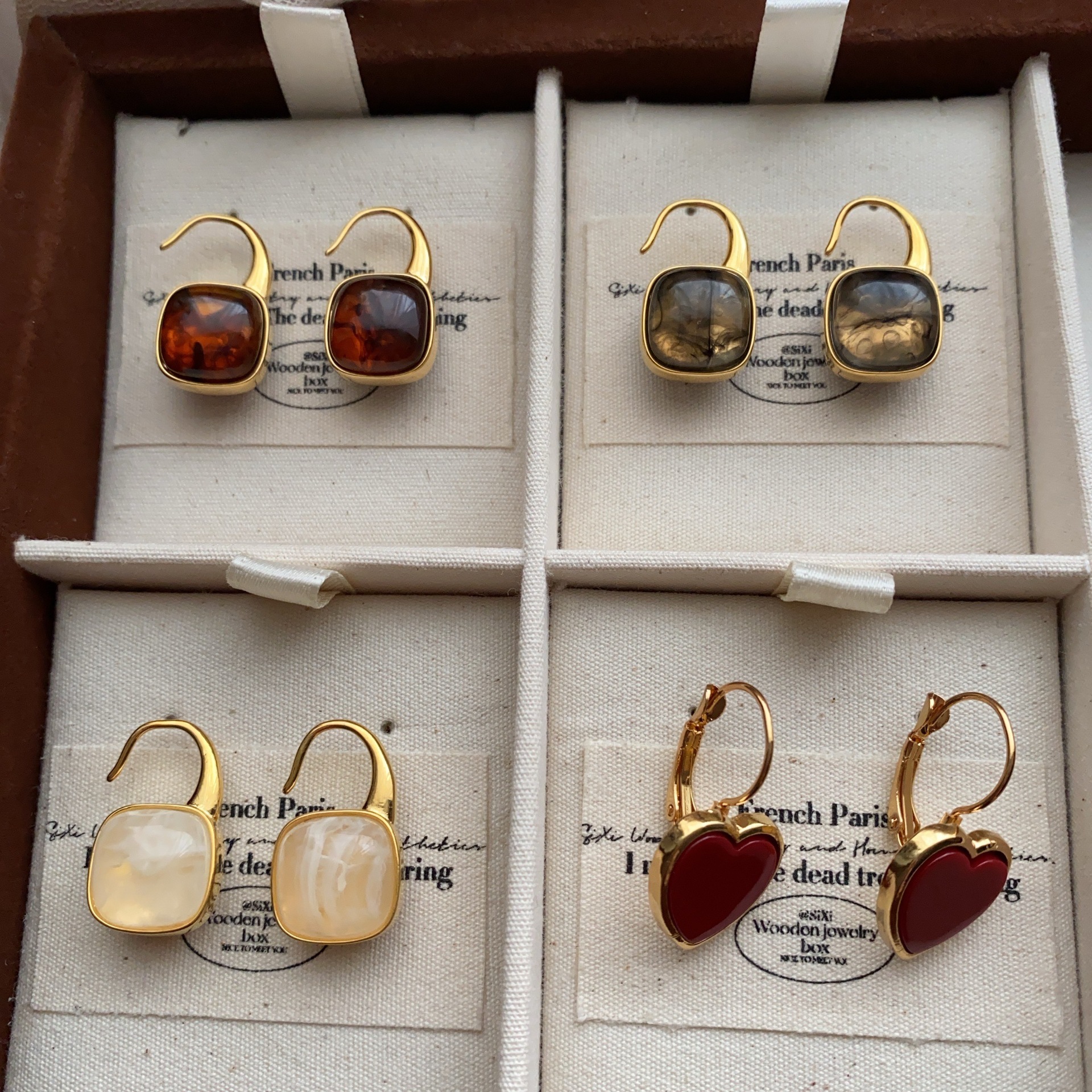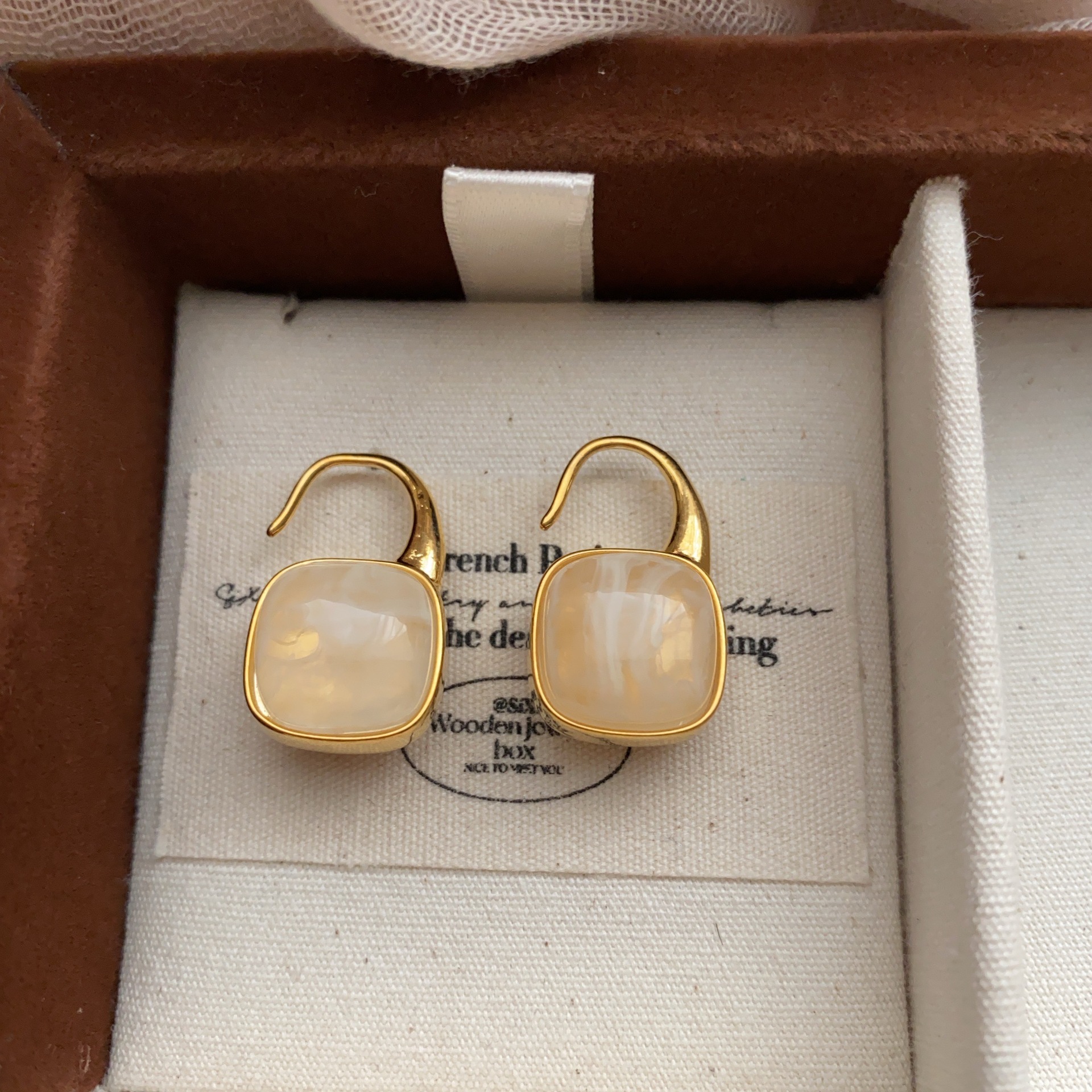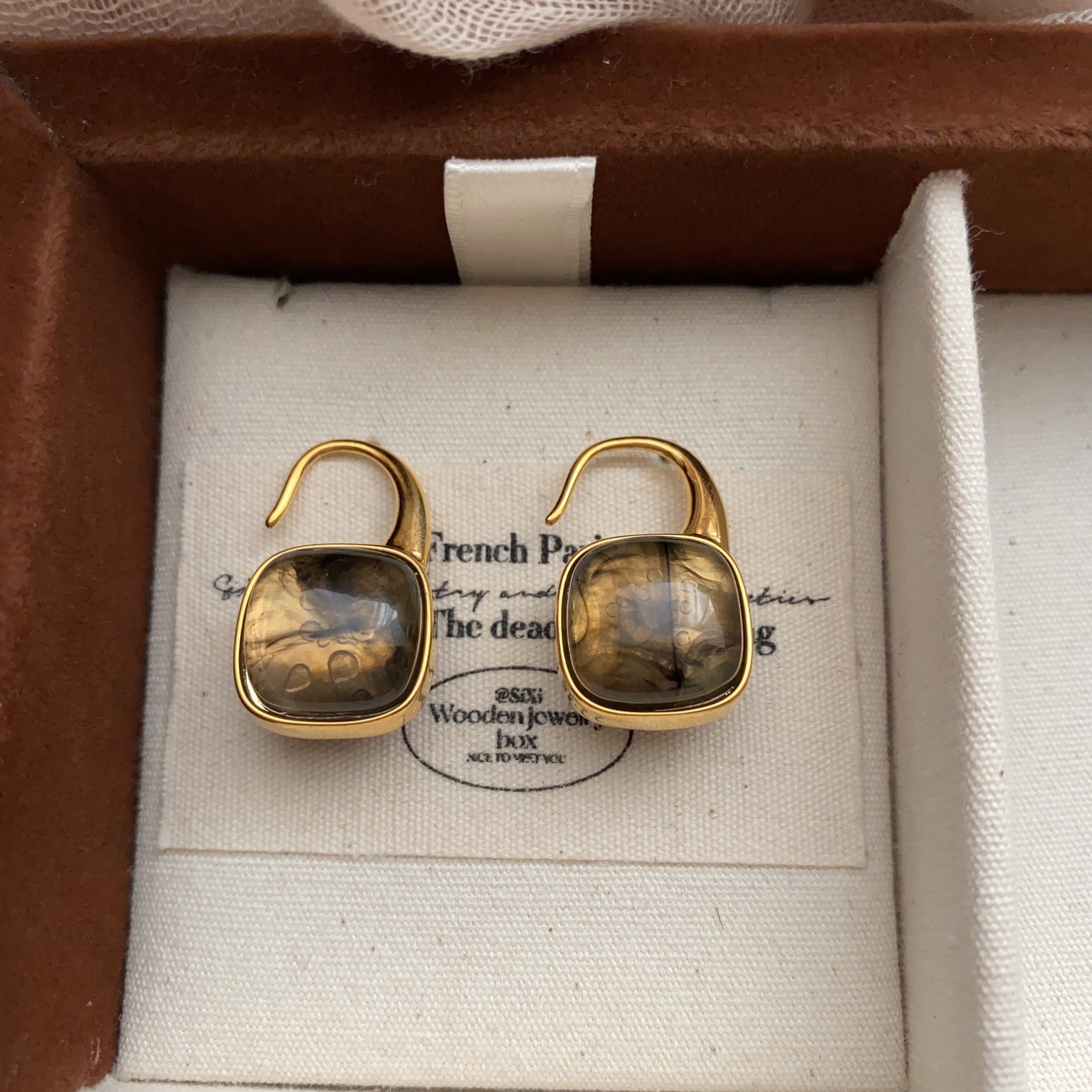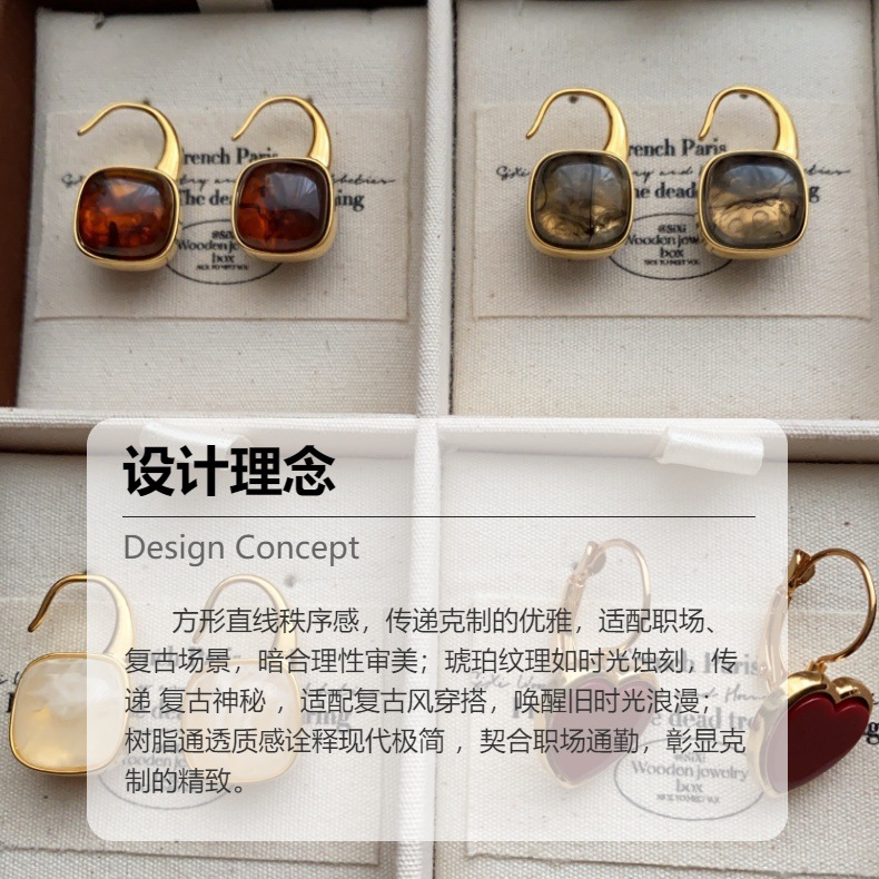 方形树脂耳扣耳环轻奢高级复古小众百搭耳饰女小巧精致美拉德秋冬