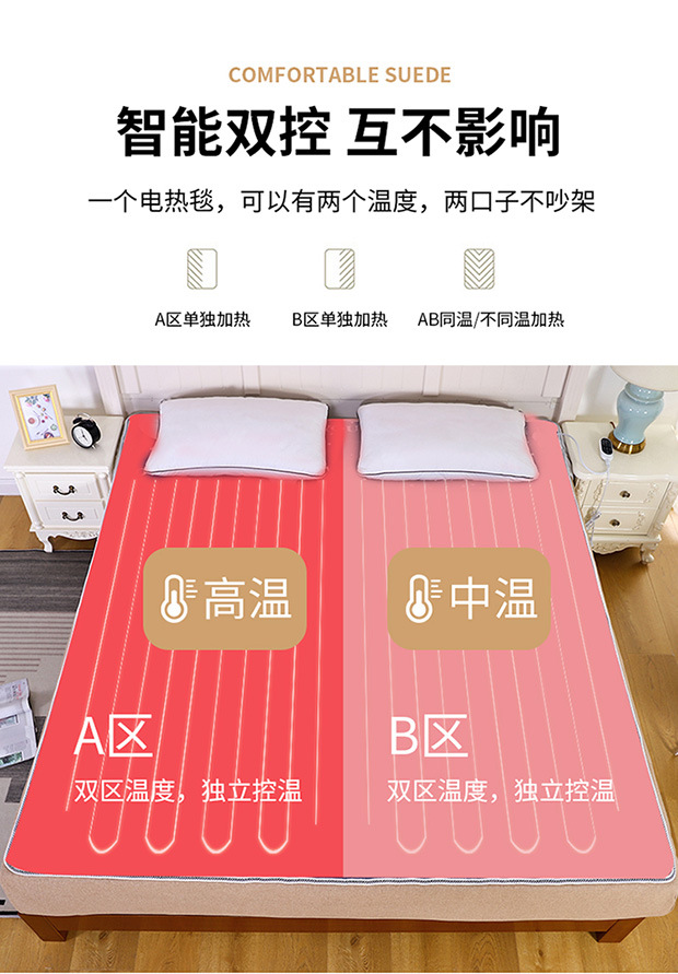 正品电热毯单人双人双控电褥子三人加大加厚调温除螨宿舍安全防水