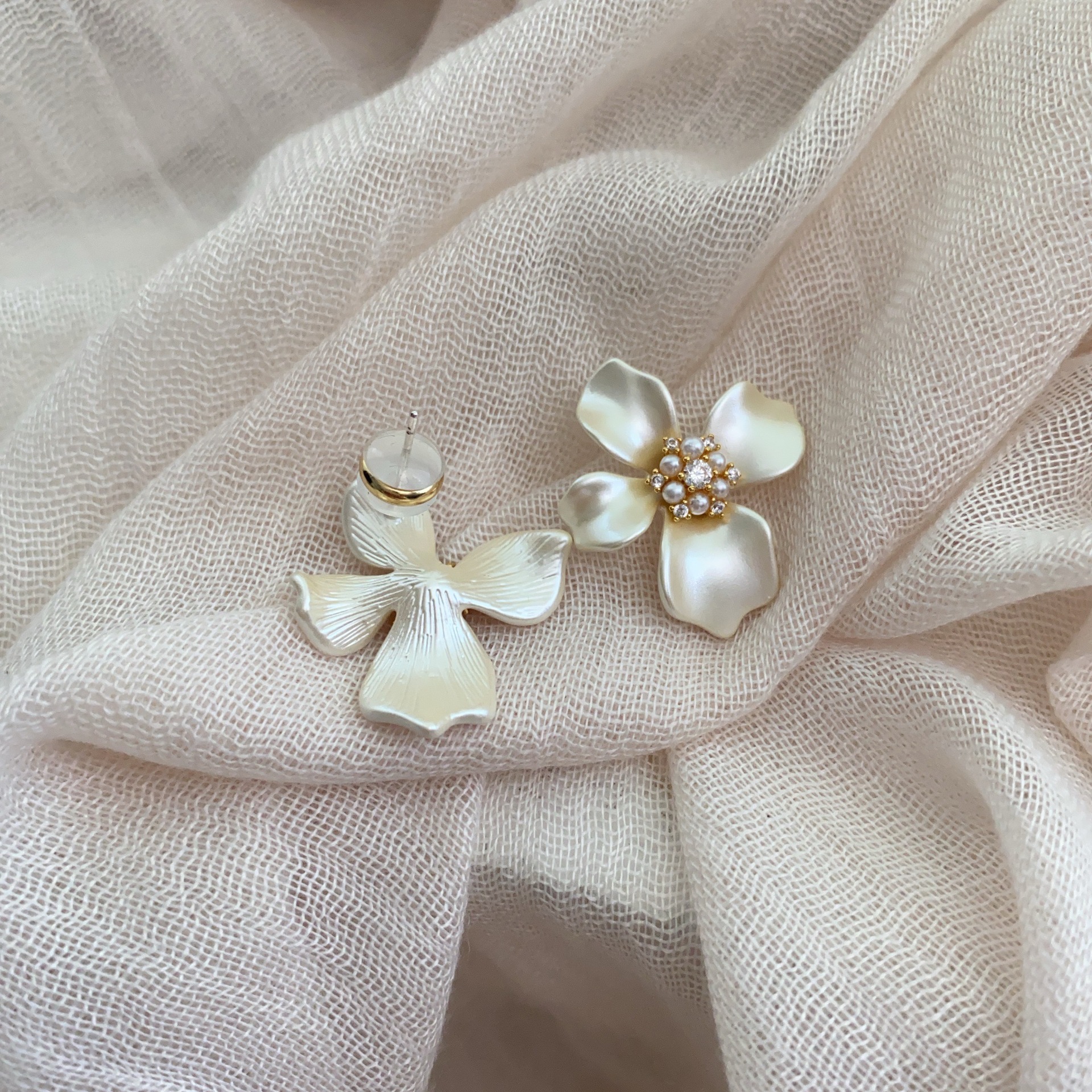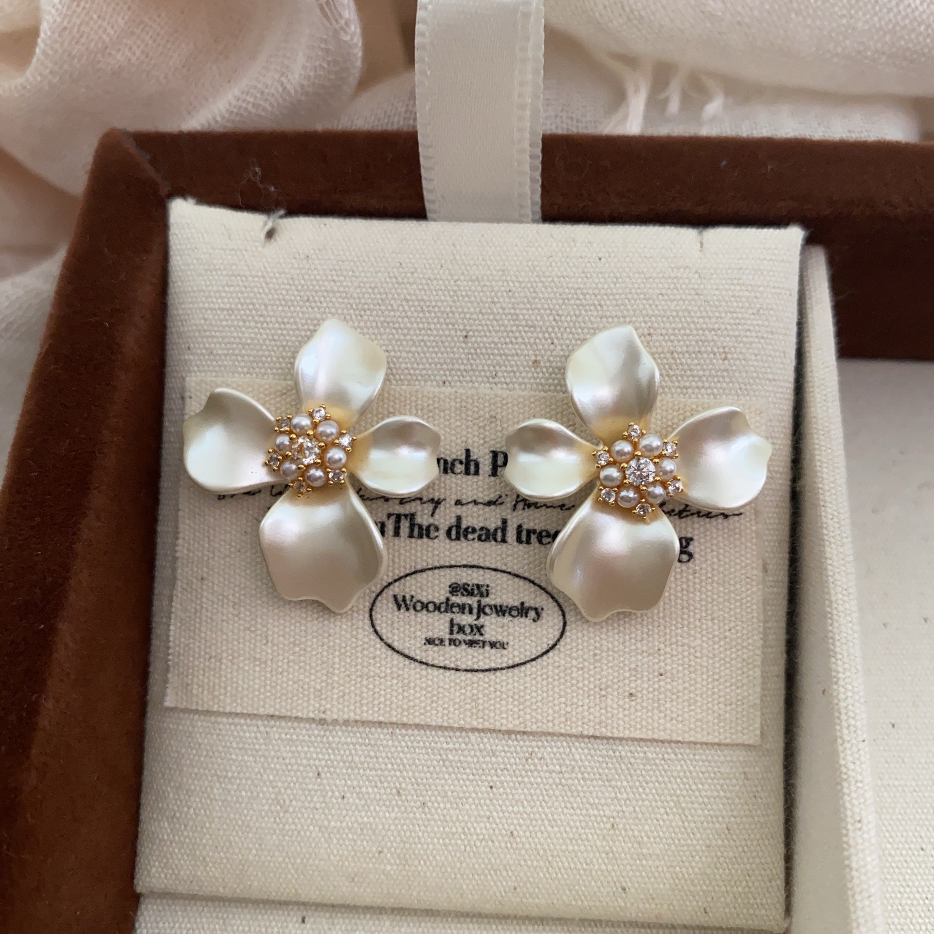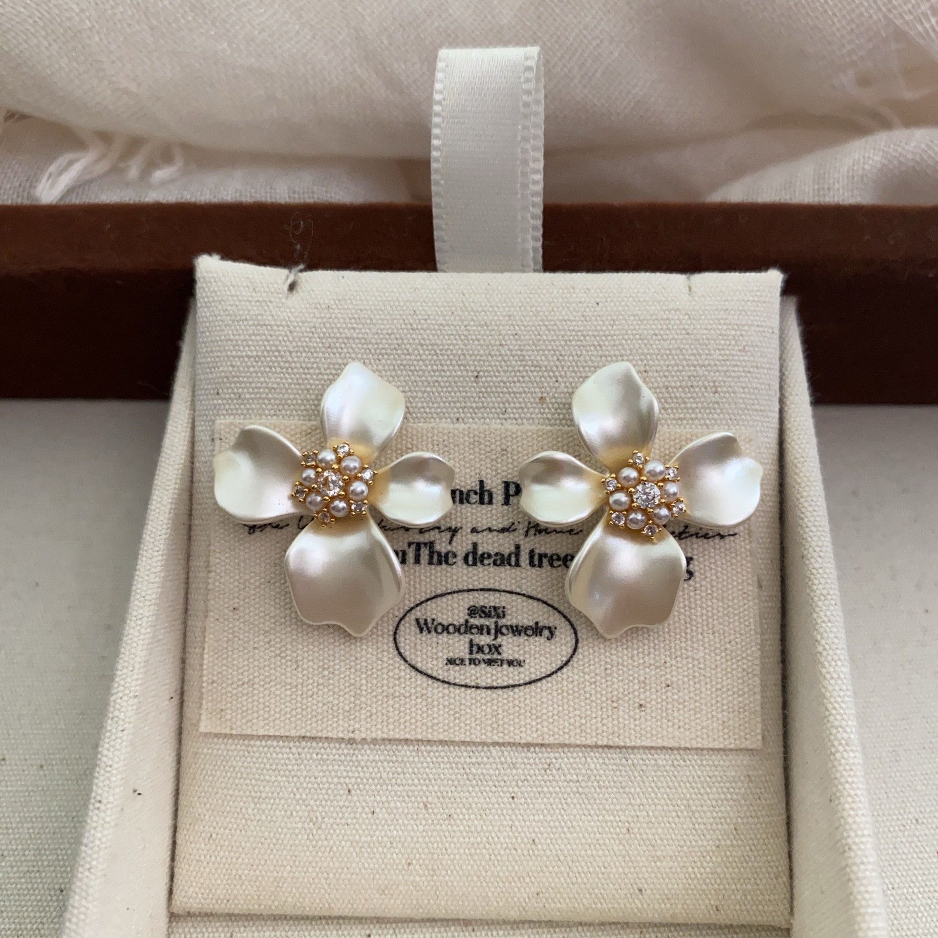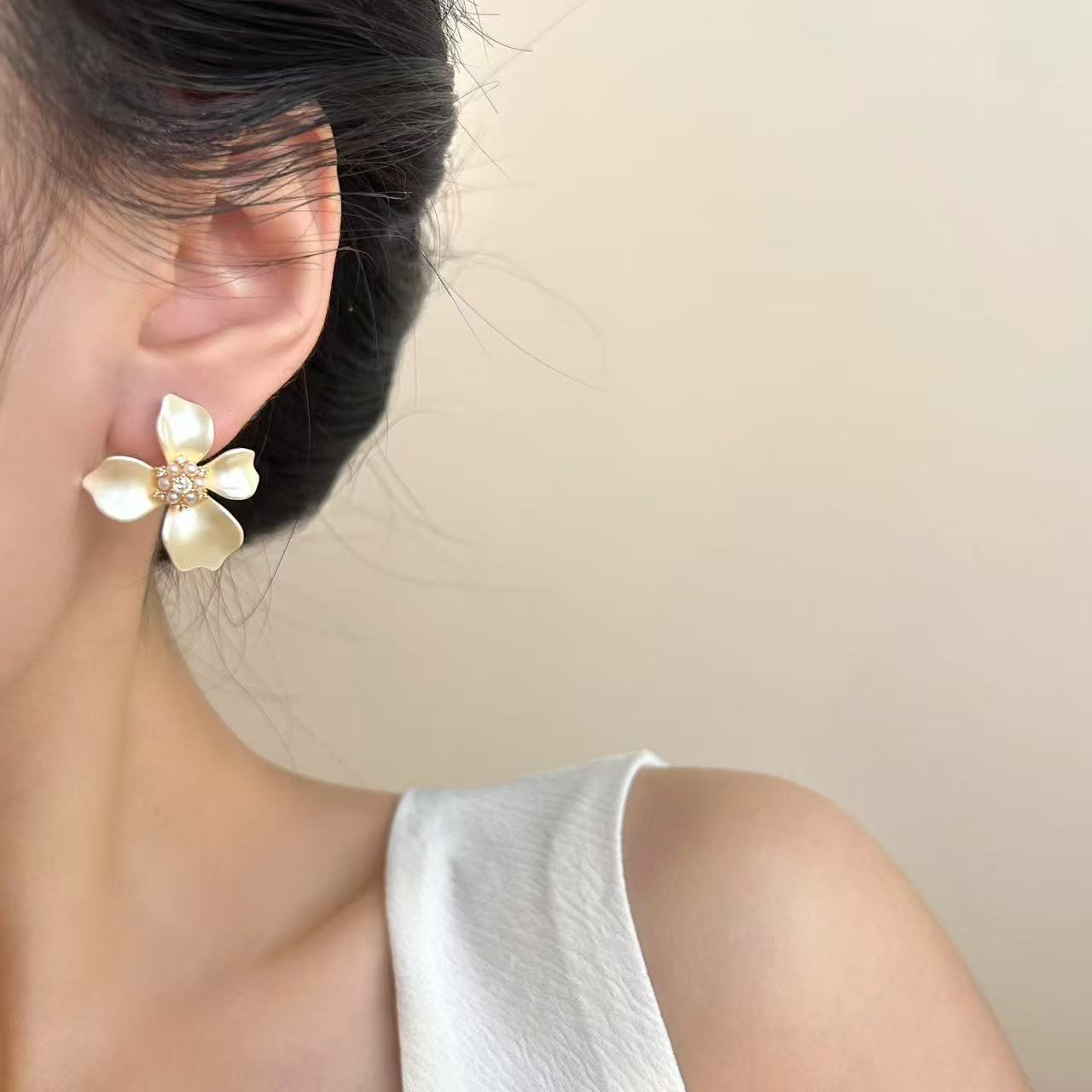 法式复古高级感花朵耳钉女小众设计哑光质感精致华丽独特气质耳饰