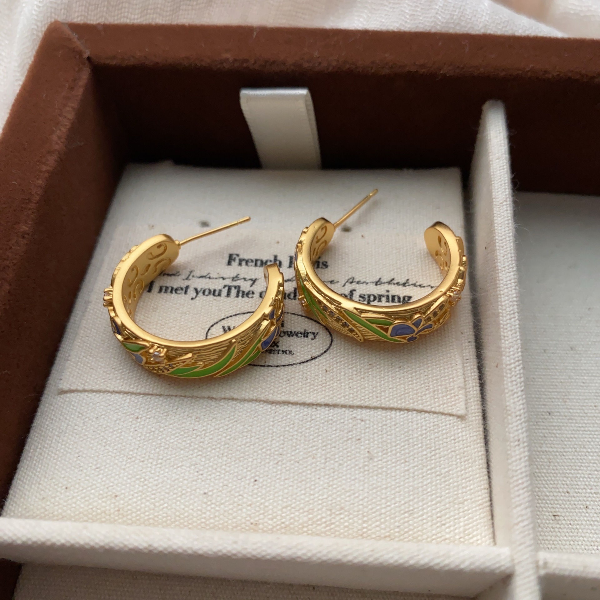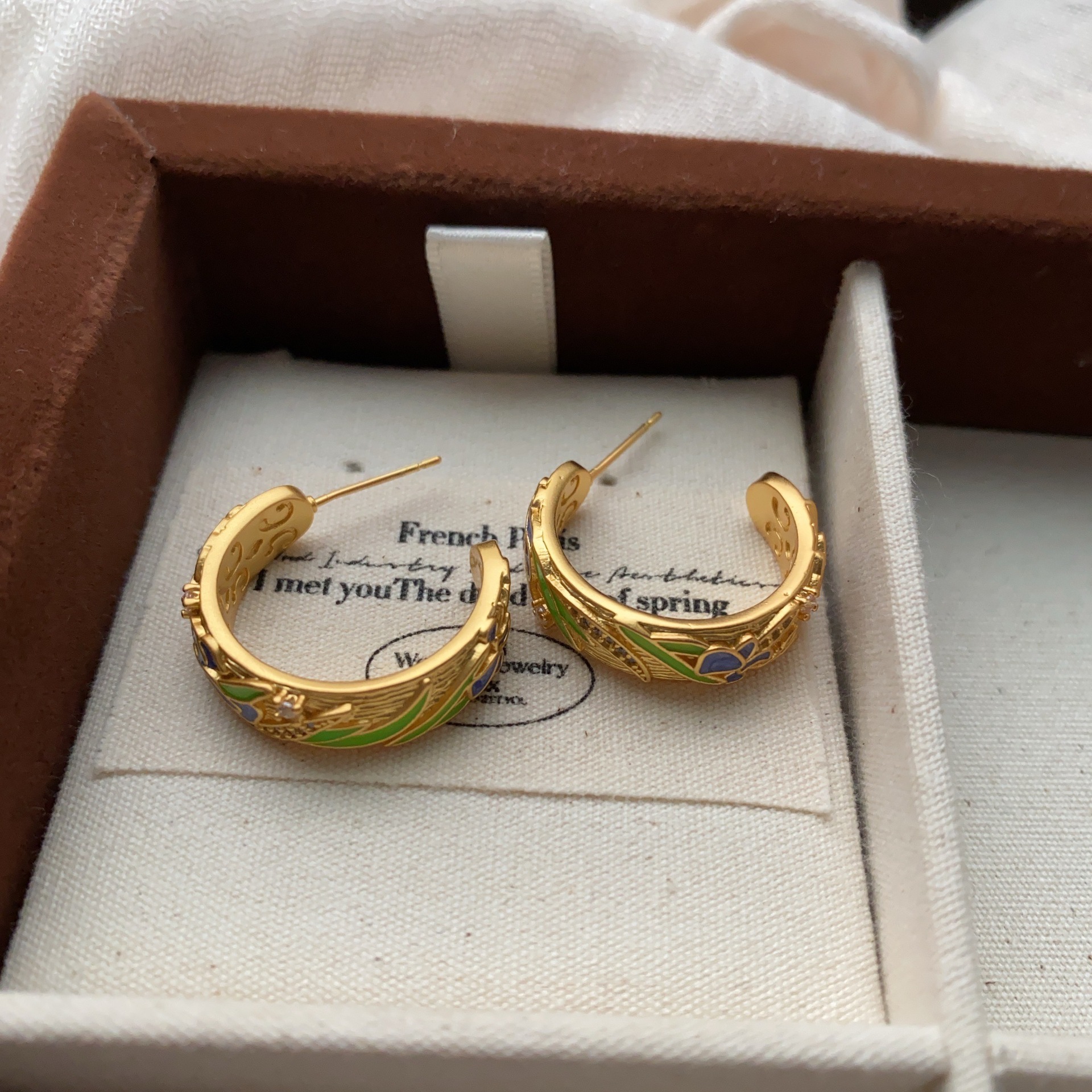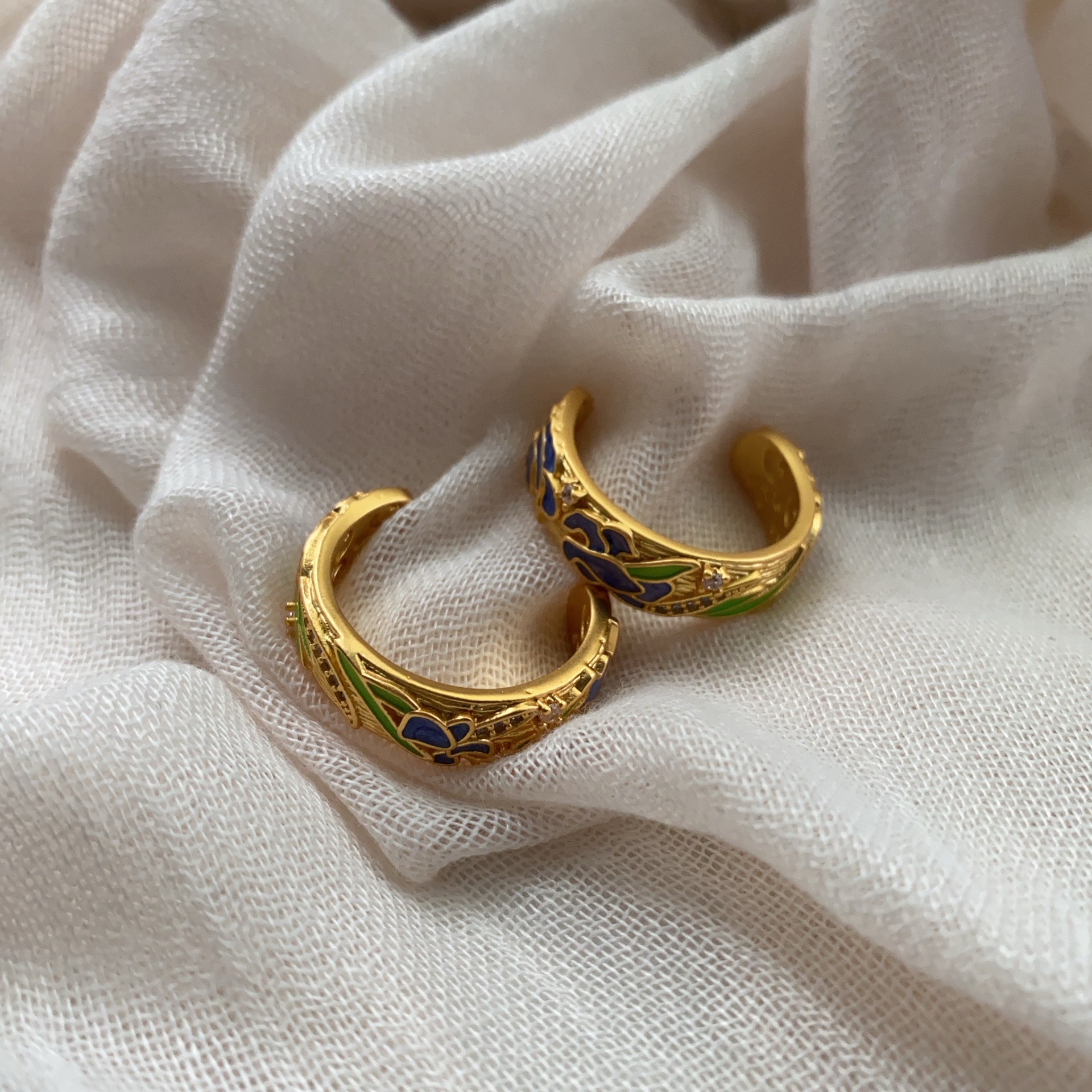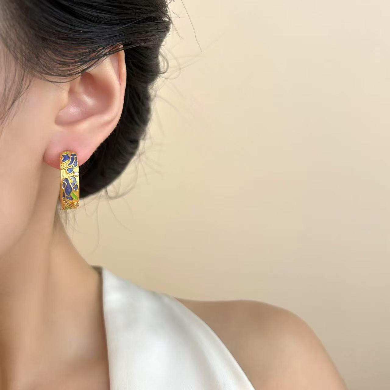 东方雅韵半圆形耳钉高级感复古金属滴油冷淡风耳圈耳环气质耳饰女