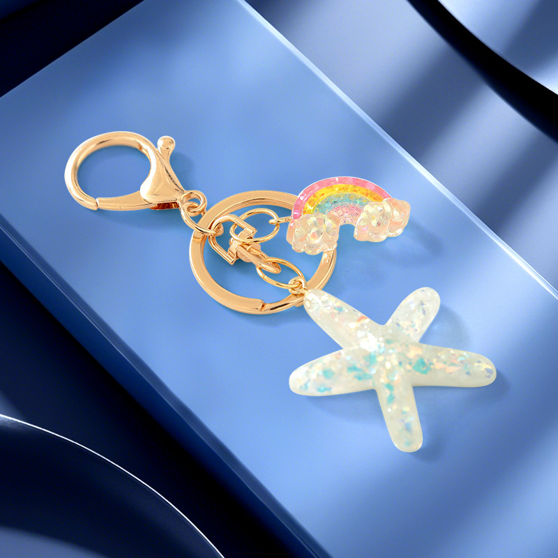 跨境现货海洋海星钥匙扣彩虹挂件女士包包钥匙挂饰创意小饰品批发
