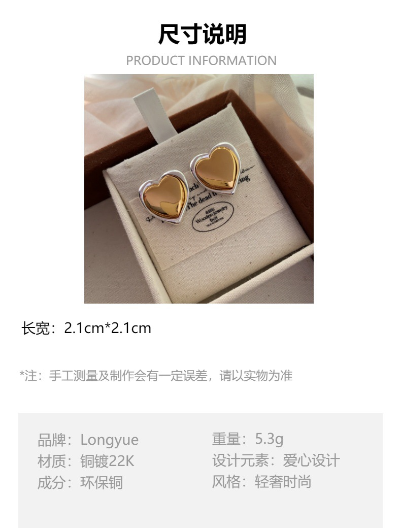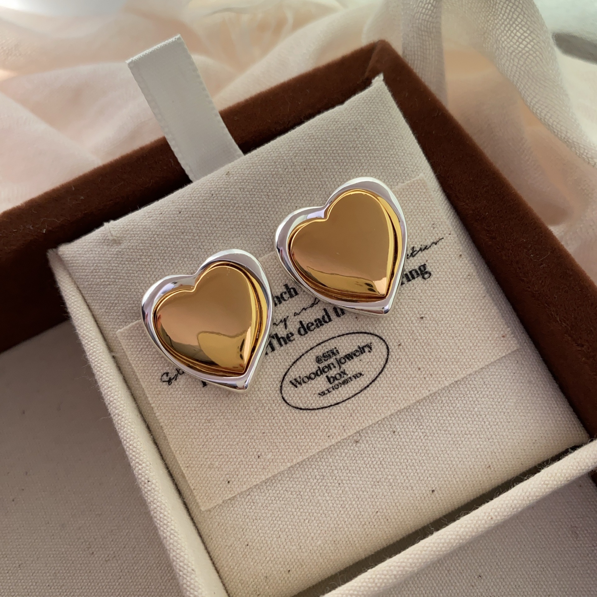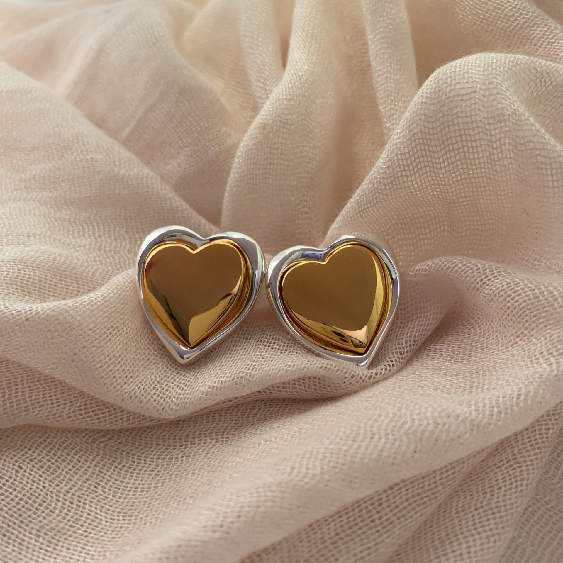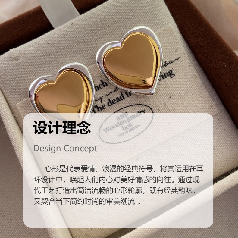 欧美跨境耳环拼色双爱心耳钉轻奢几何高级感通勤时尚百搭个性耳钉