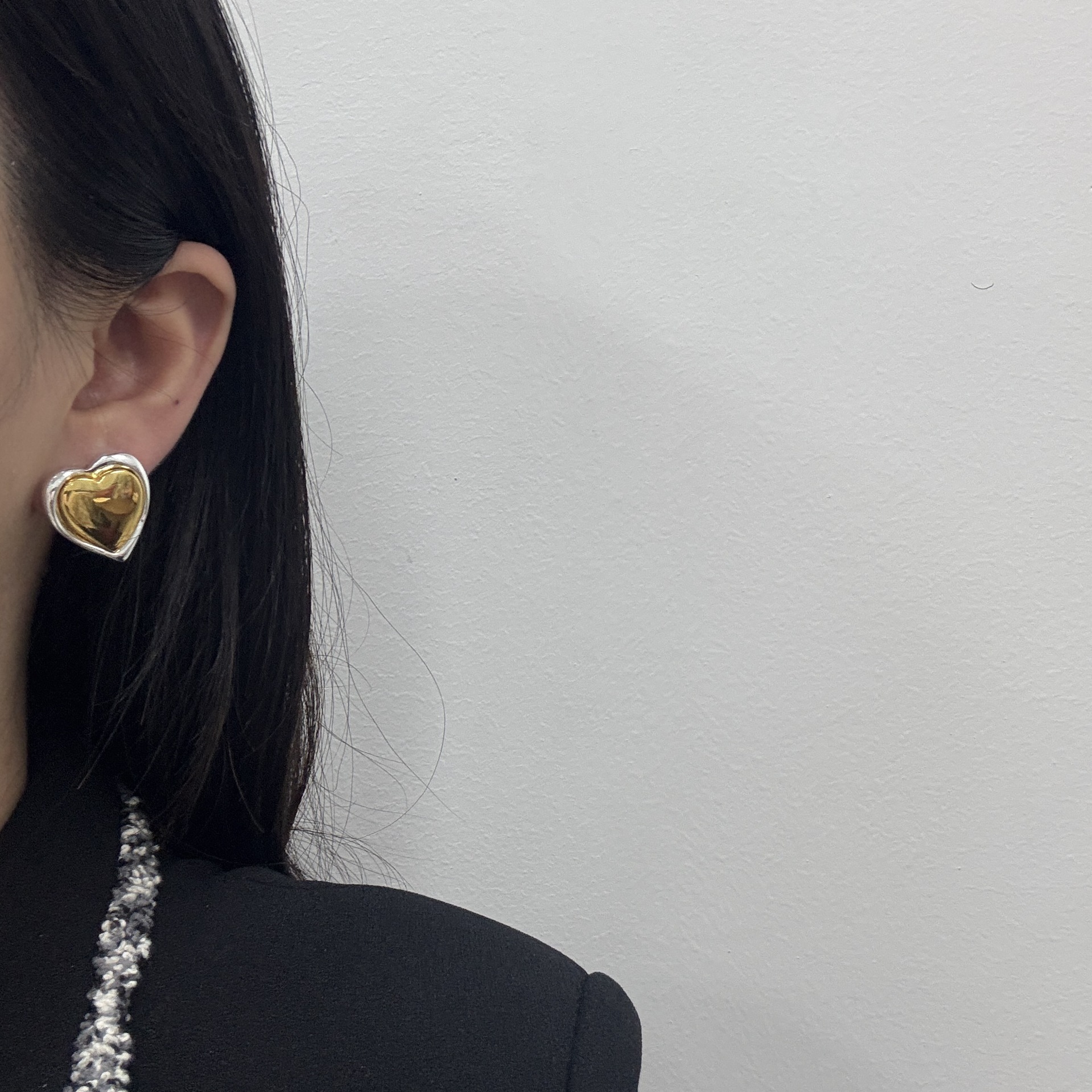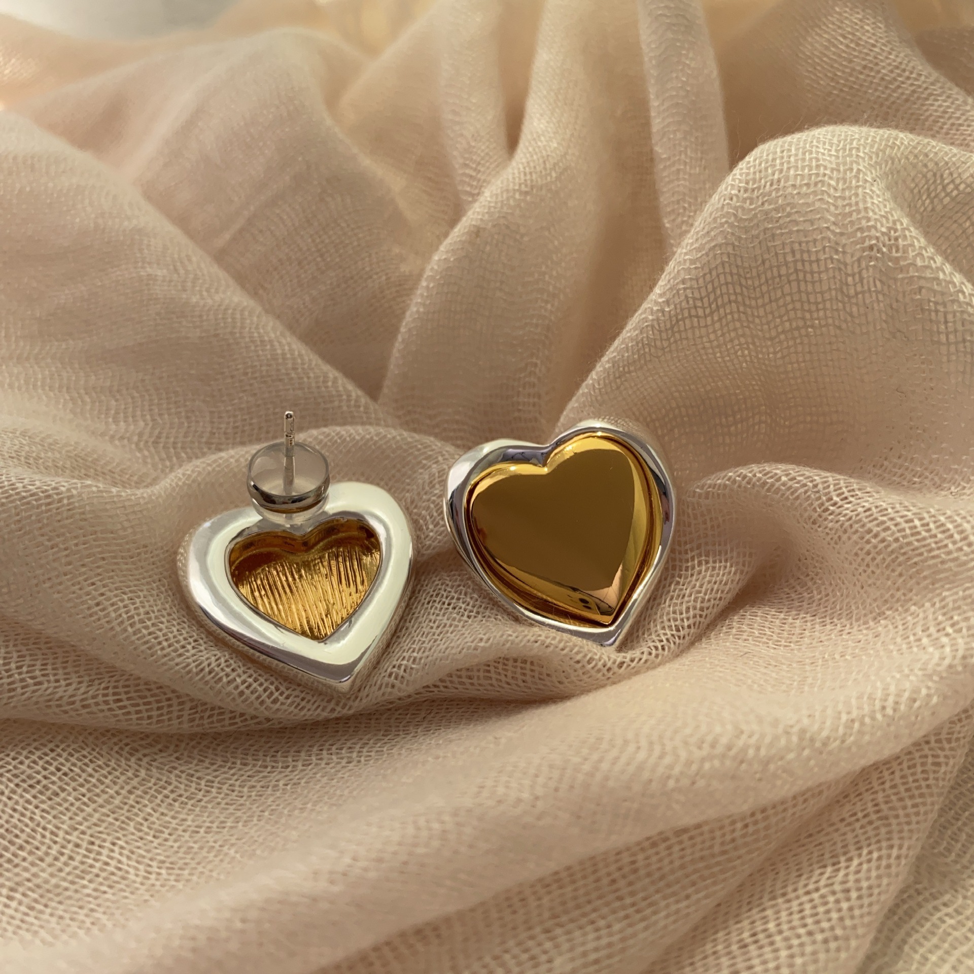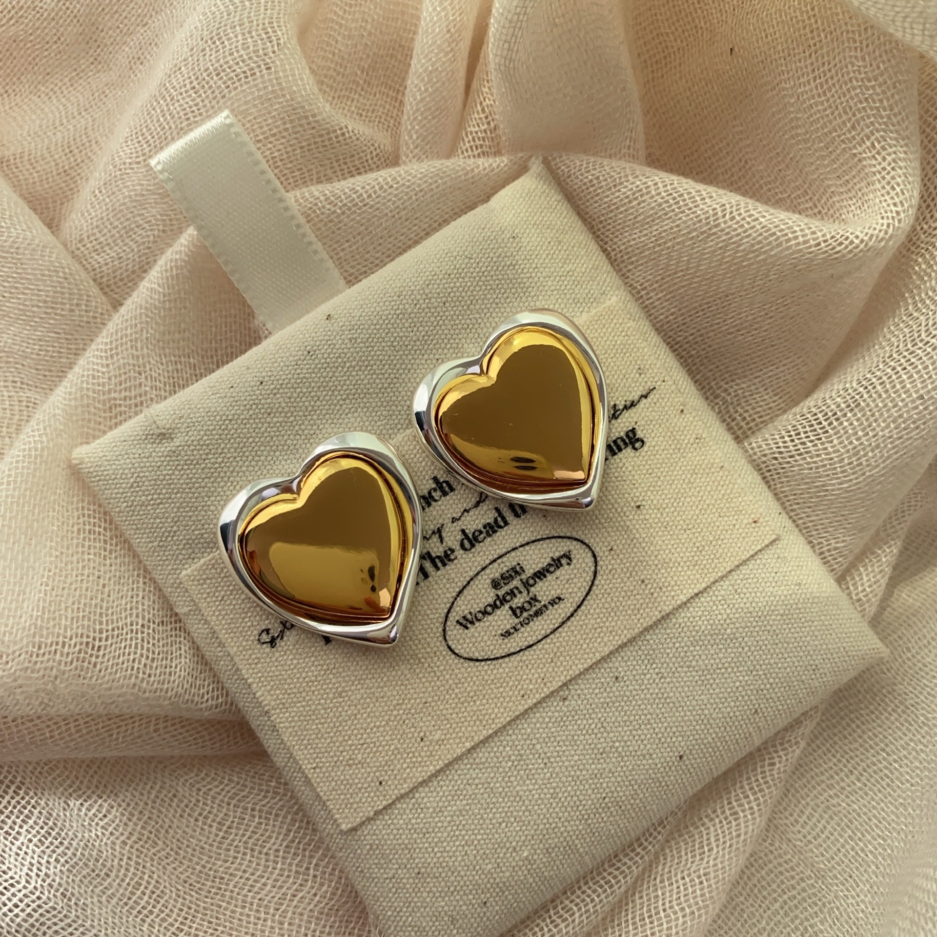 欧美跨境耳环拼色双爱心耳钉轻奢几何高级感通勤时尚百搭个性耳钉
