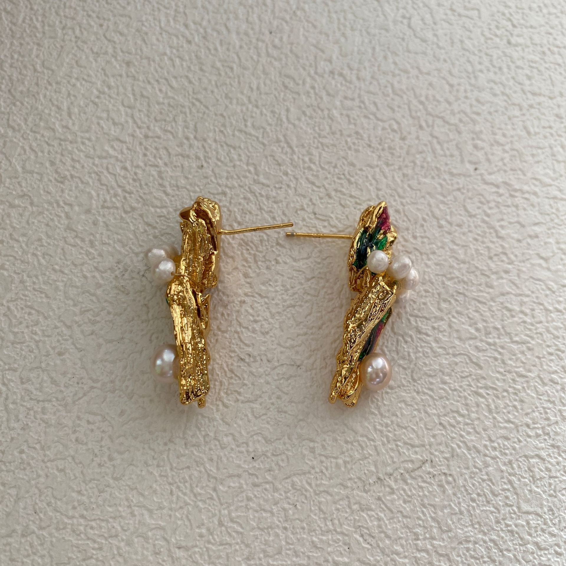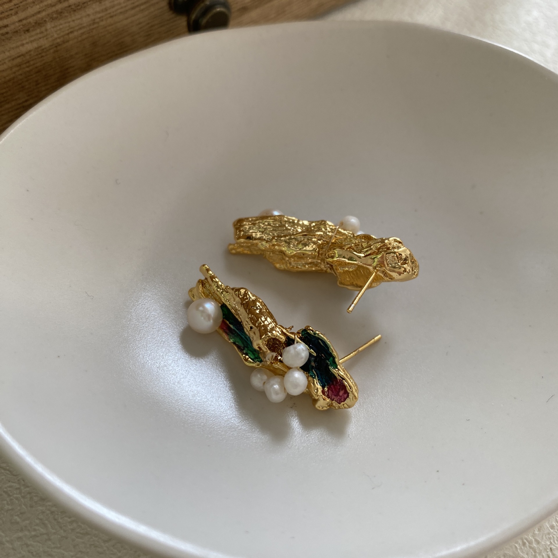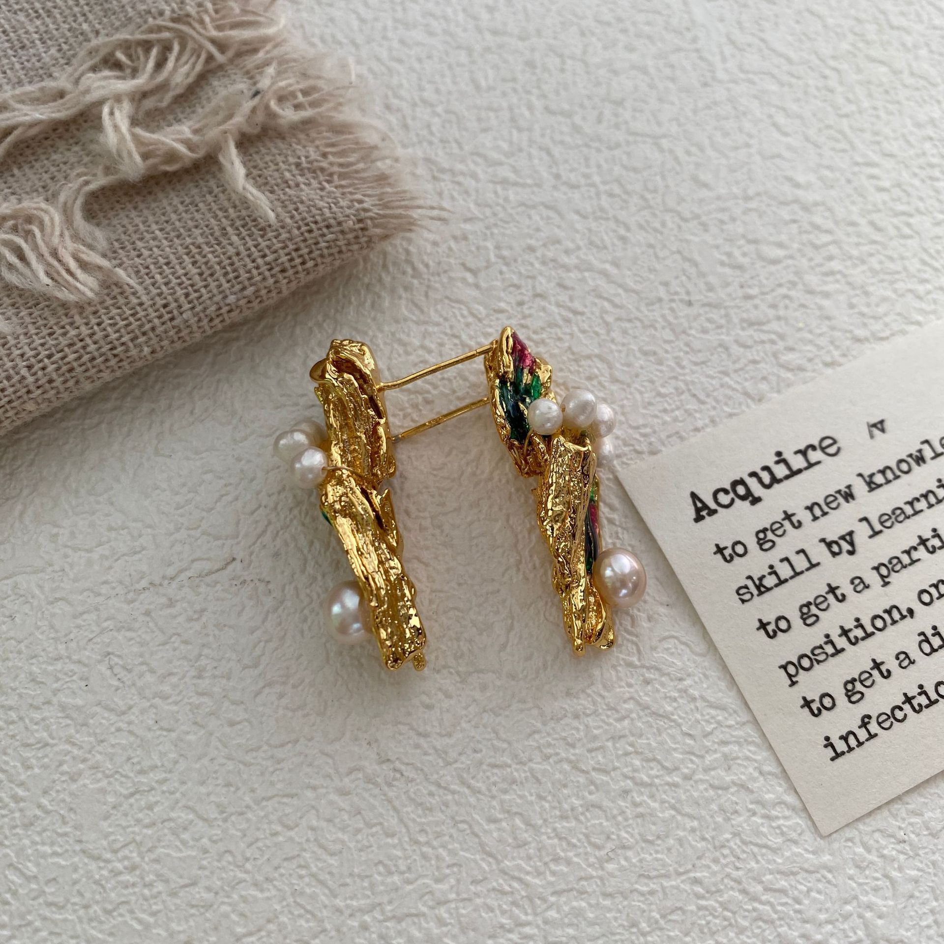 复古个性不规则金属天然珍珠耳钉小众设计轻奢高级优雅气质耳饰女