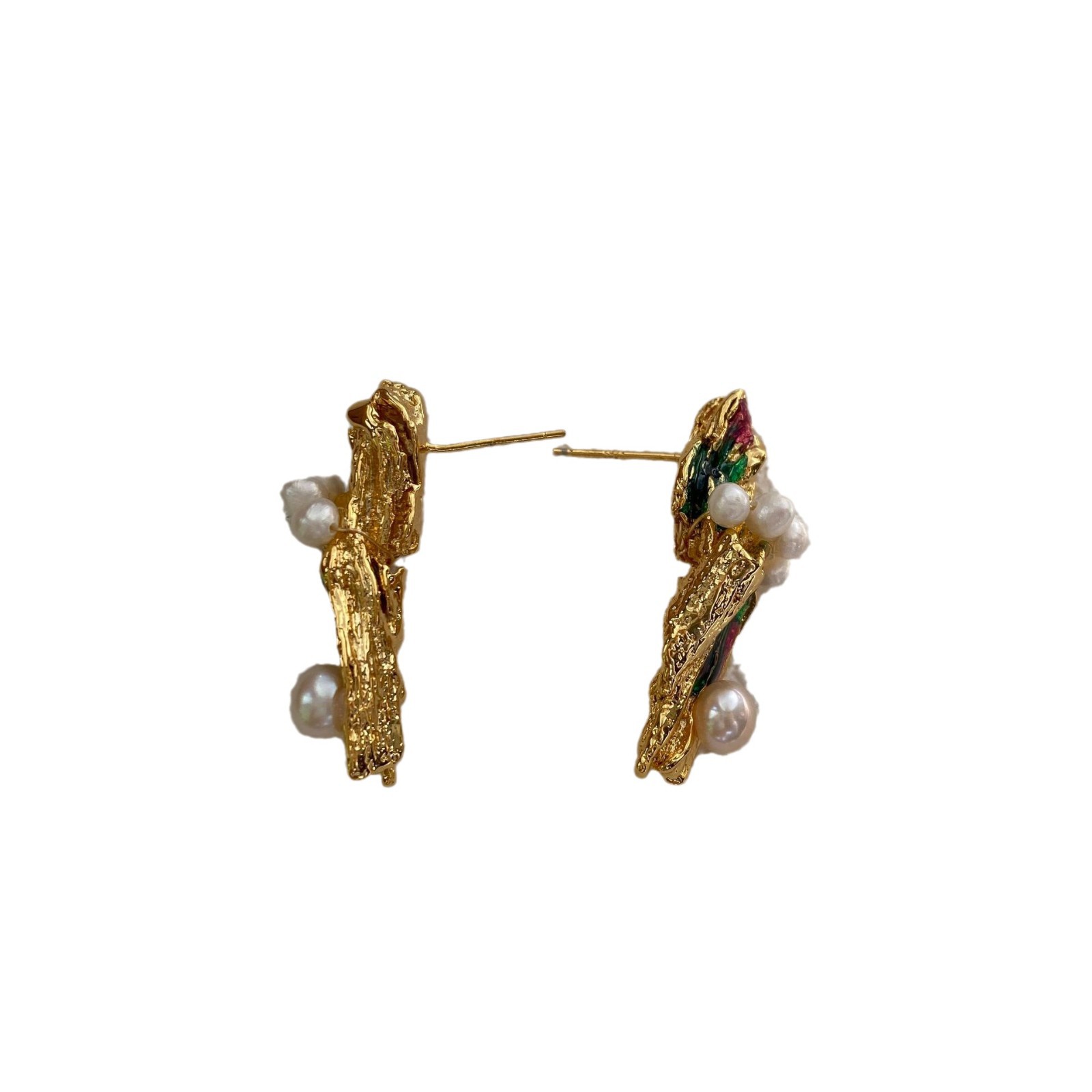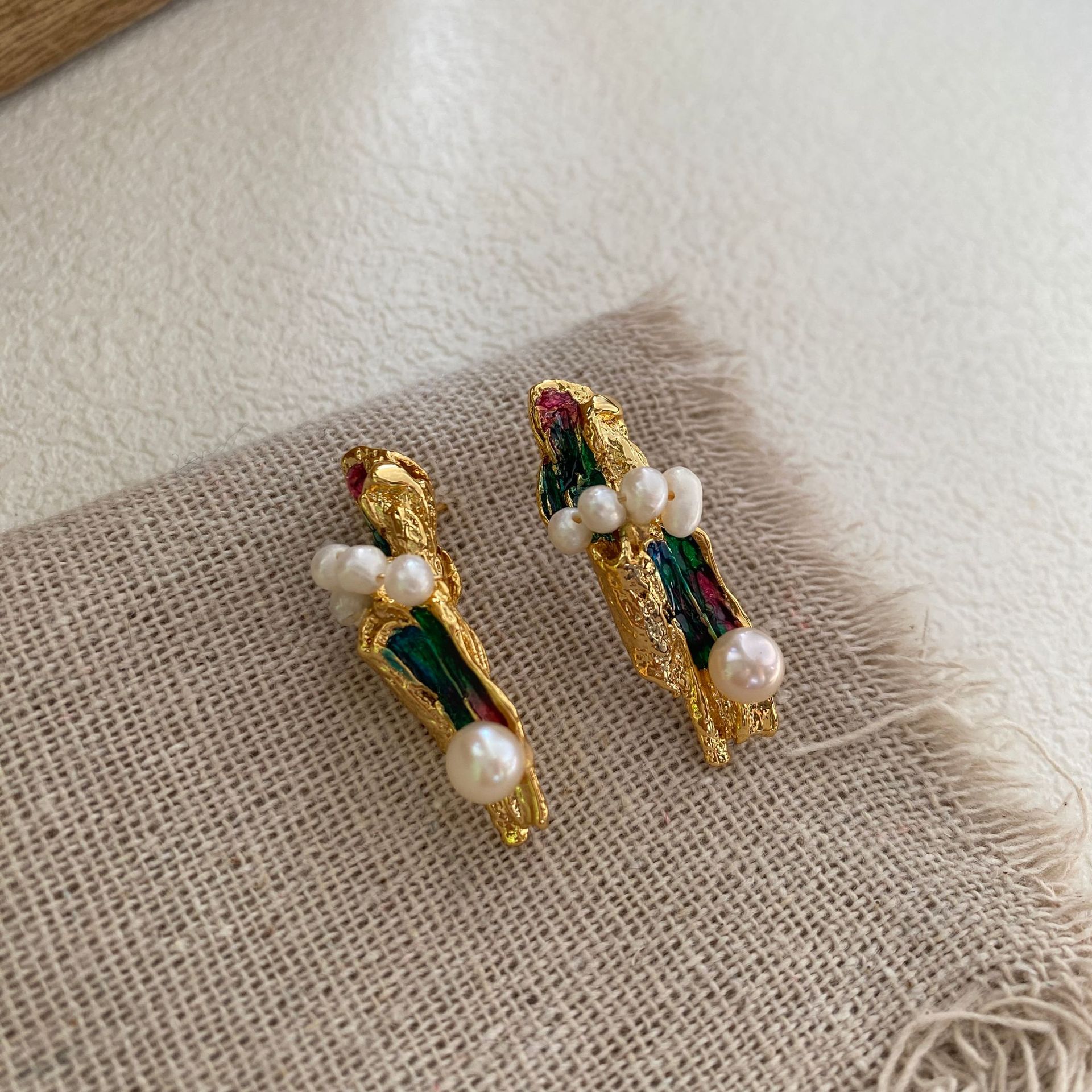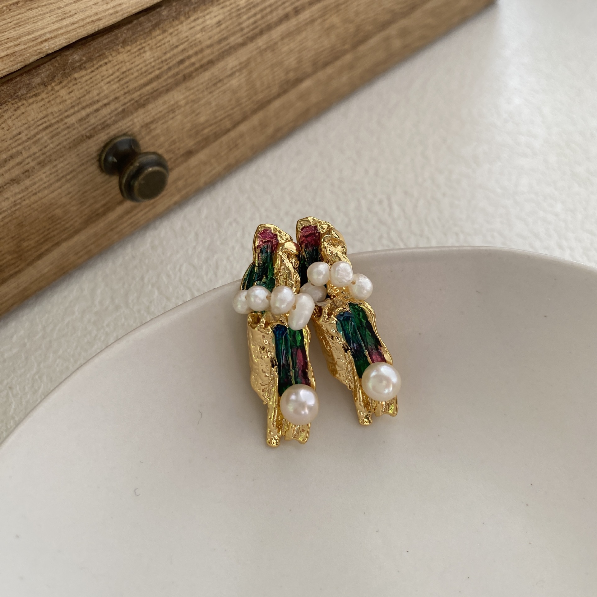 复古个性不规则金属天然珍珠耳钉小众设计轻奢高级优雅气质耳饰女