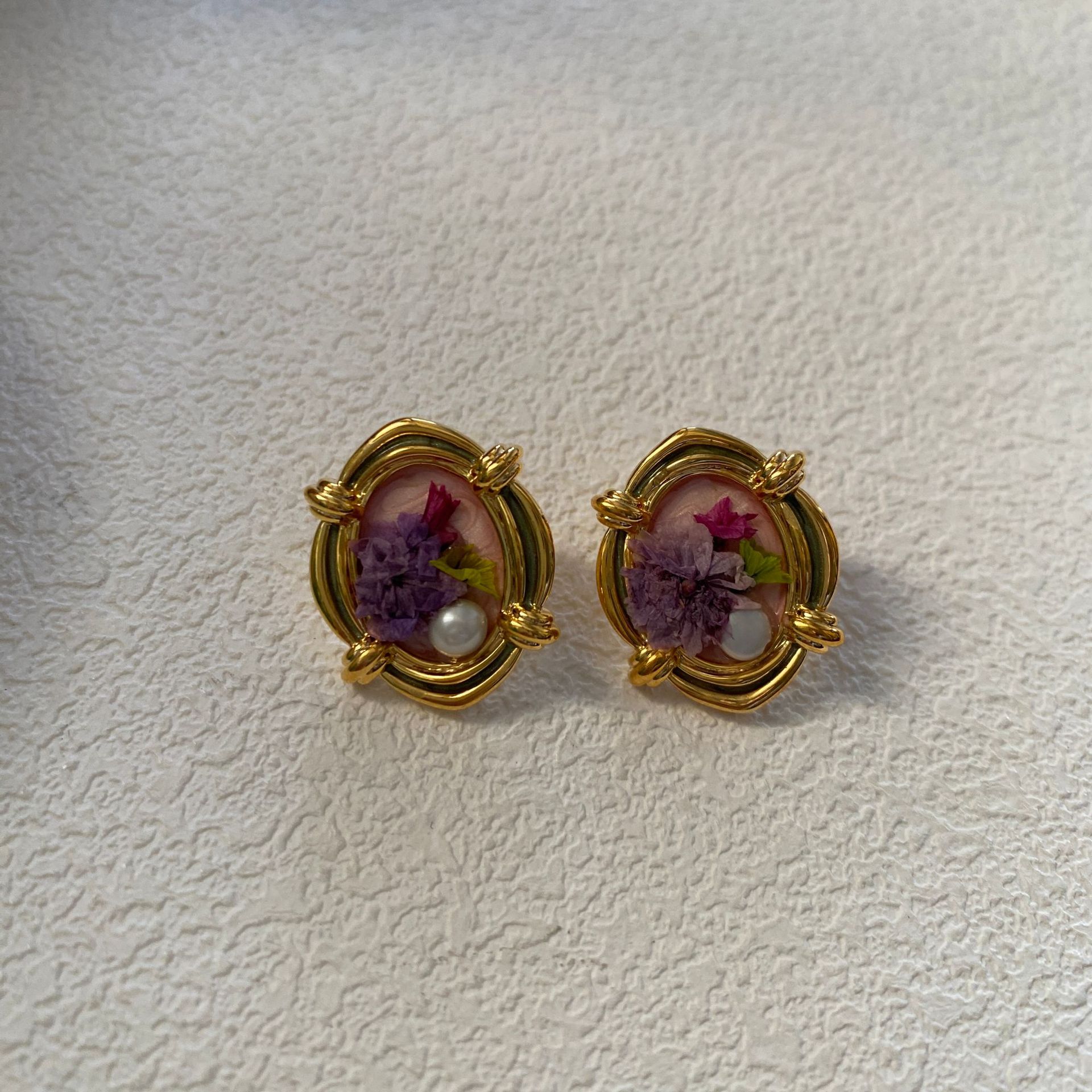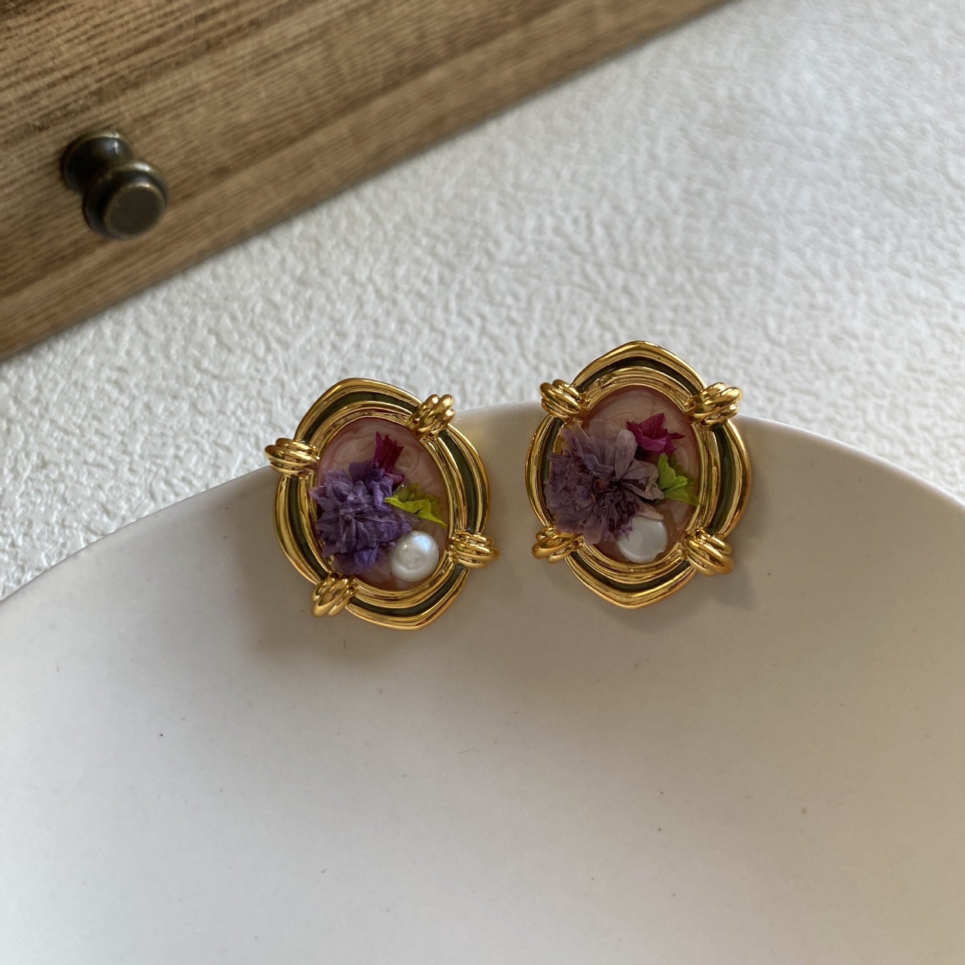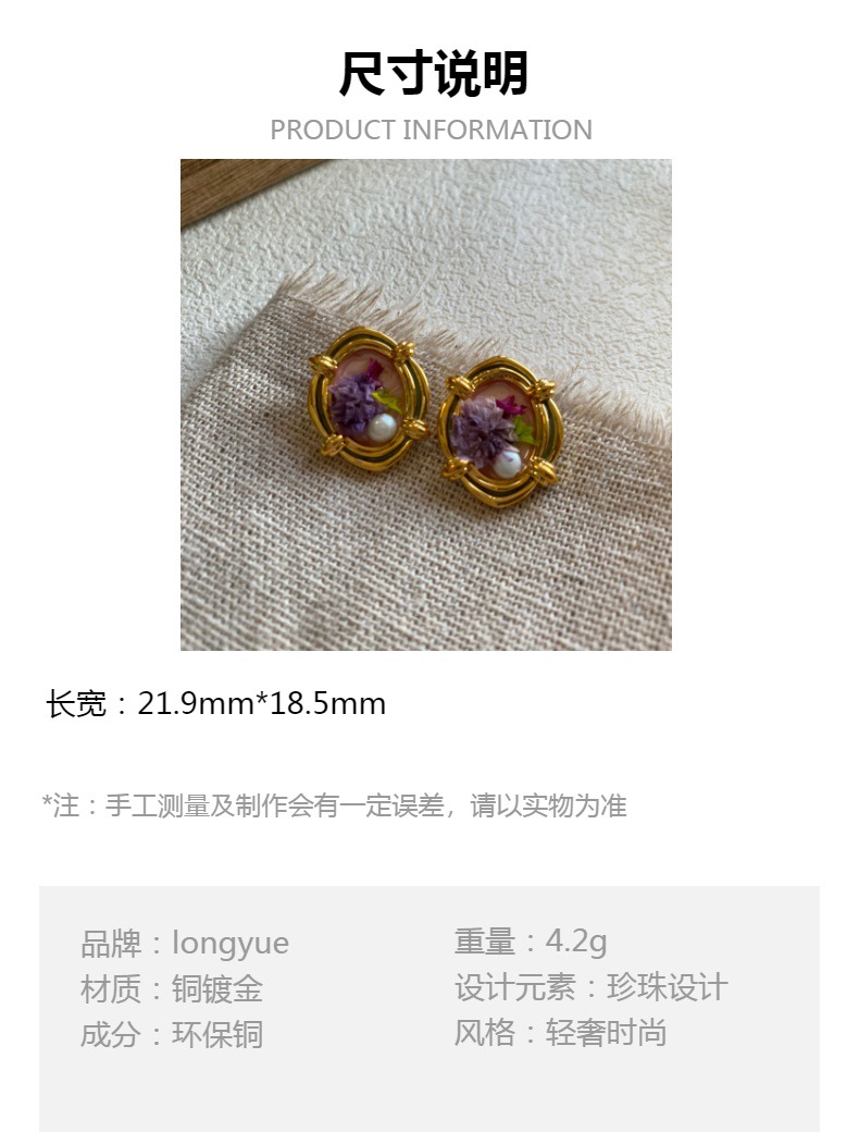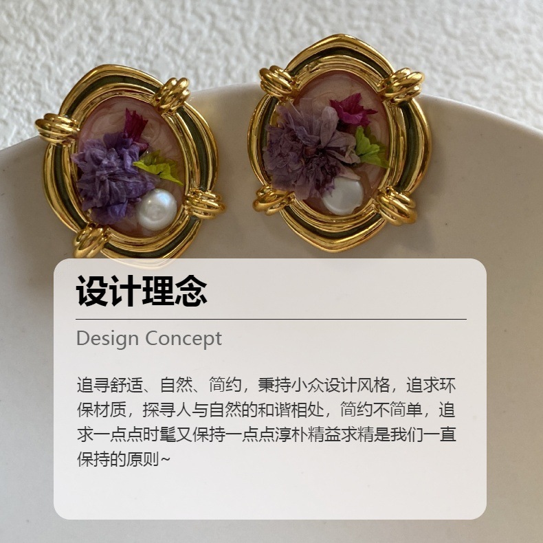 法式清新简约小众设计天然珍珠花朵复古油画风新田园气质百搭耳饰