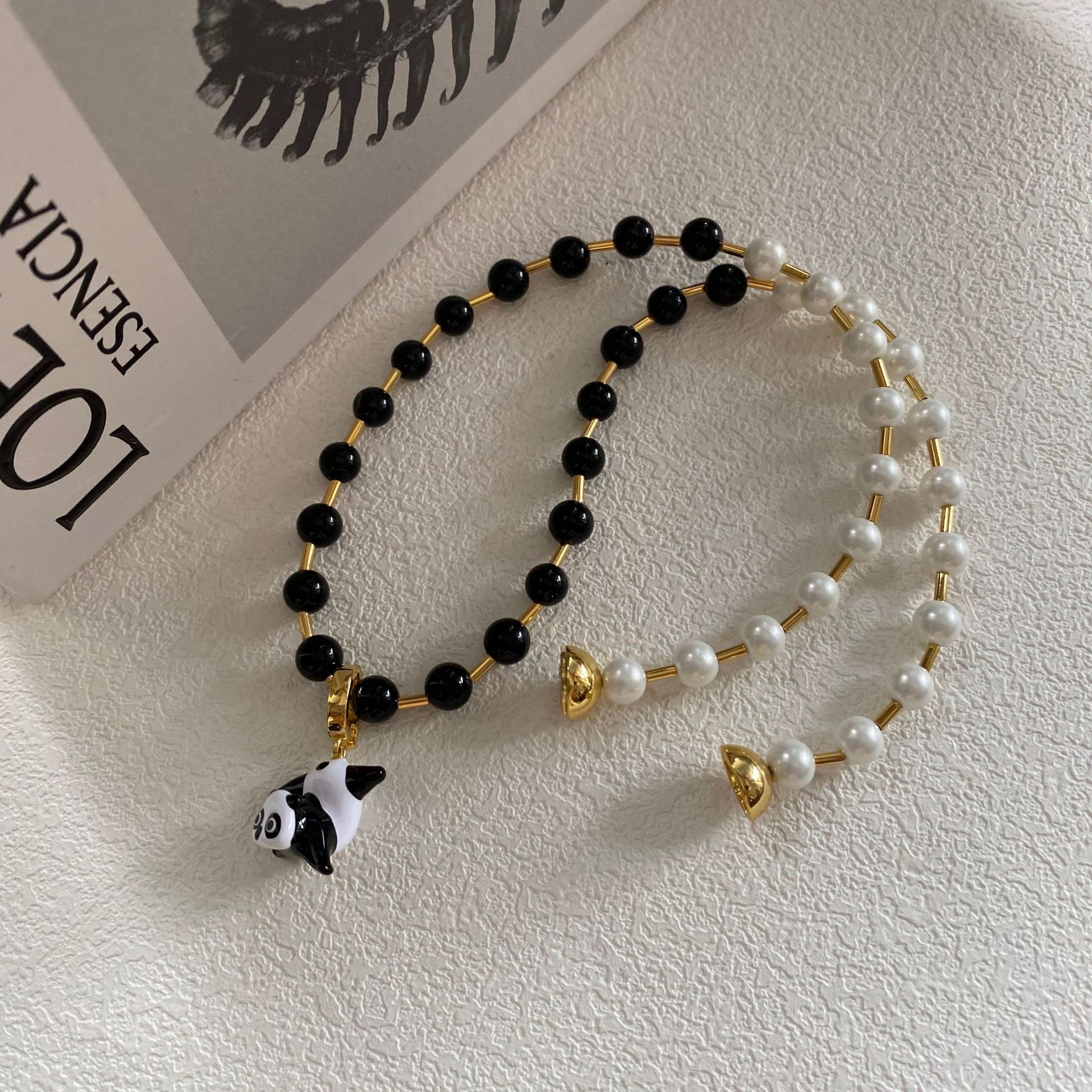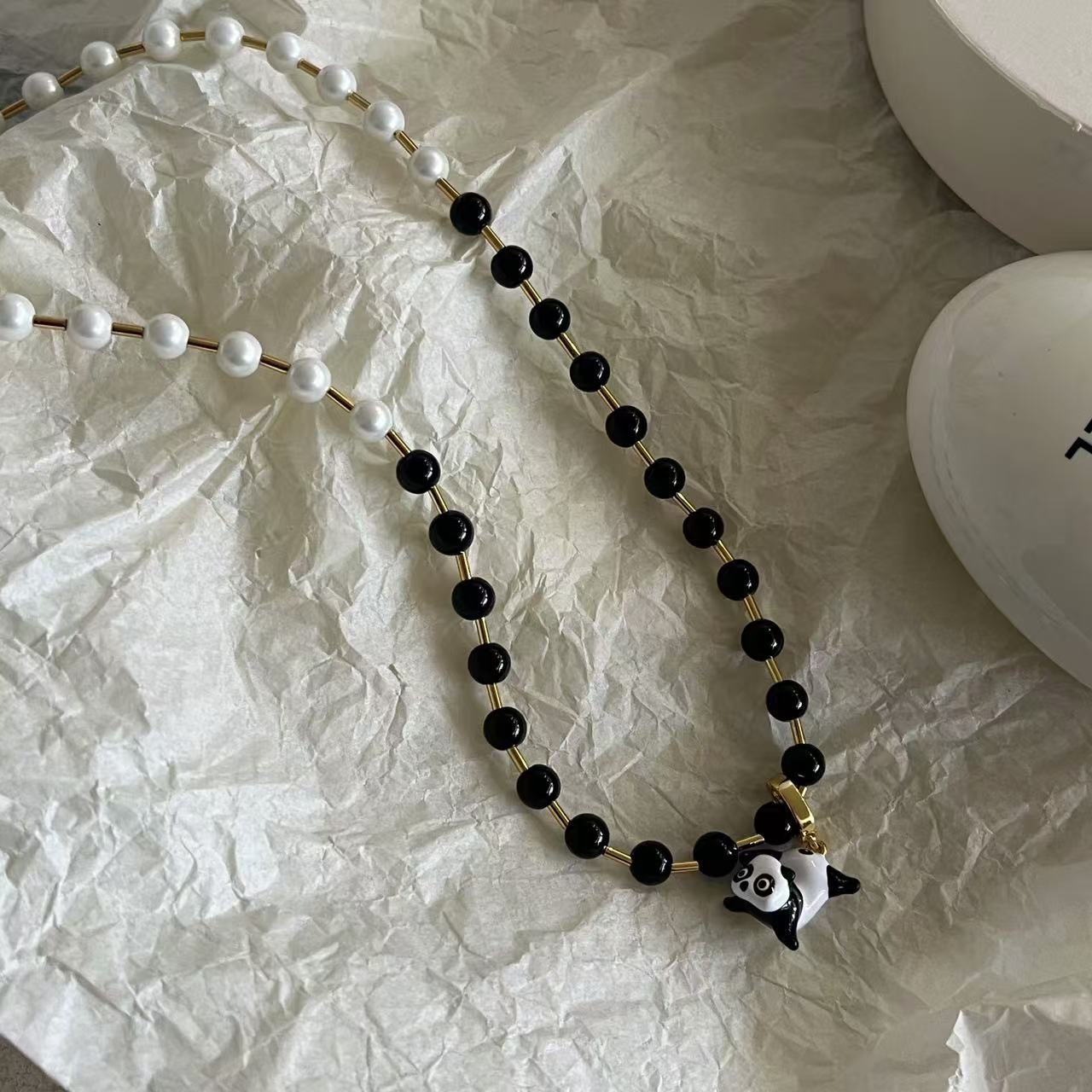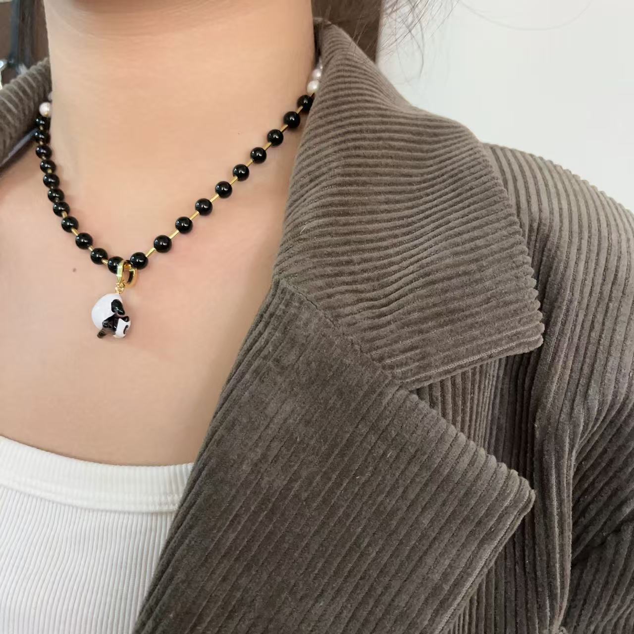 韩尼韩气小众吊坠小熊猫串珠项链女可爱精致时尚优雅百搭颈链毛衣