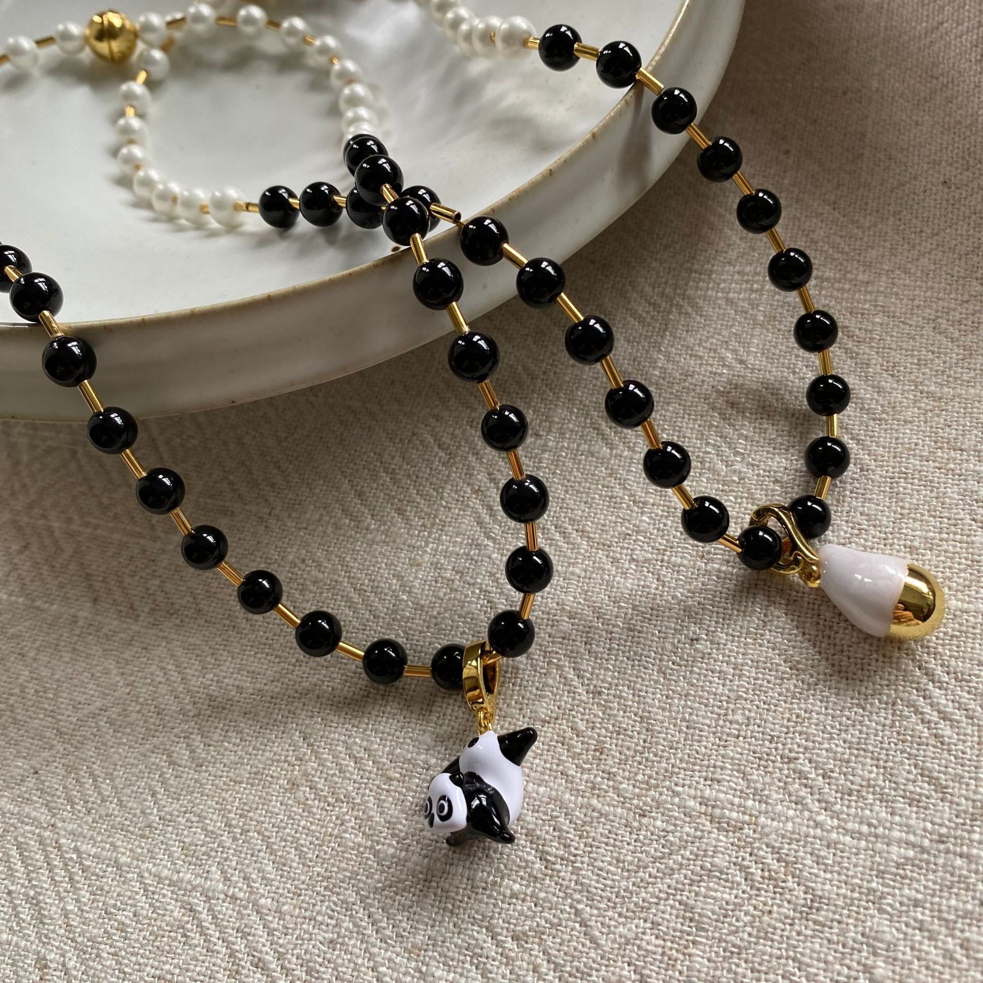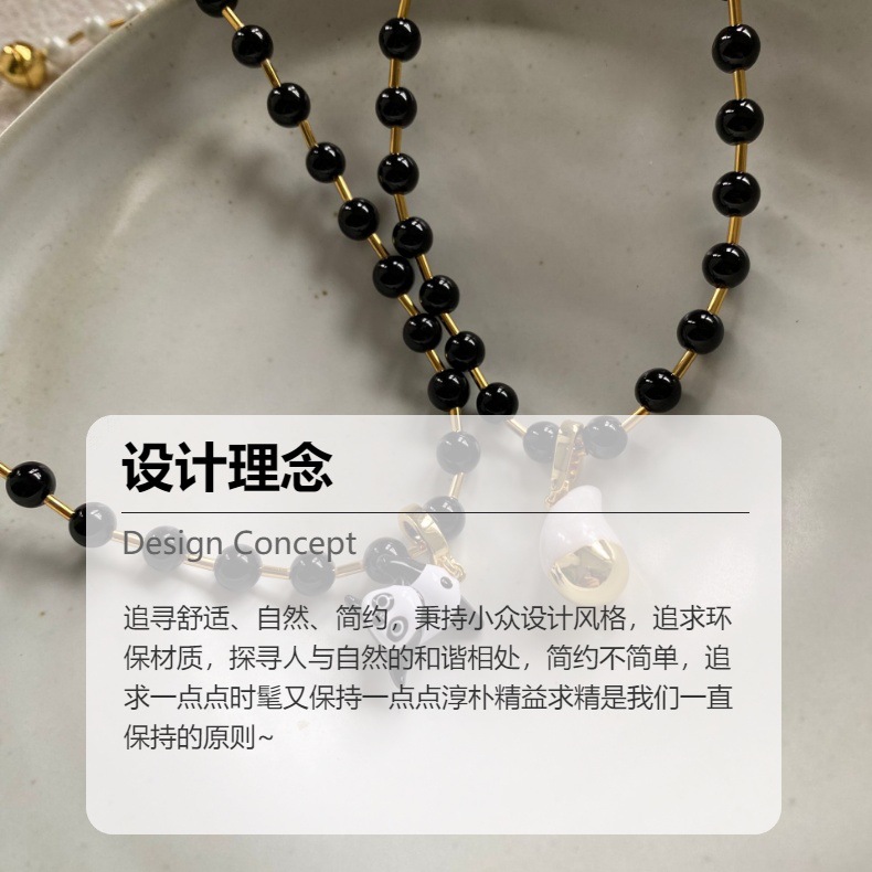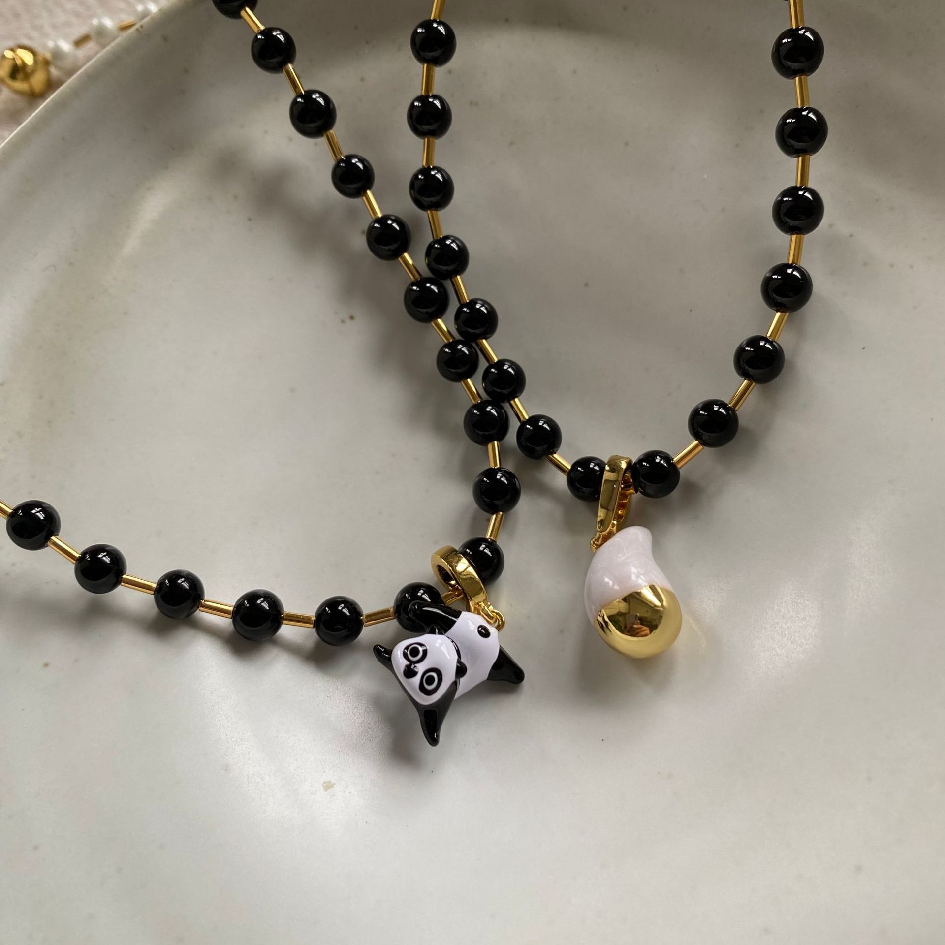 韩尼韩气小众吊坠小熊猫串珠项链女可爱精致时尚优雅百搭颈链毛衣