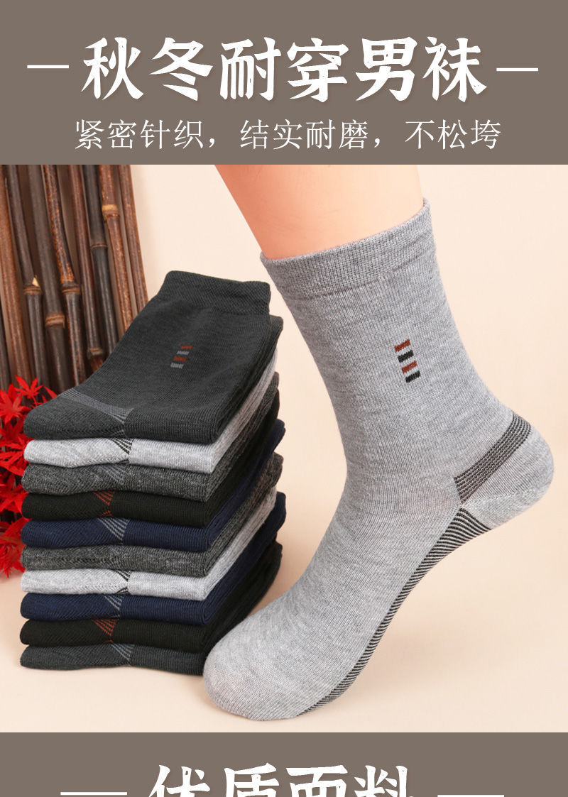 劳保袜子男耐磨男袜秋冬男士工地干活工作袜结实耐穿秋季中筒黑色