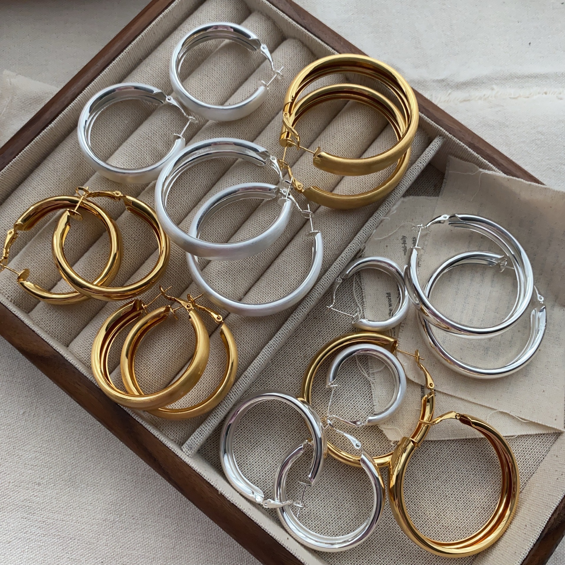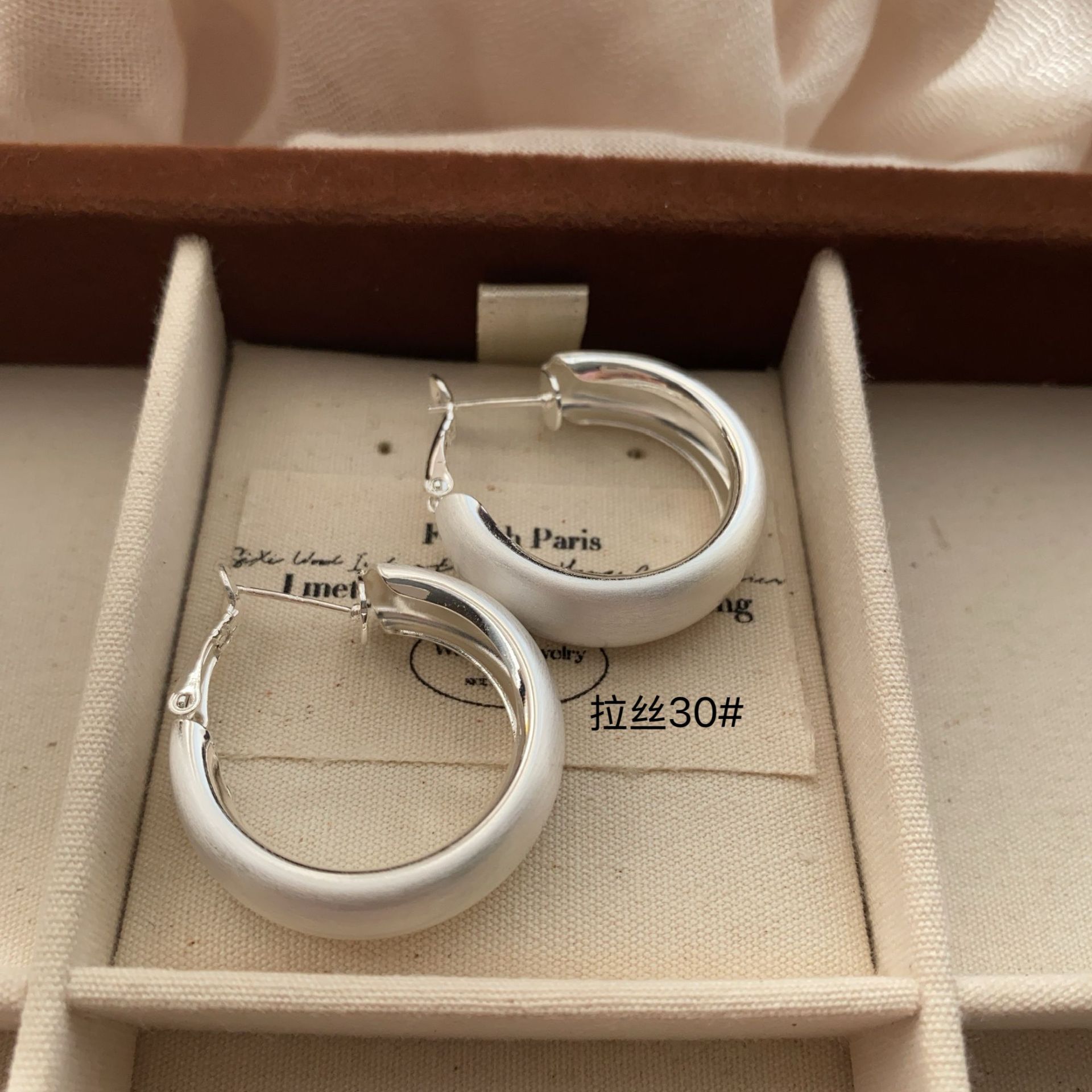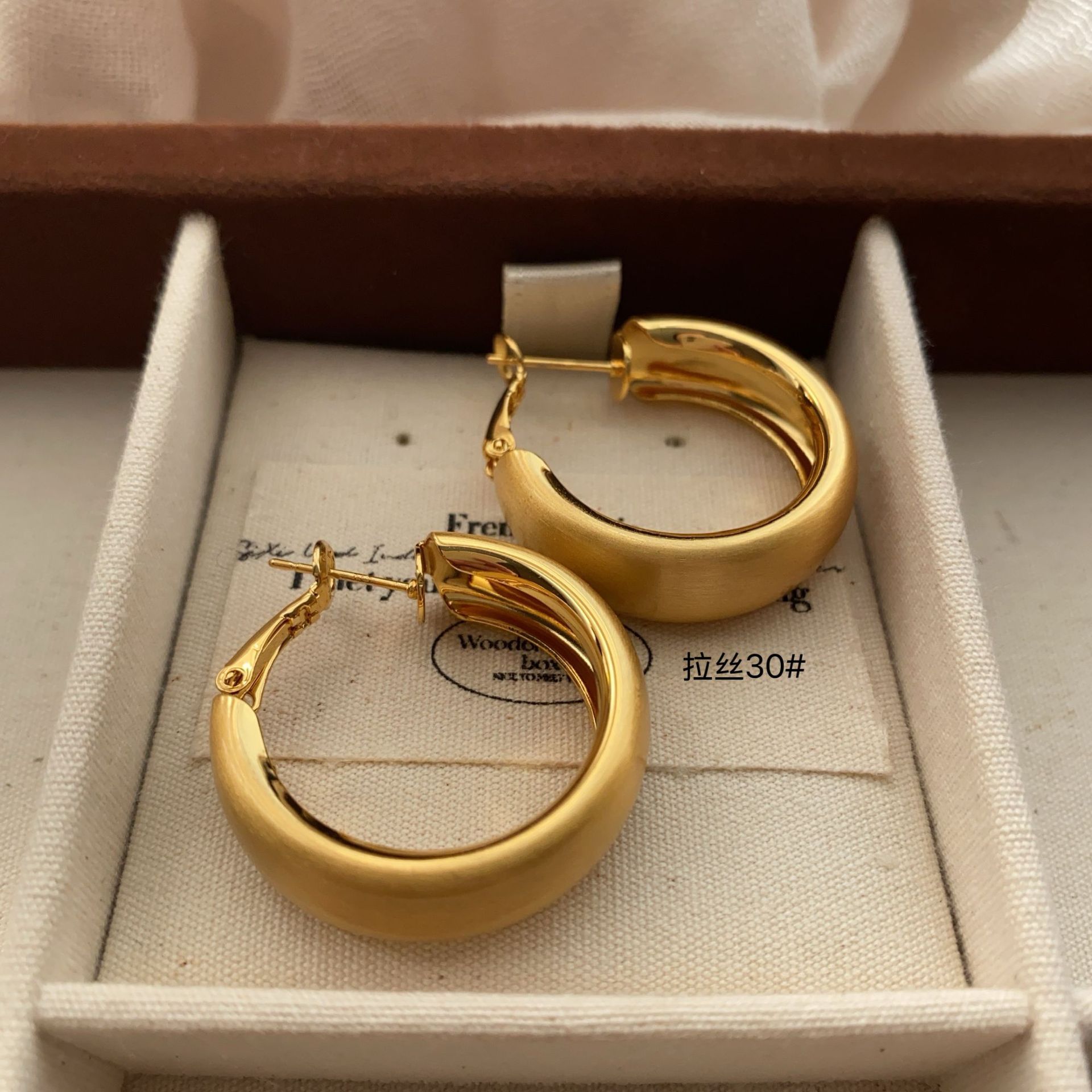 经典环形耳圈耳环法式复古个性拉丝亮面高级冷淡几何极简轻奢耳圈