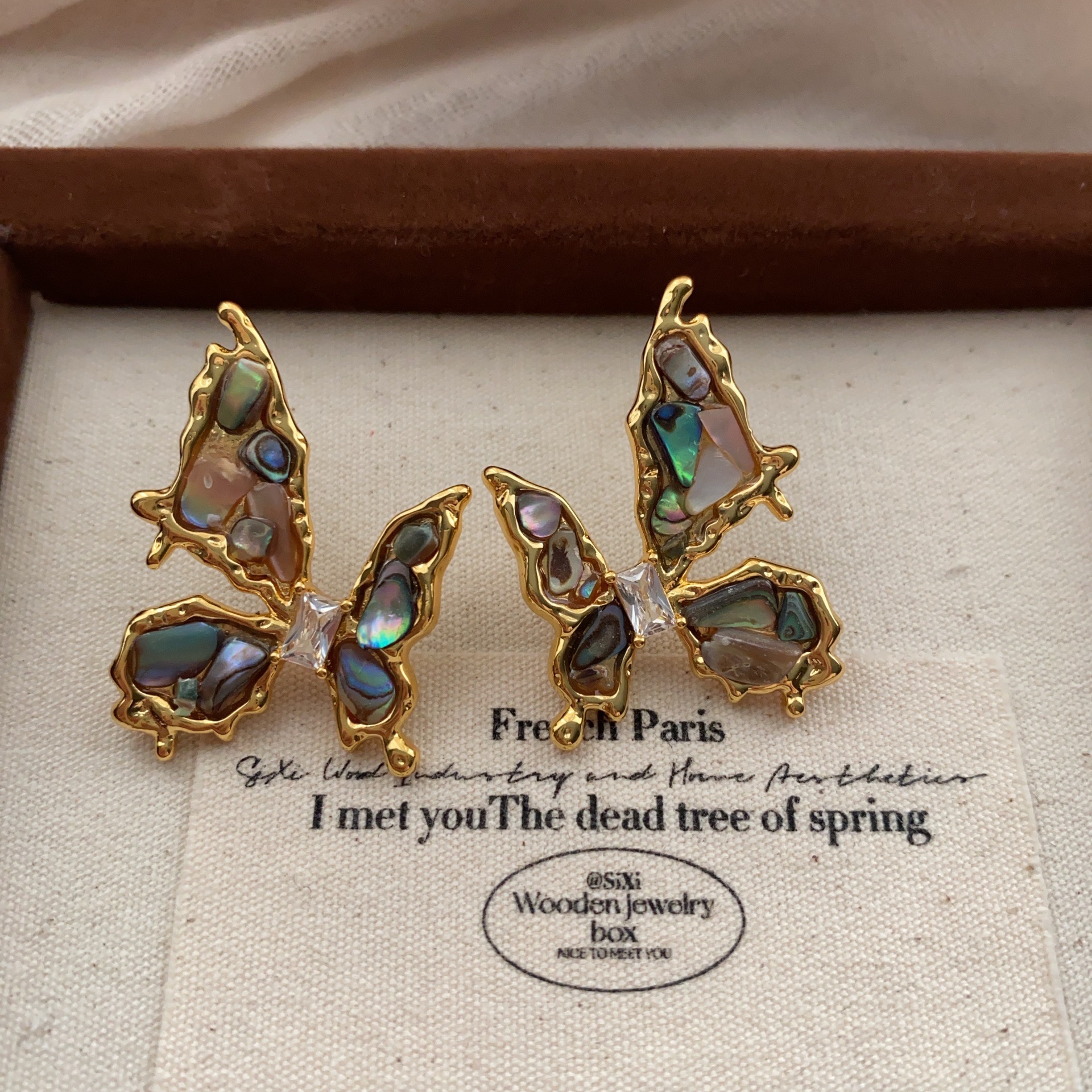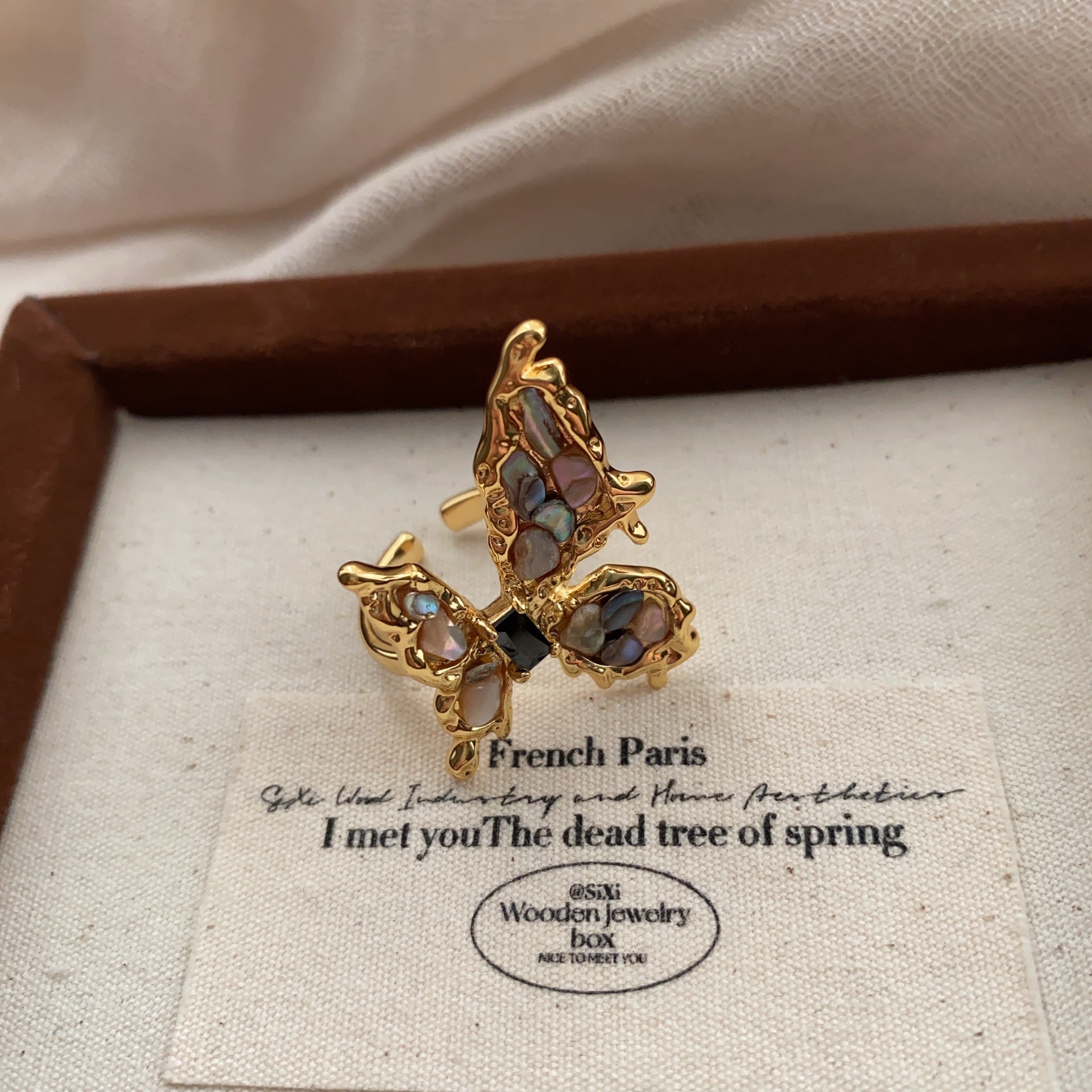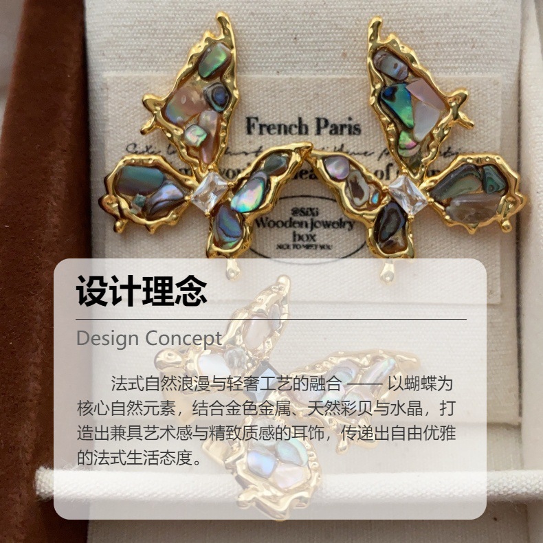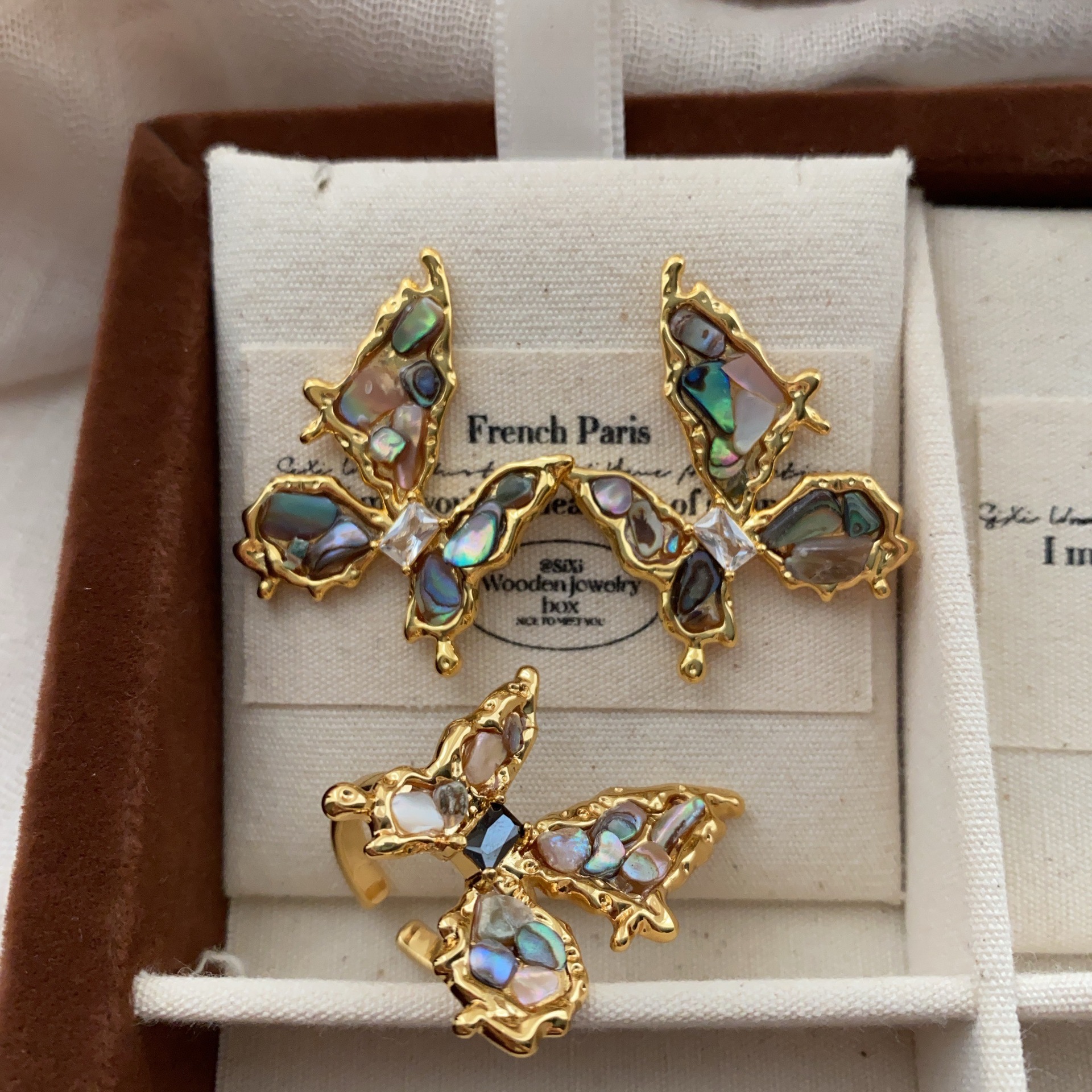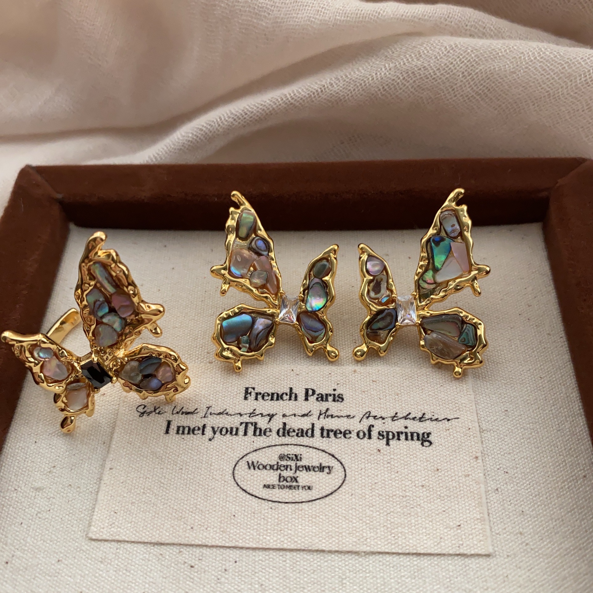 蝴蝶天然贝壳耳钉耳环时尚浪漫戒指镶嵌指环优雅气质精致小众个性