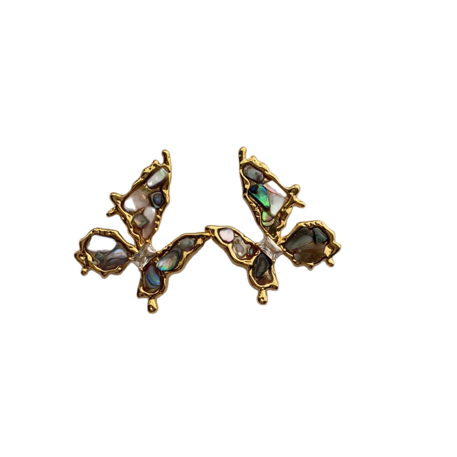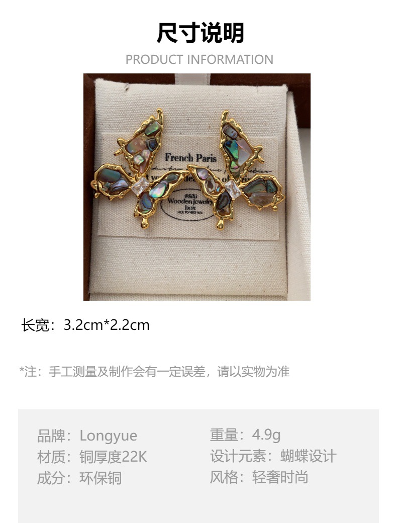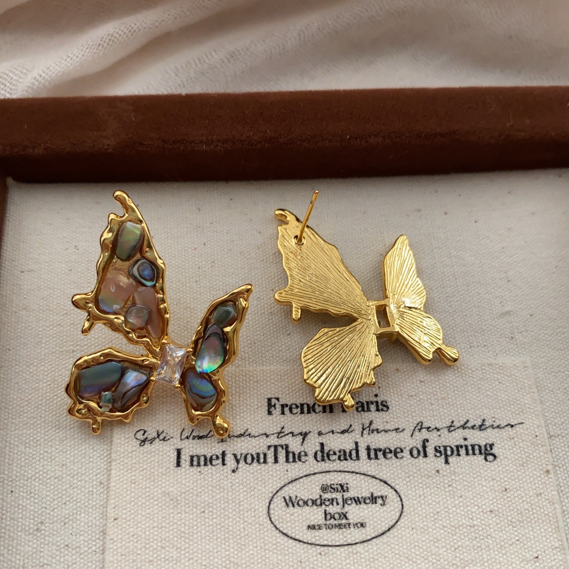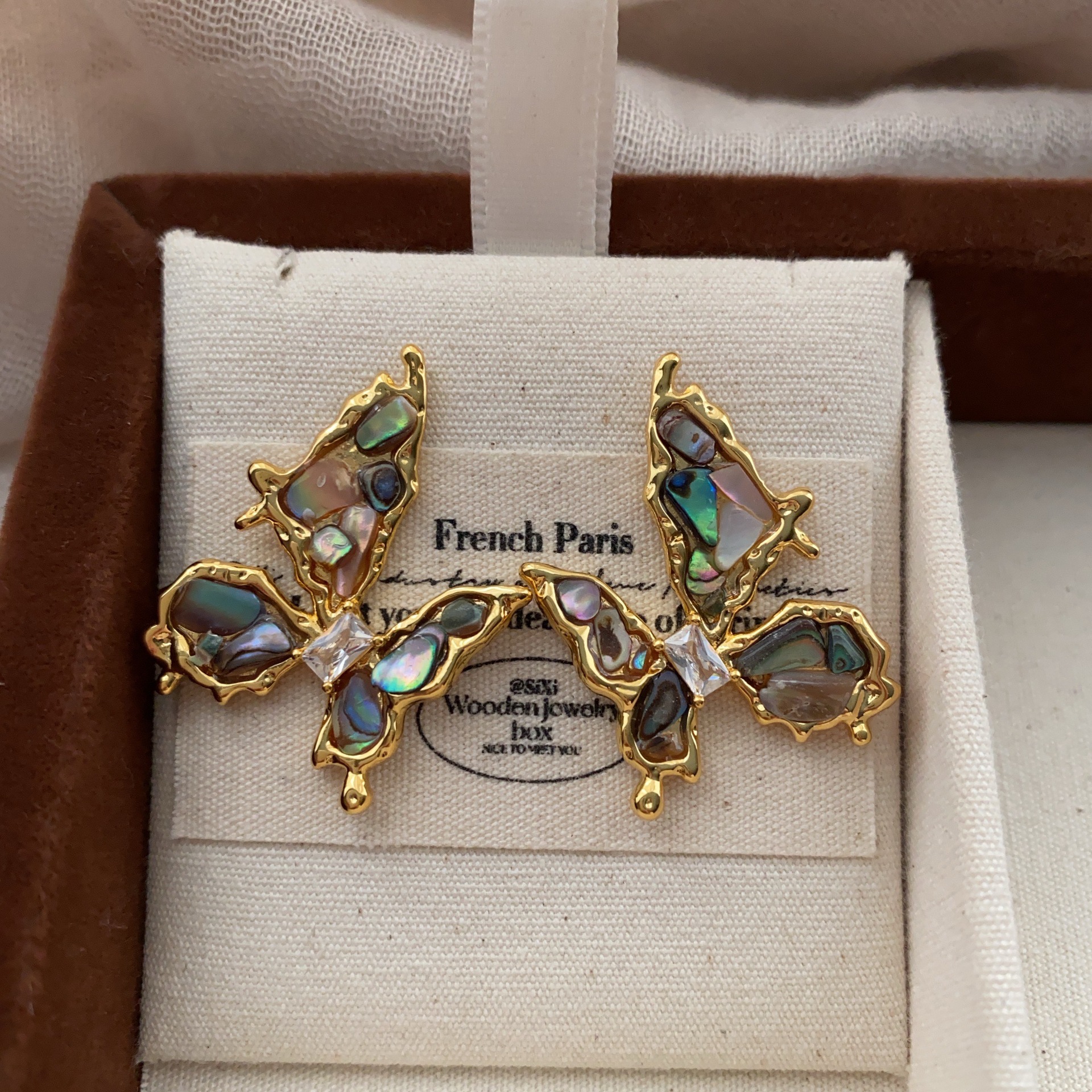 蝴蝶天然贝壳耳钉耳环时尚浪漫戒指镶嵌指环优雅气质精致小众个性