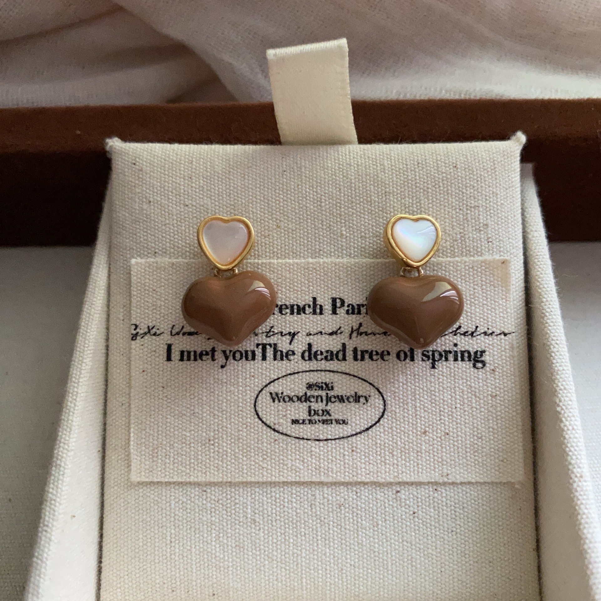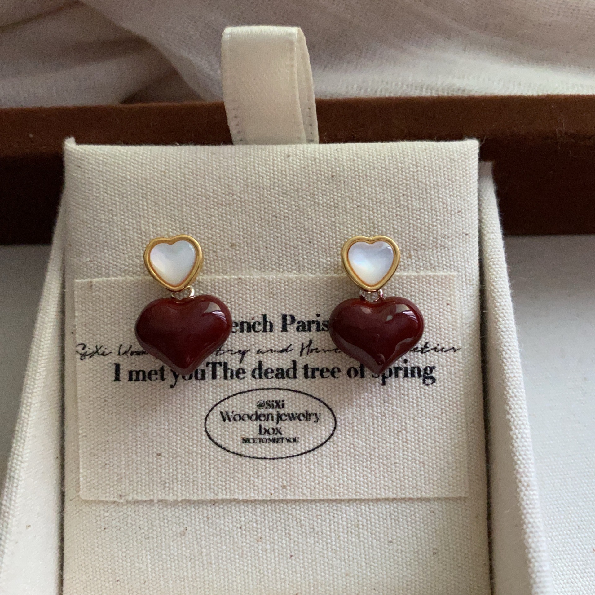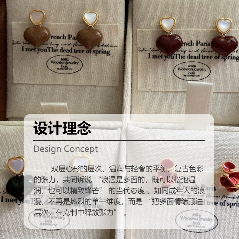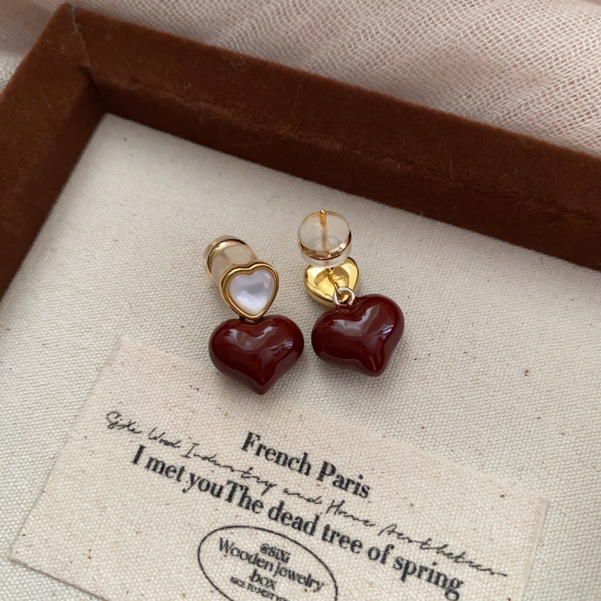 滴油双爱心耳钉耳环高级感时尚百搭心形耳钉甜美精致气质耳饰秋冬