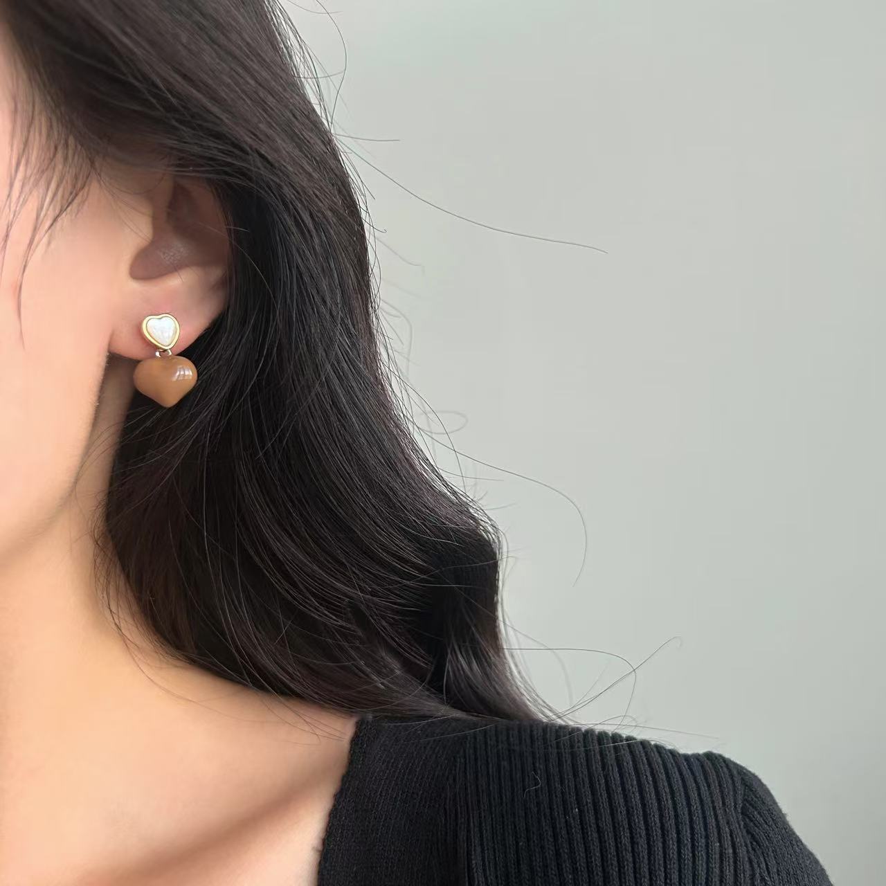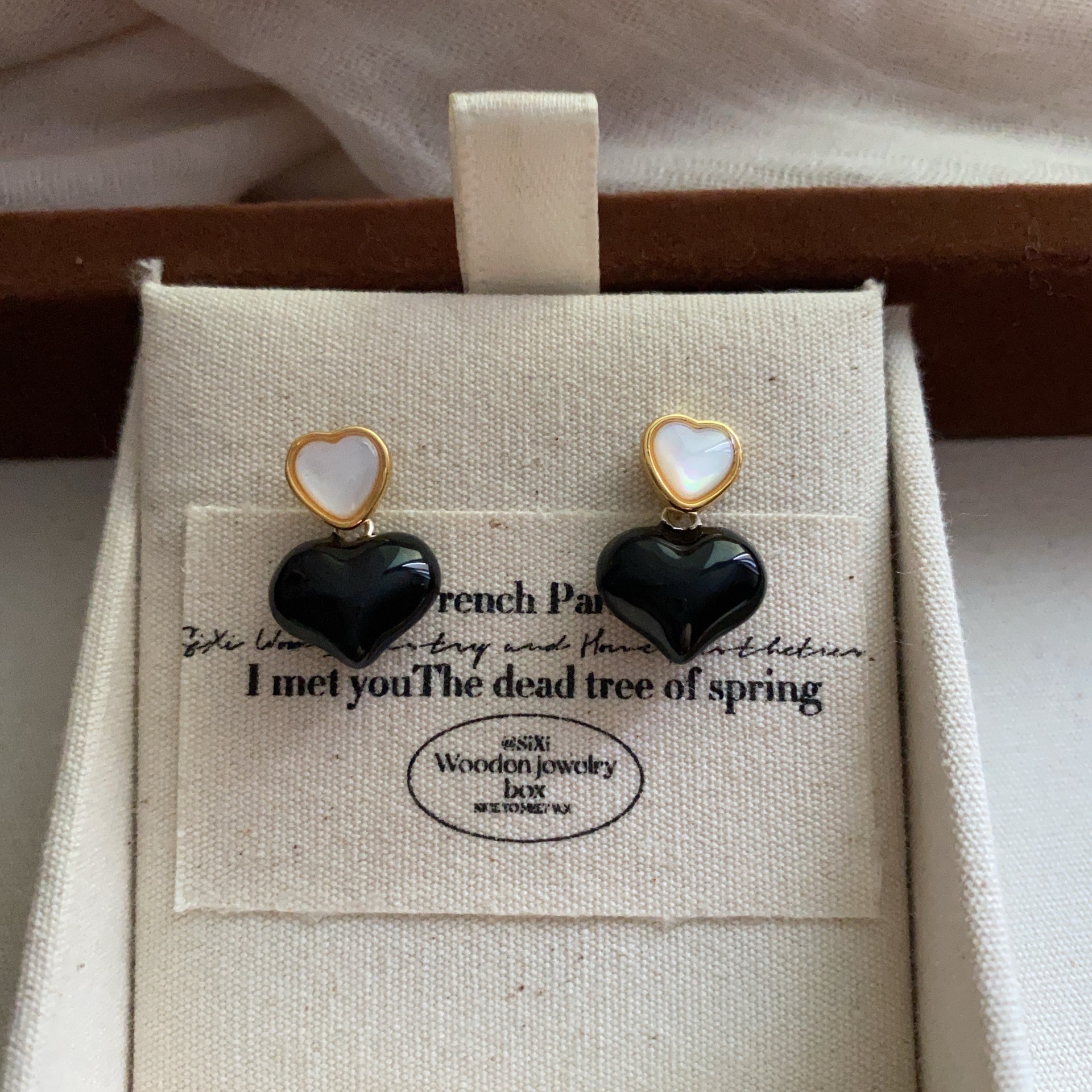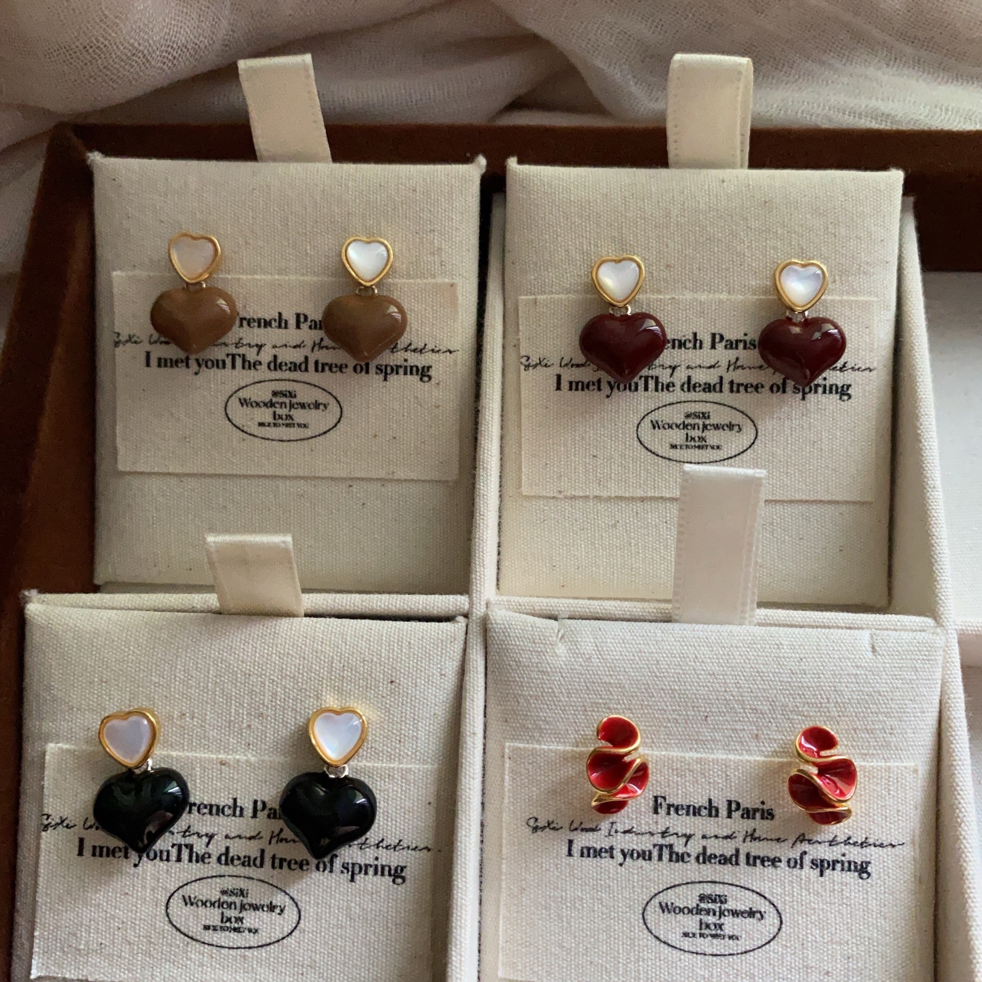 滴油双爱心耳钉耳环高级感时尚百搭心形耳钉甜美精致气质耳饰秋冬