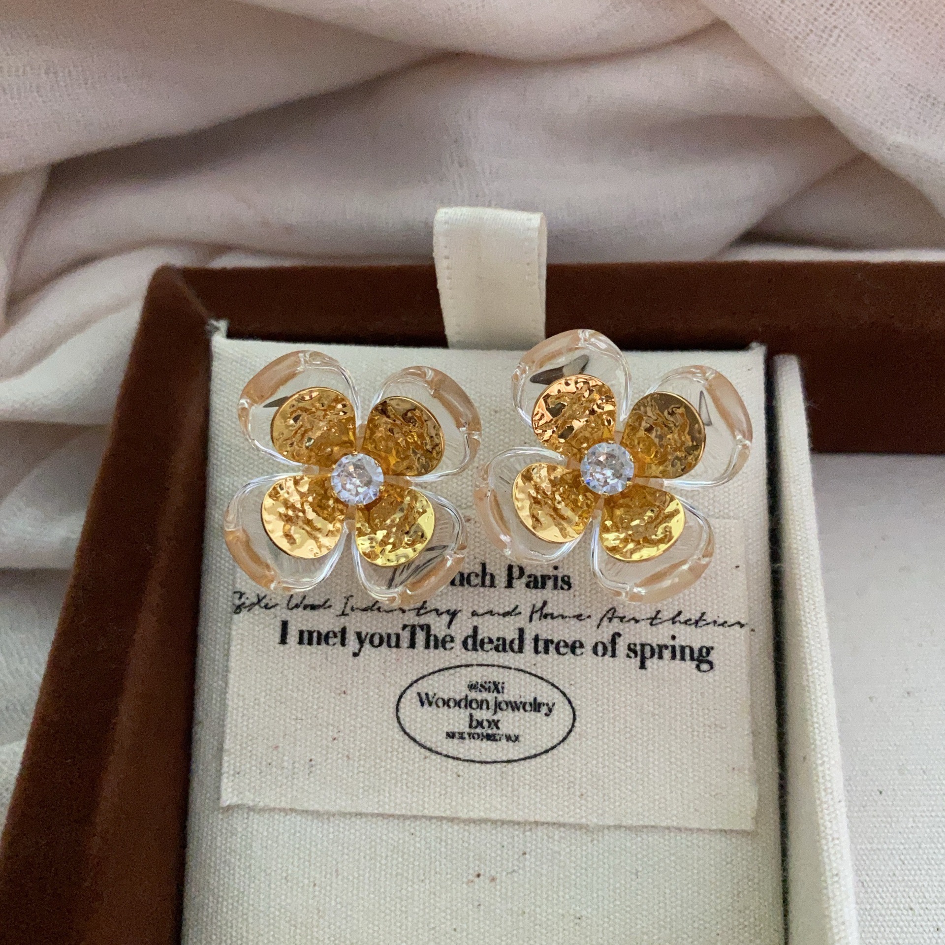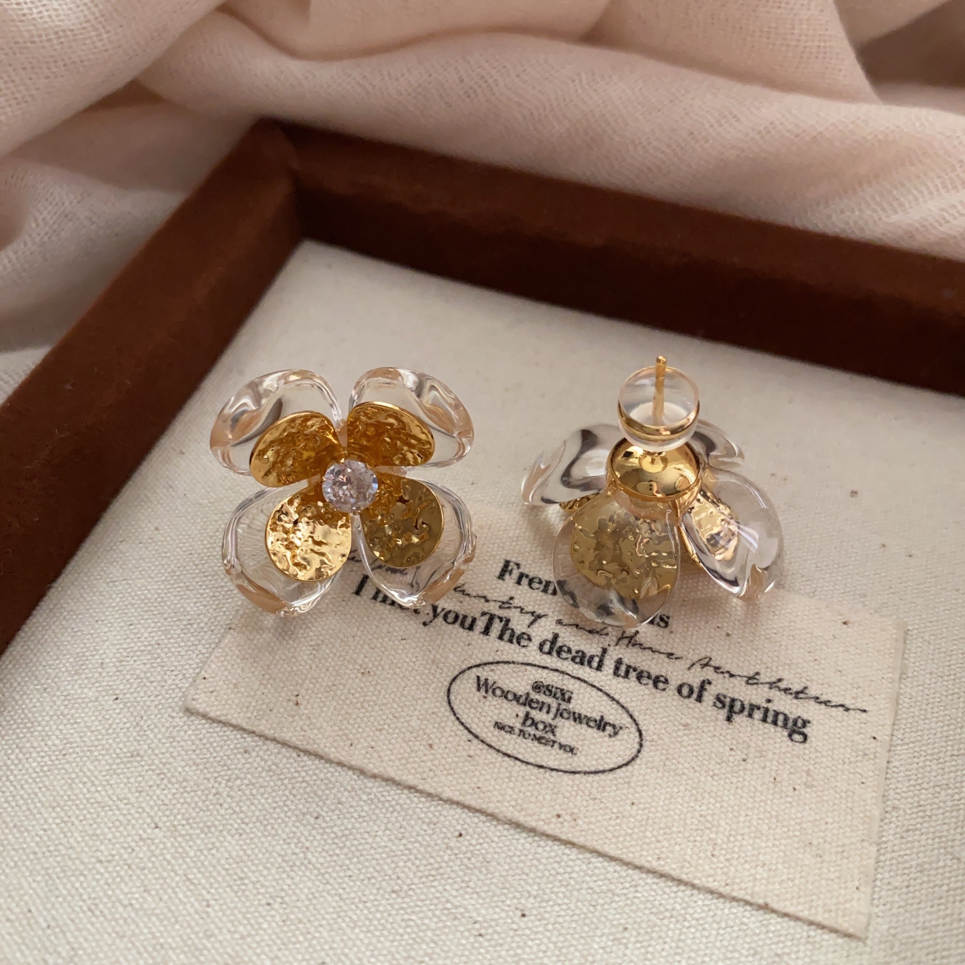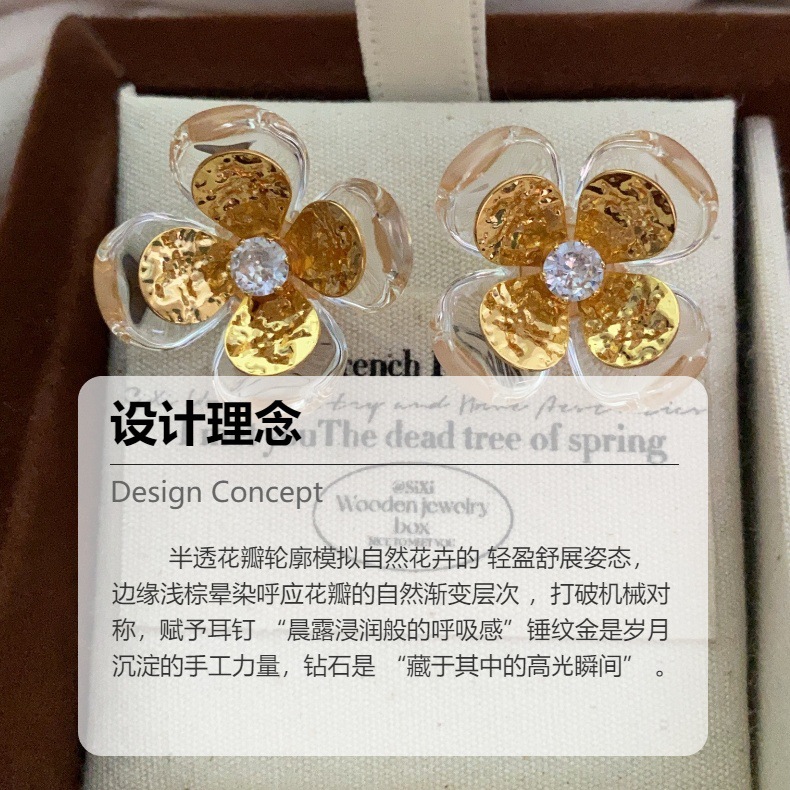 透明树脂花朵耳钉耳环小众设计个性百搭超仙时尚甜酷轻奢独特耳饰