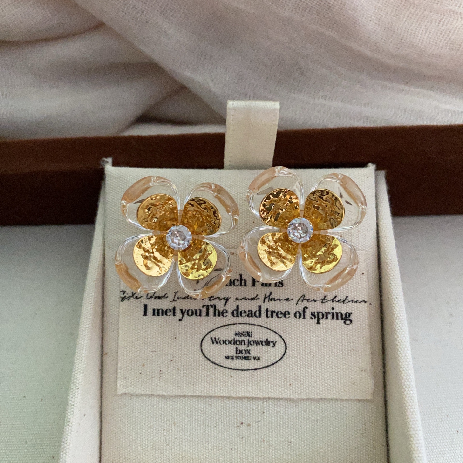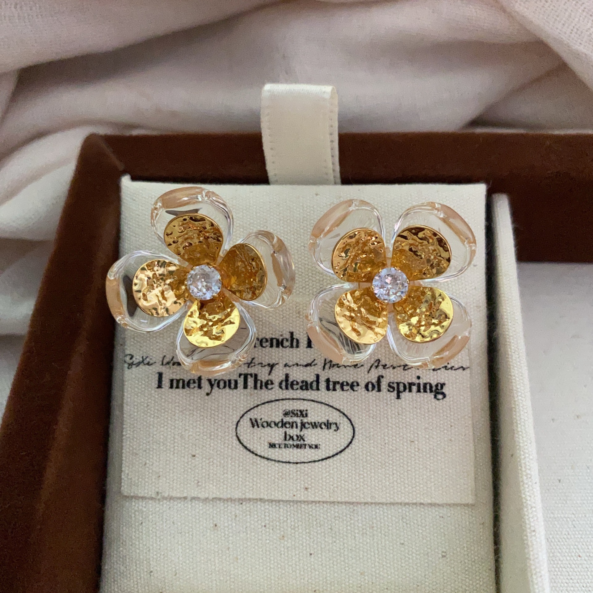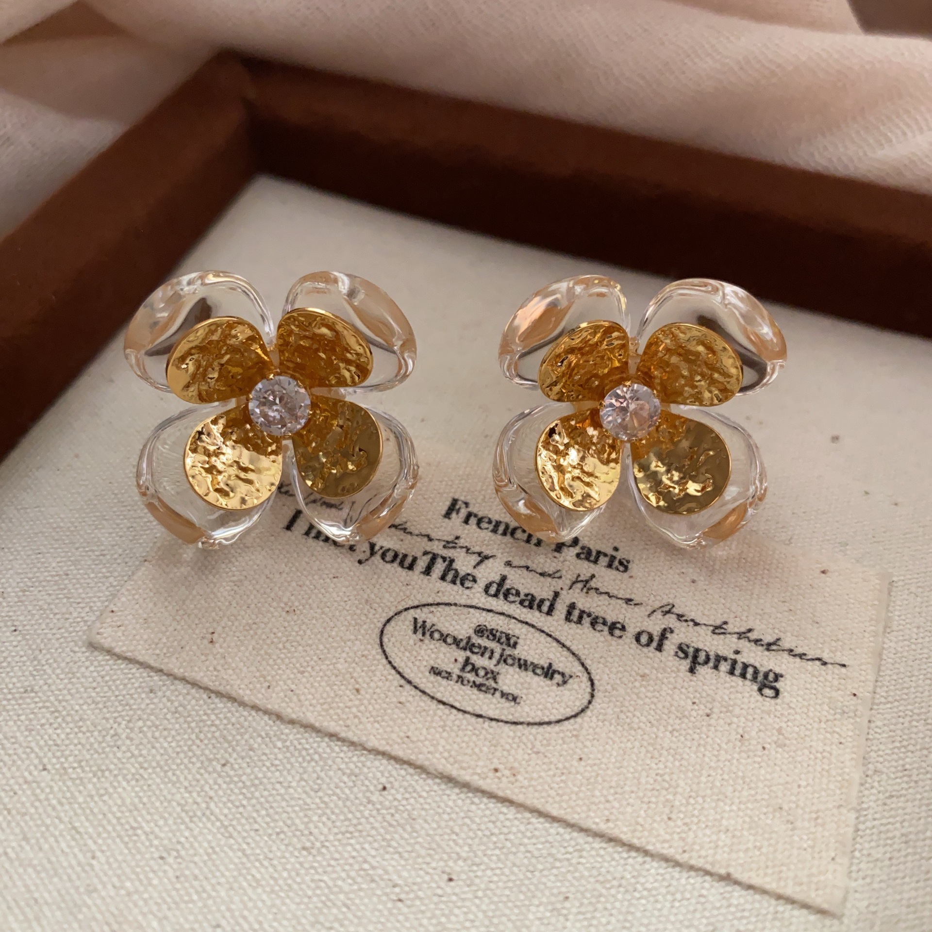 透明树脂花朵耳钉耳环小众设计个性百搭超仙时尚甜酷轻奢独特耳饰