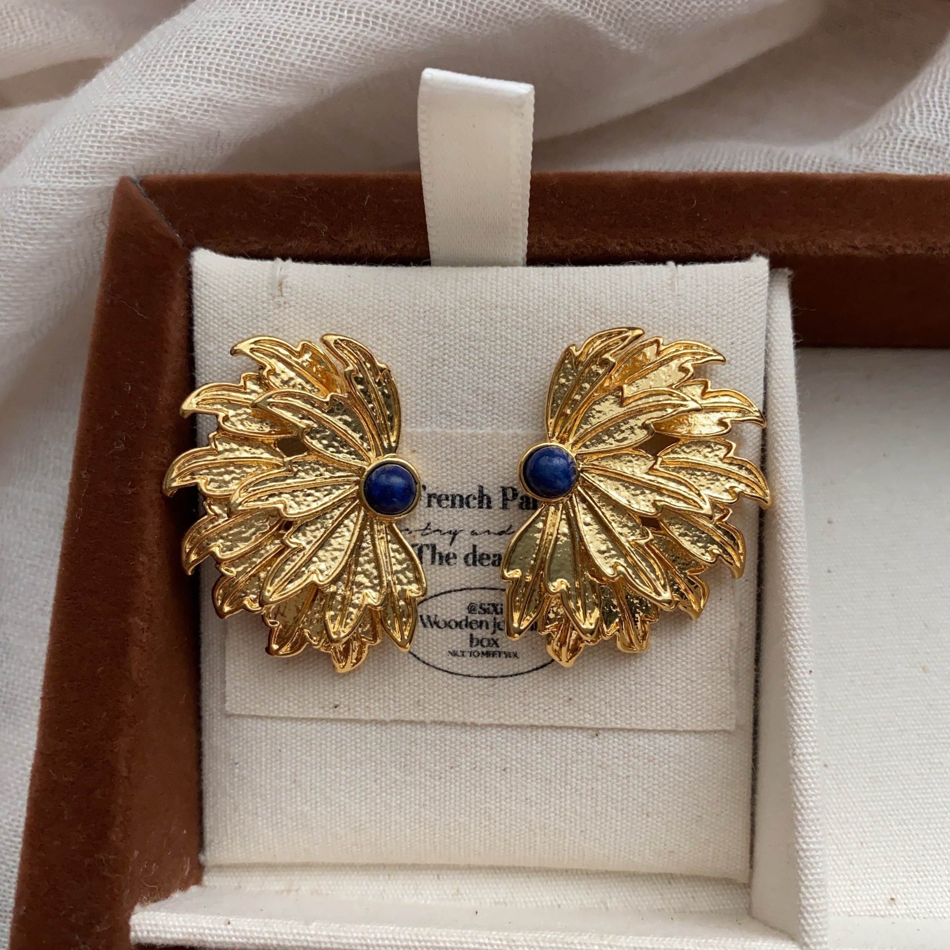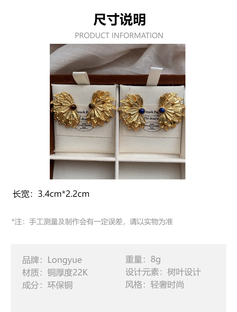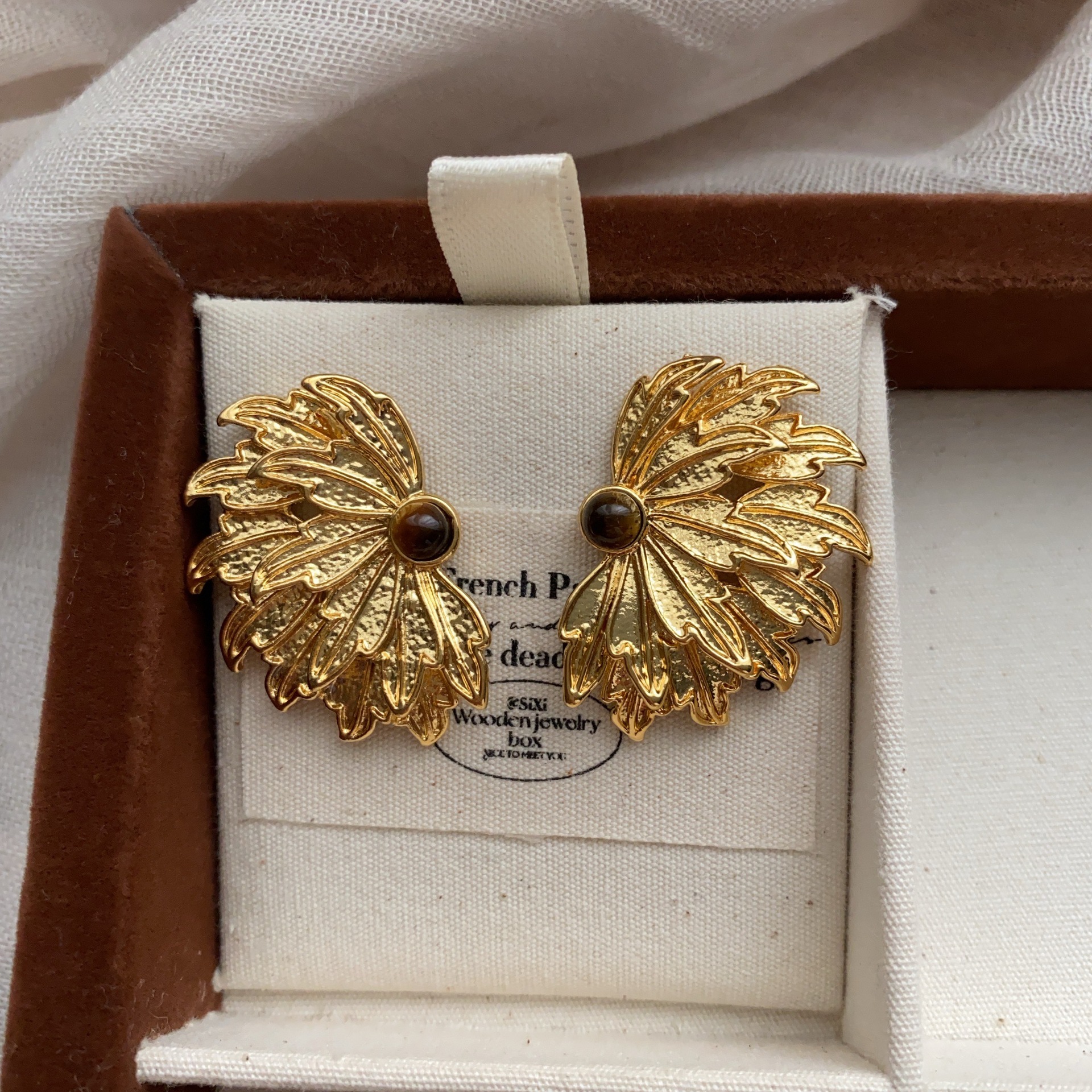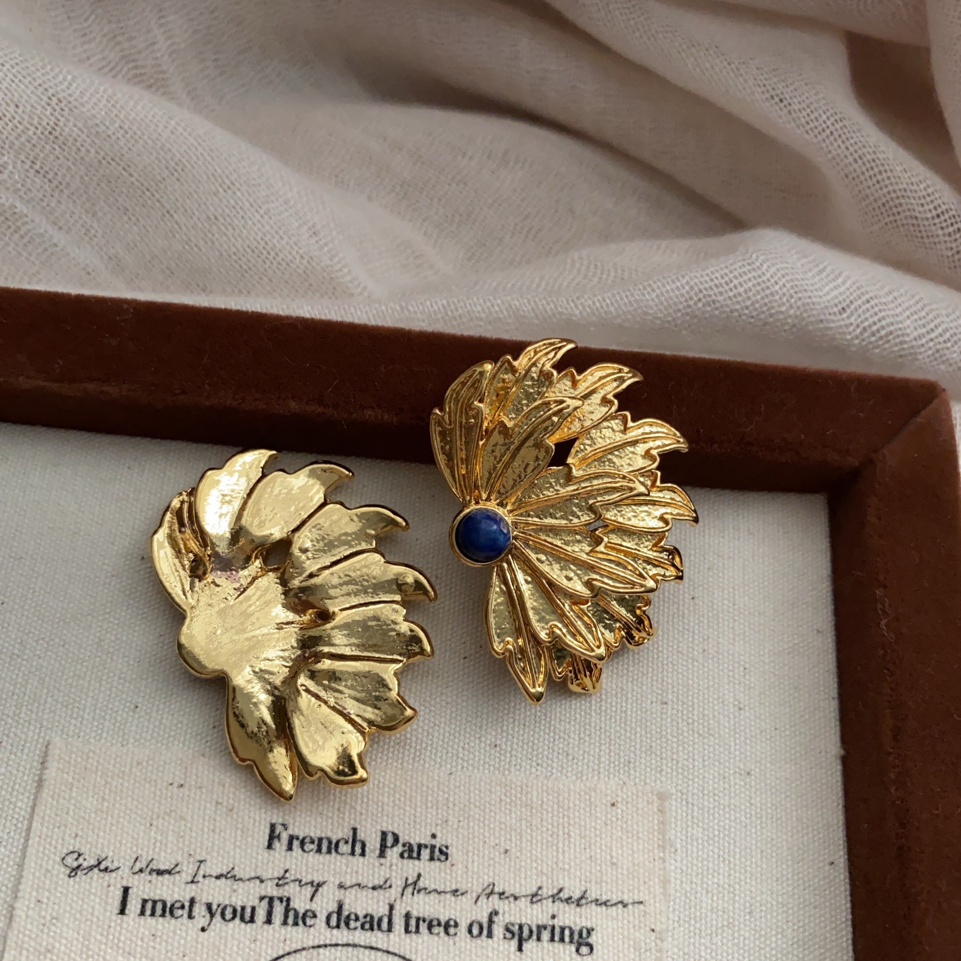 新款复古立体花瓣耳钉耳环轻奢气质设计花卉夸张个性时尚古典金色